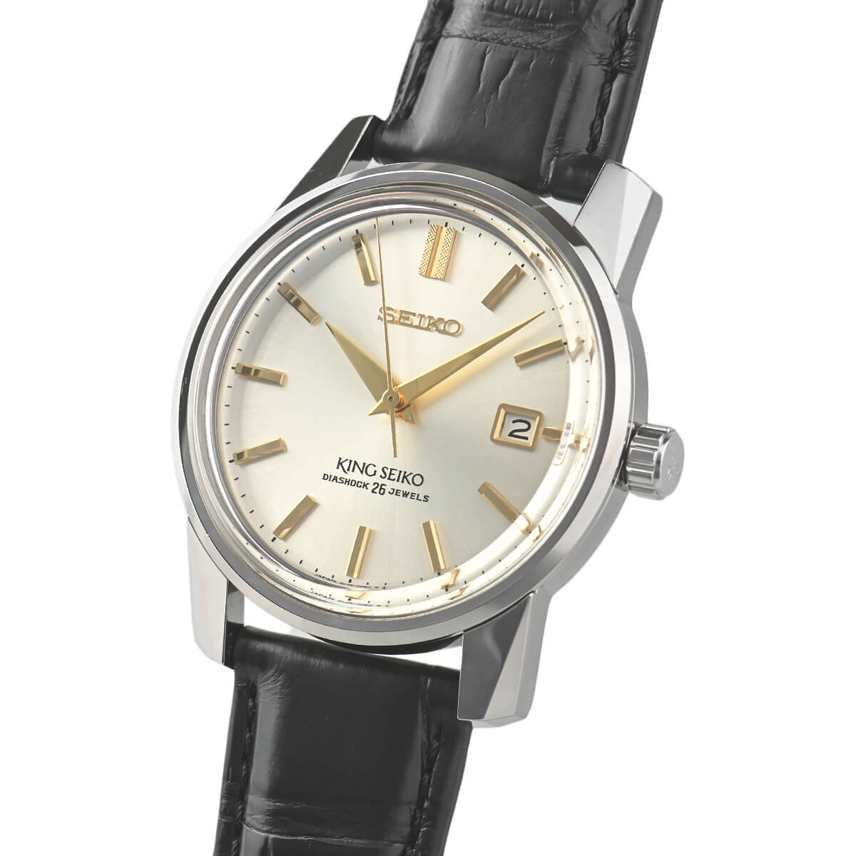 2022年に1700本限定で販売された「SDKA003」。“KSK”と呼ばれる2代目キングセイコーを忠実に再現したデザインでありながら、ケースサイズのアップや新形状のボックス型サファイアガラスの採用等、視認性や耐傷性の向上を実現しています。