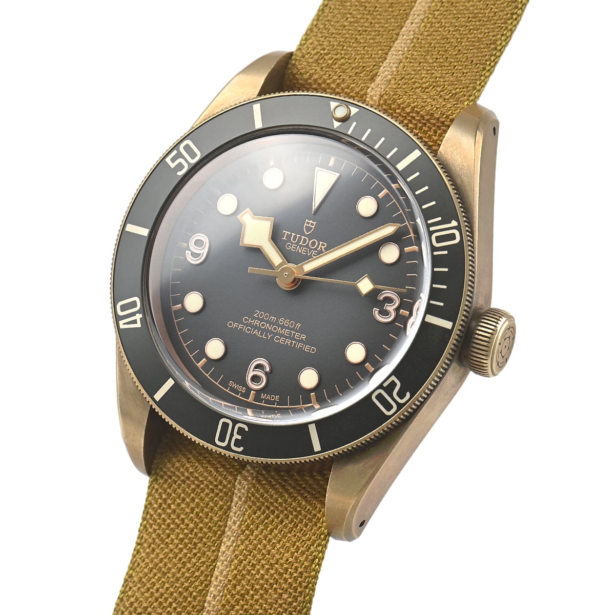 ダイヤルには現行タイプの「盾」マークがプリントされていますが、リューズトップにはヴィンテージ感の漂う「チューダーローズ」を刻印。
