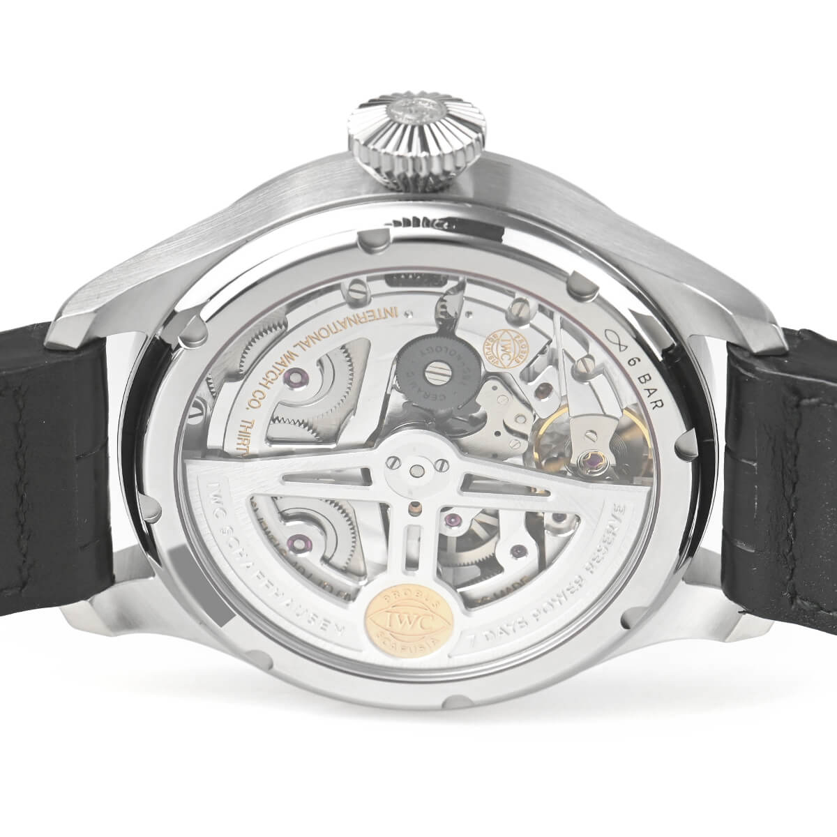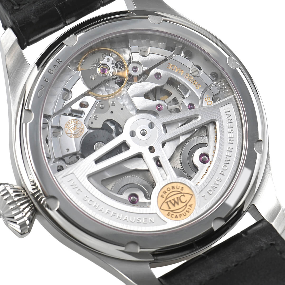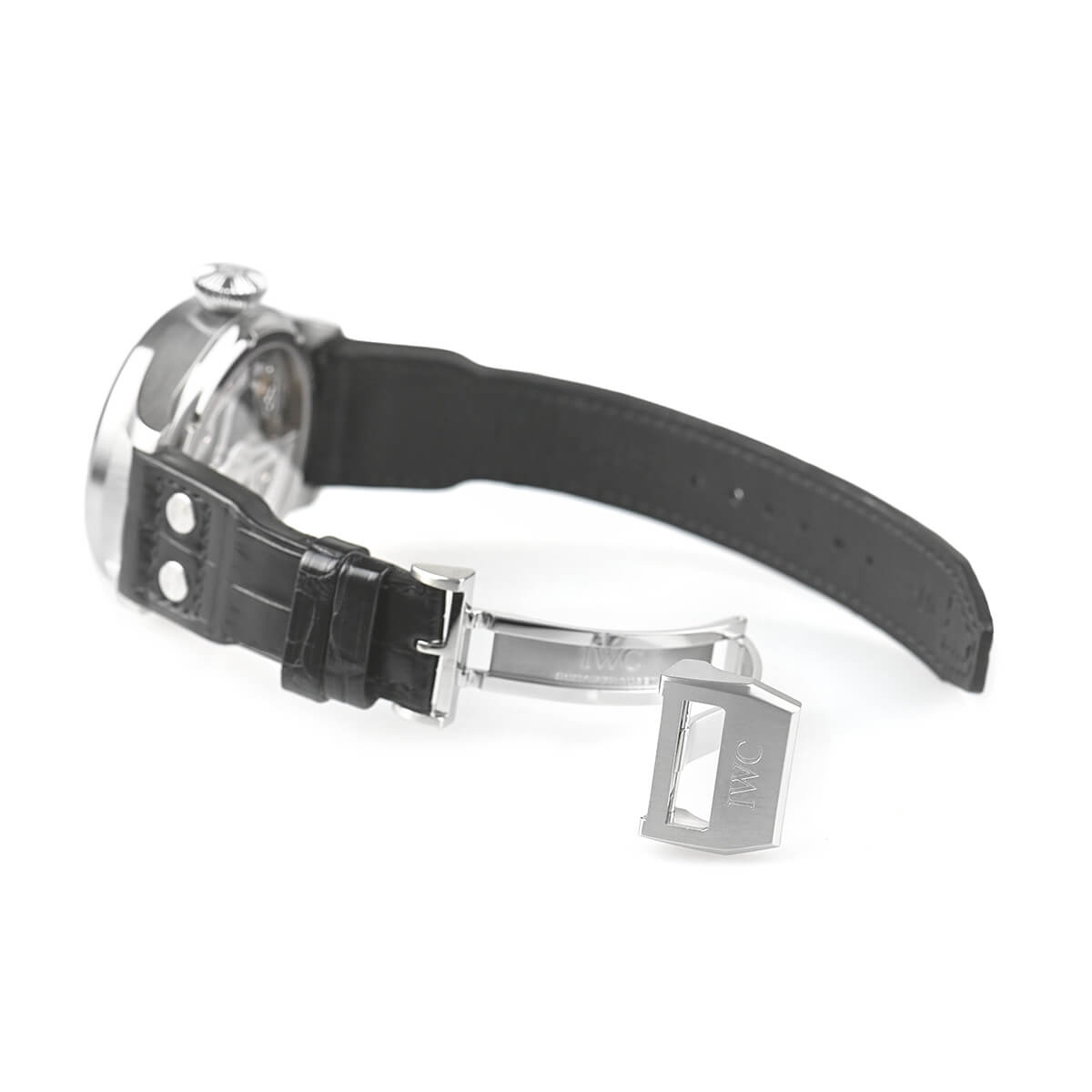 第二次世界大戦時のドイツ空軍が採用したパイロットウォッチをモチーフに作られた「ビッグパイロットウォッチ」。こちらは大の月と小の月は自動で日付表示をおこない、一年間で唯一、2月の末にカレンダー調整が必要なアニュアルカレンダー機能を搭載した【ビッグパイロットウォッチ アニュアルカレンダー スピットファイア】です。