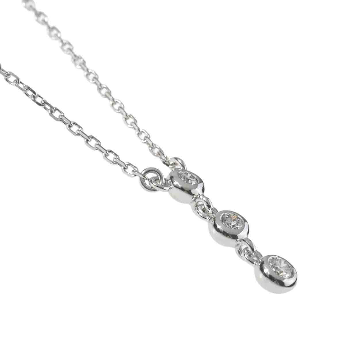 1893年に世界で初めて真珠の養殖に成功し、真珠に生涯を捧げ、「Pearl King(真珠王)」とまで呼ばれ歴史にその名を刻んだ「御木本幸吉」氏が、“世界中の女性を真珠で飾りたい”と夢を抱いて創業した『MIKIMOTO(ミキモト)』。パールだけでなく様々なジュエリーにも力を入れ、世界中から大きな評価を得て、今や日本を代表する世界のジュエラーとなりました。冬の朝日に照らされたつららから滴る水滴のように、美しくも静寂に輝くダイヤモンドが3石連なるホワイトゴールド製ペンダントネックレス。動くたび揺れるダイヤモンドが様々なアングルで光を捉えてきらめきながら、どんなスタイリングにもマッチして確かな存在感をちます。シンプルであるからこそ引き立つ洗練された美しさをもつ、コストパフォーマンスの高さも魅力のダイヤモンドジュエリーです。