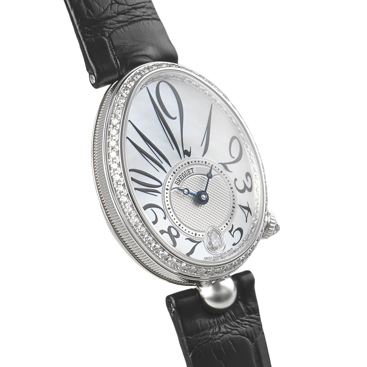 ホワイトゴールドケースに合わせて文字盤には、タヒチ産マザーオブパールを採用しています。