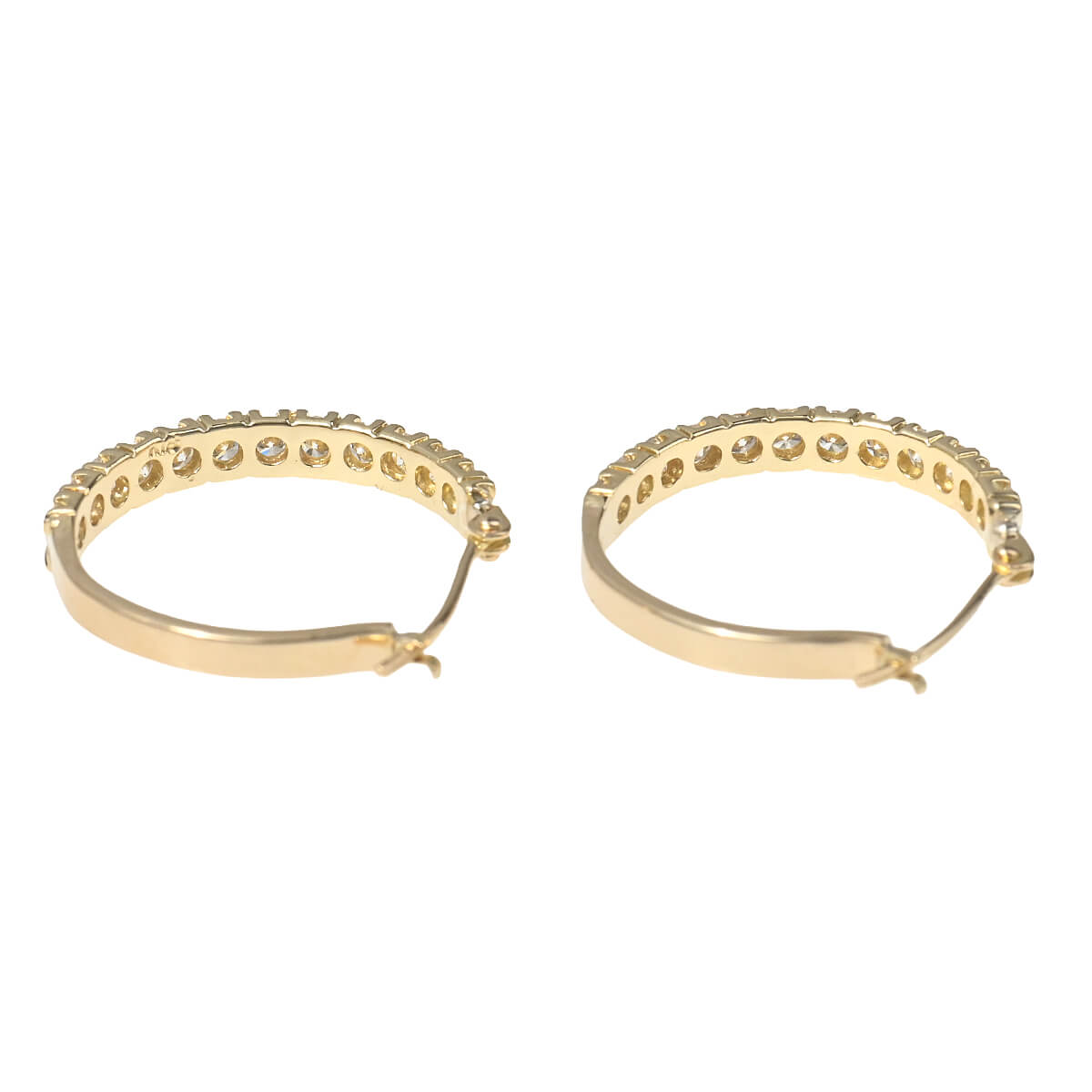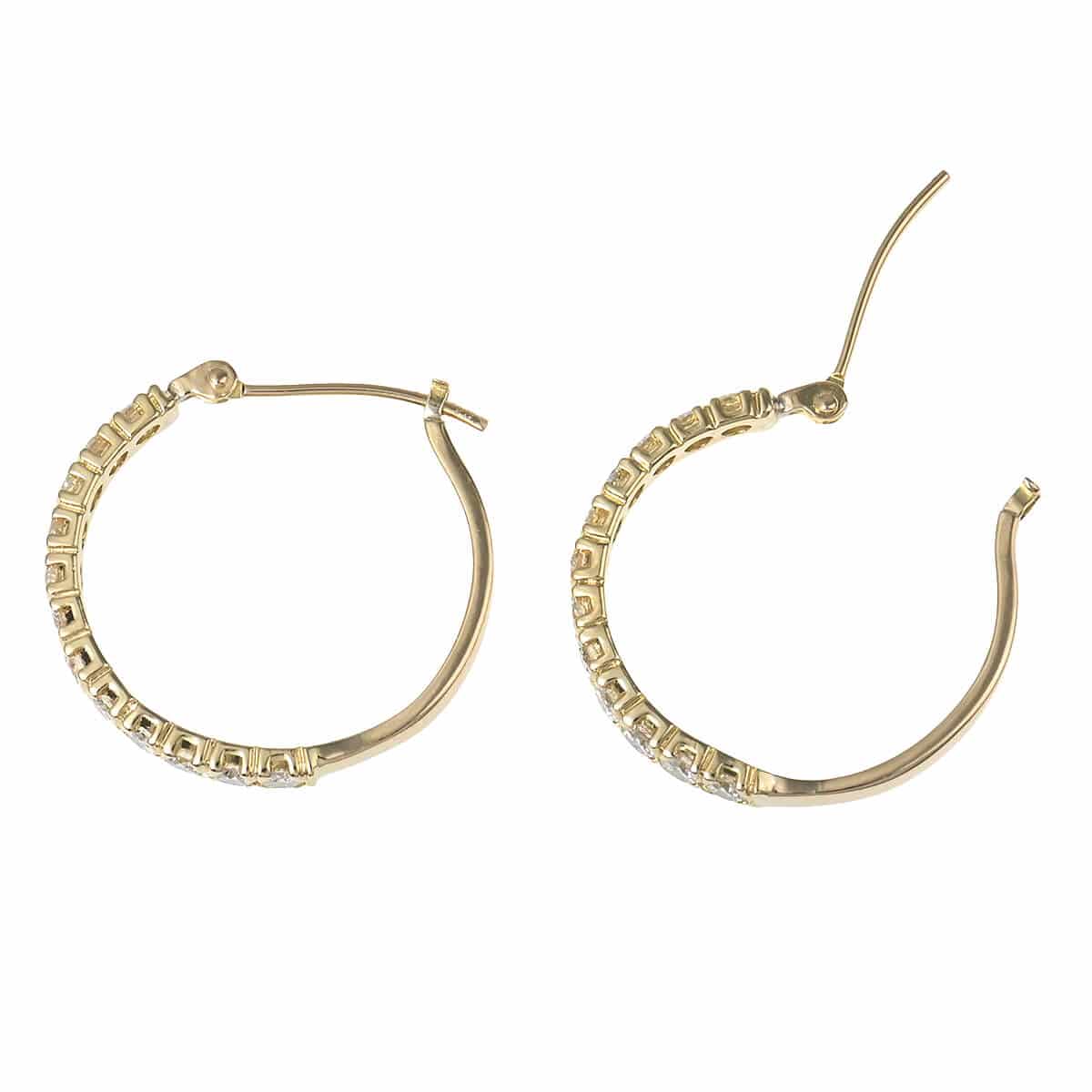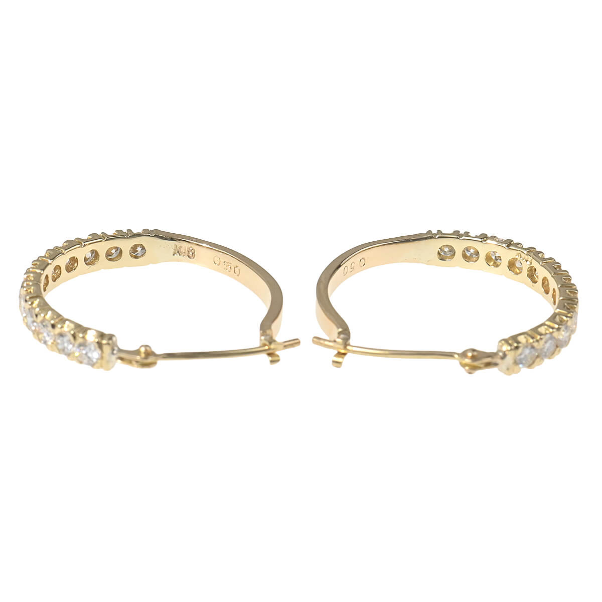 それぞれ0.5ct、トータル1ctものダイヤモンドのきらめきで描かれたフープが、フェイスラインを飾るイエローゴールド製ピアスです。シンプルであるからこそ引き立つ、洗練された美しさをもつピアス。耳元で光を放つダイヤモンドラインが日常にさりげなくも本物の煌めきを添えてくれる、エレガントで優美なダイヤモンドジュエリーです。