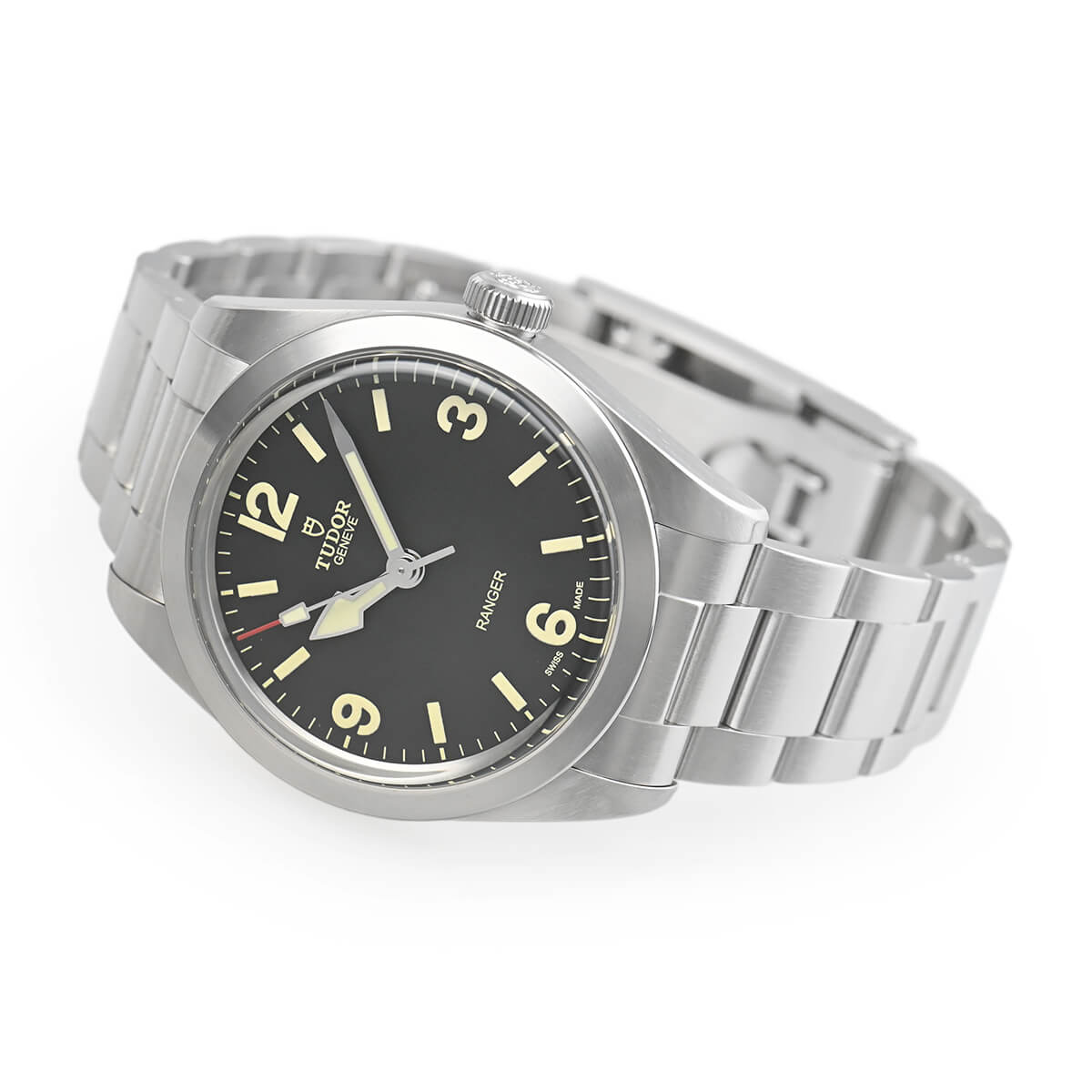 現代的な39mm径ケースを採用し、ダイアルはグレイン仕上げのマットブラックで仕上げました。