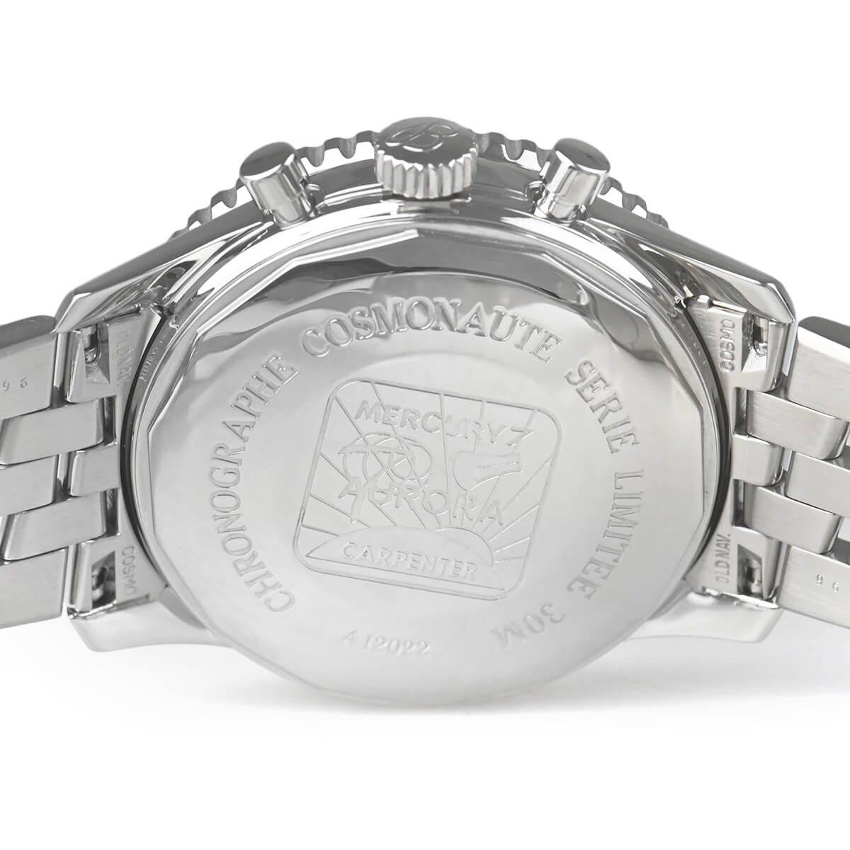 文字盤にスコット・カーペンターのロゴが入る1000本限定モデル「コスモノート スコット・カーペンター」が入荷しました。アメリカ初の有人宇宙飛行計画「マーキュリー計画」に参加したM・スコット・カーペンターのために開発された「コスモノート」。