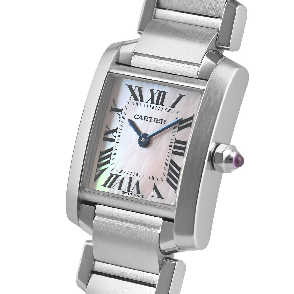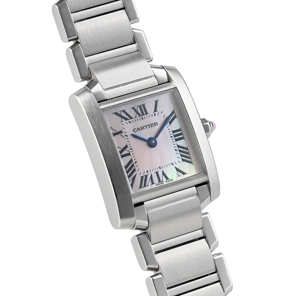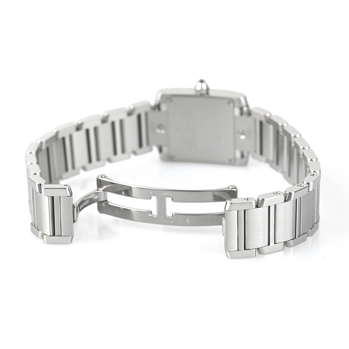 戦車のキャタピラからインスピレーションを得てデザインされた「タンクフランセーズ」。その由来とは裏腹に、ブレスレットウォッチとして女性らしい雰囲気が漂います。