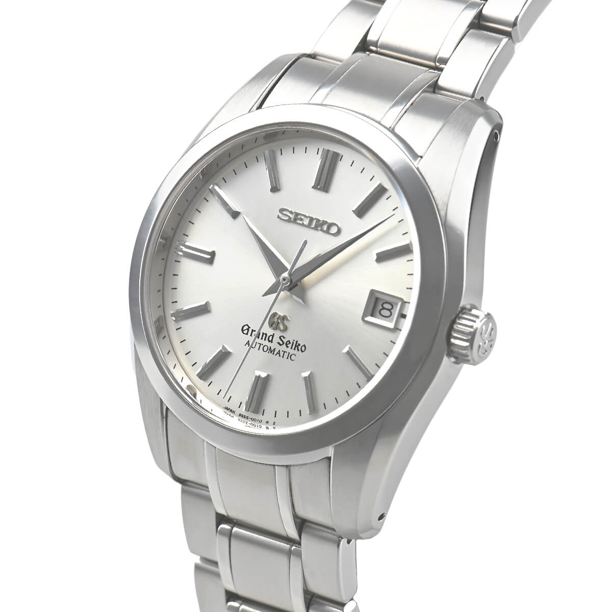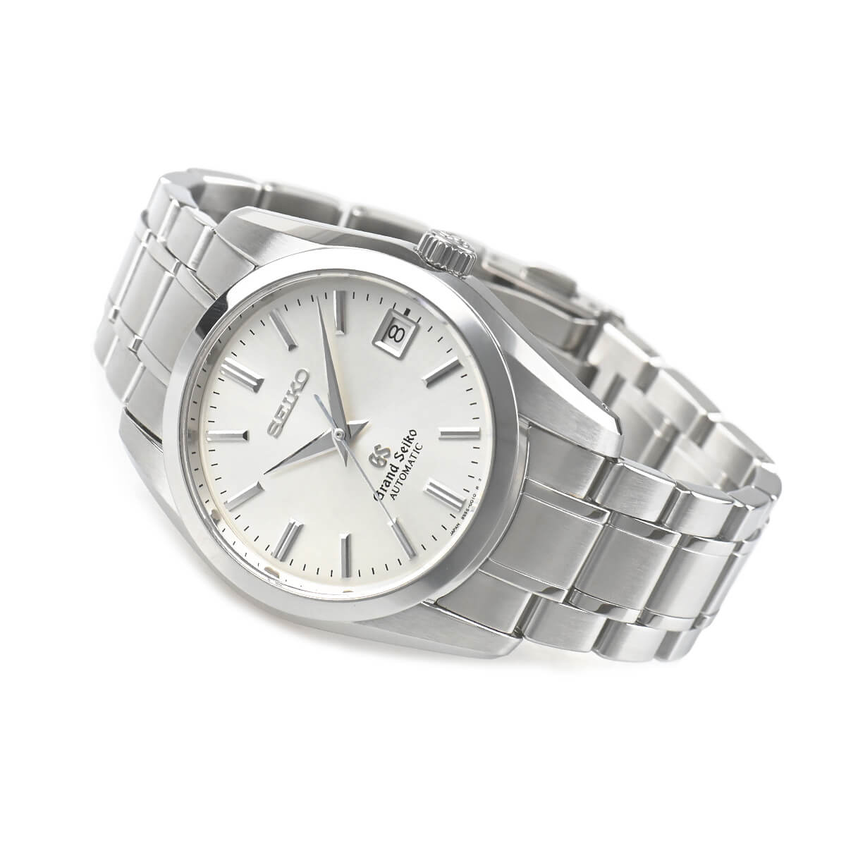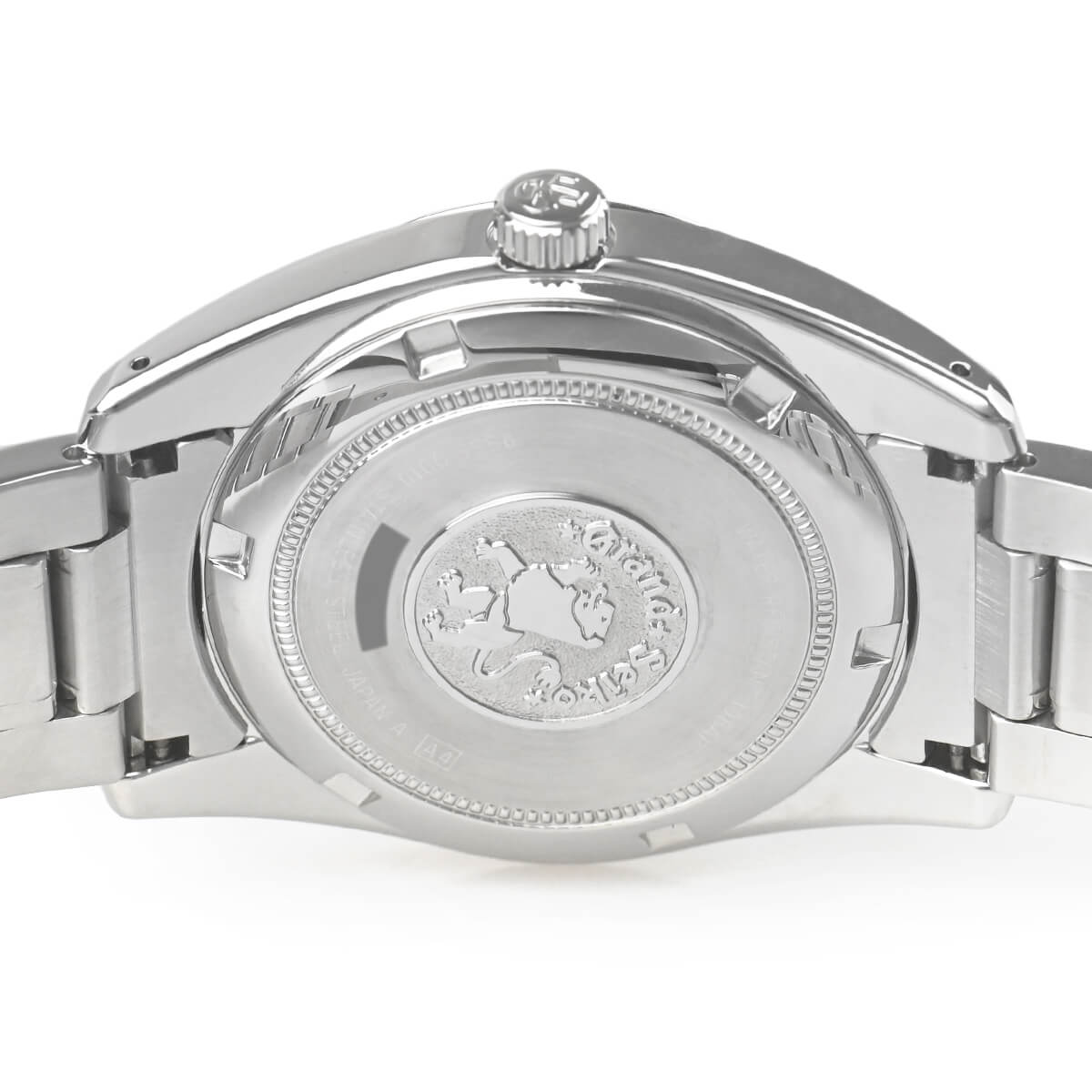質実剛健な佇まいがセイコーらしい「SBGR001」。部品製造から組み立てまでを一貫して盛岡の工場で行い、セイコー独自の“GS規格”検査をクリアしたムーブメントのみがGSの称号を与えられるという、国産機械式最高峰の時計です。