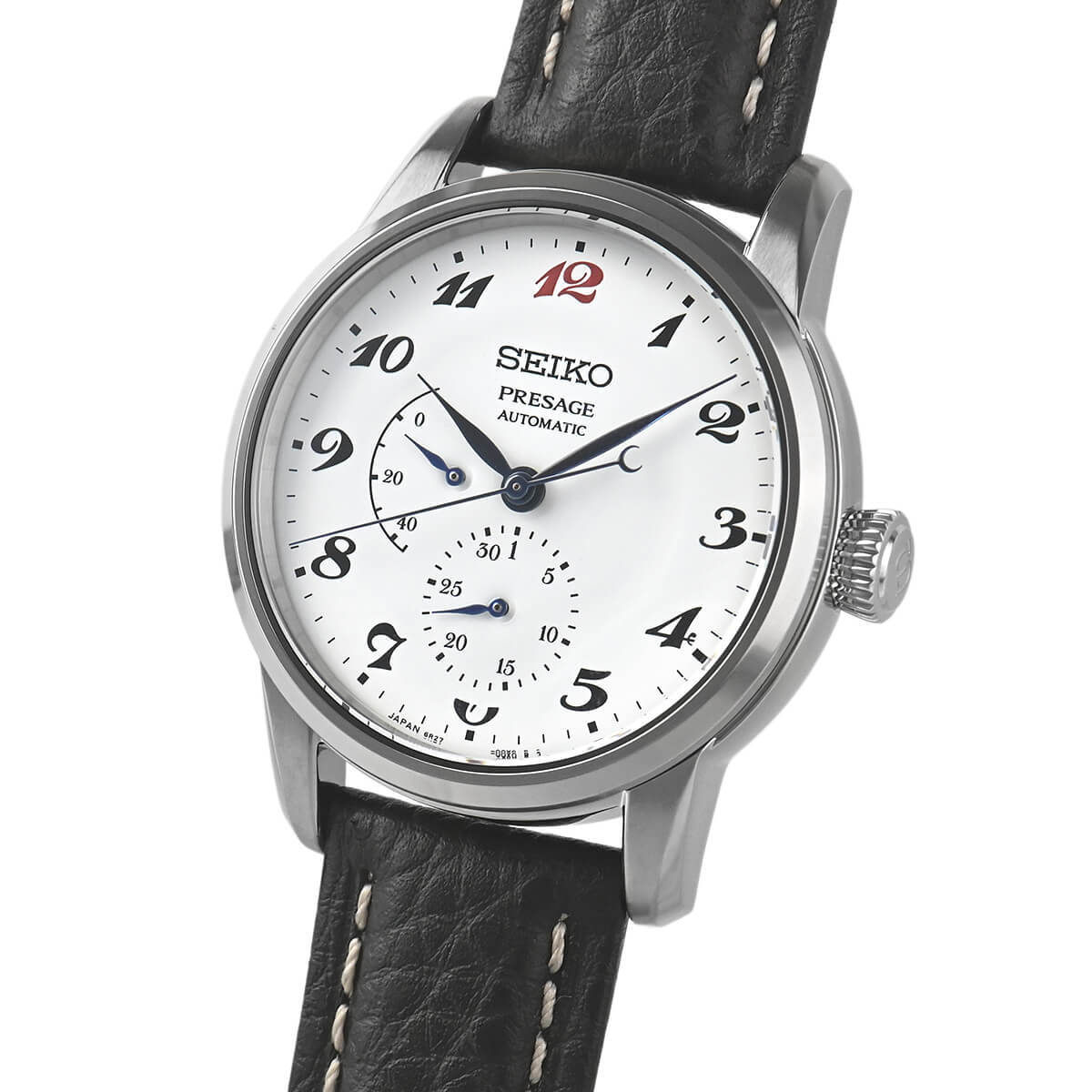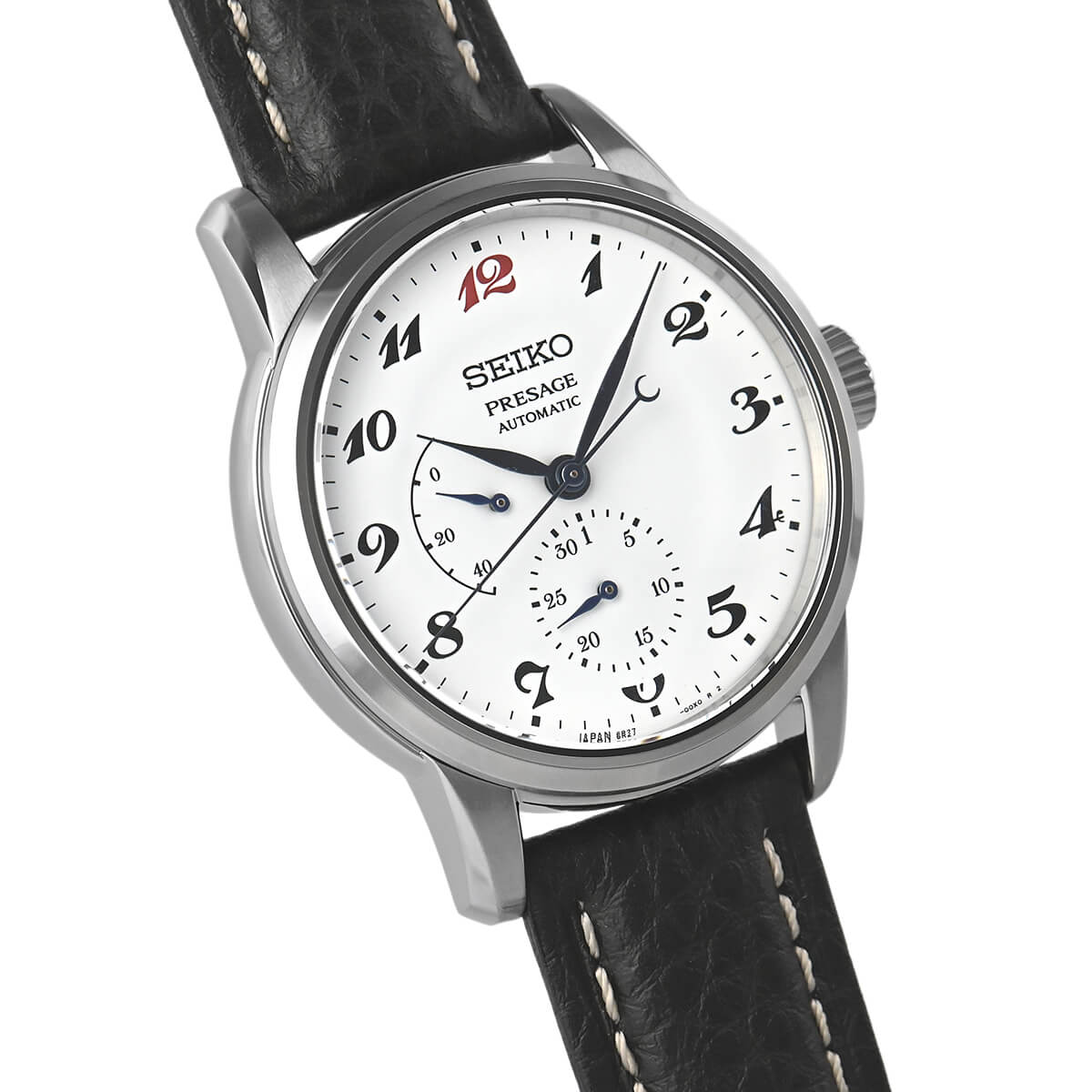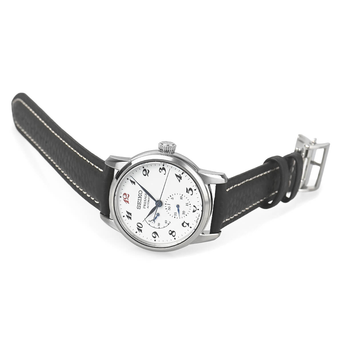 セイコー腕時計110周年を記念した限定モデル「SARW071」。初代「ローレル」のフォルムを踏襲したケースデザインに、オリジナルモデル同様、琺瑯のダイヤルに12時位置のみ赤くした独自のアラビア数字を採用しています。