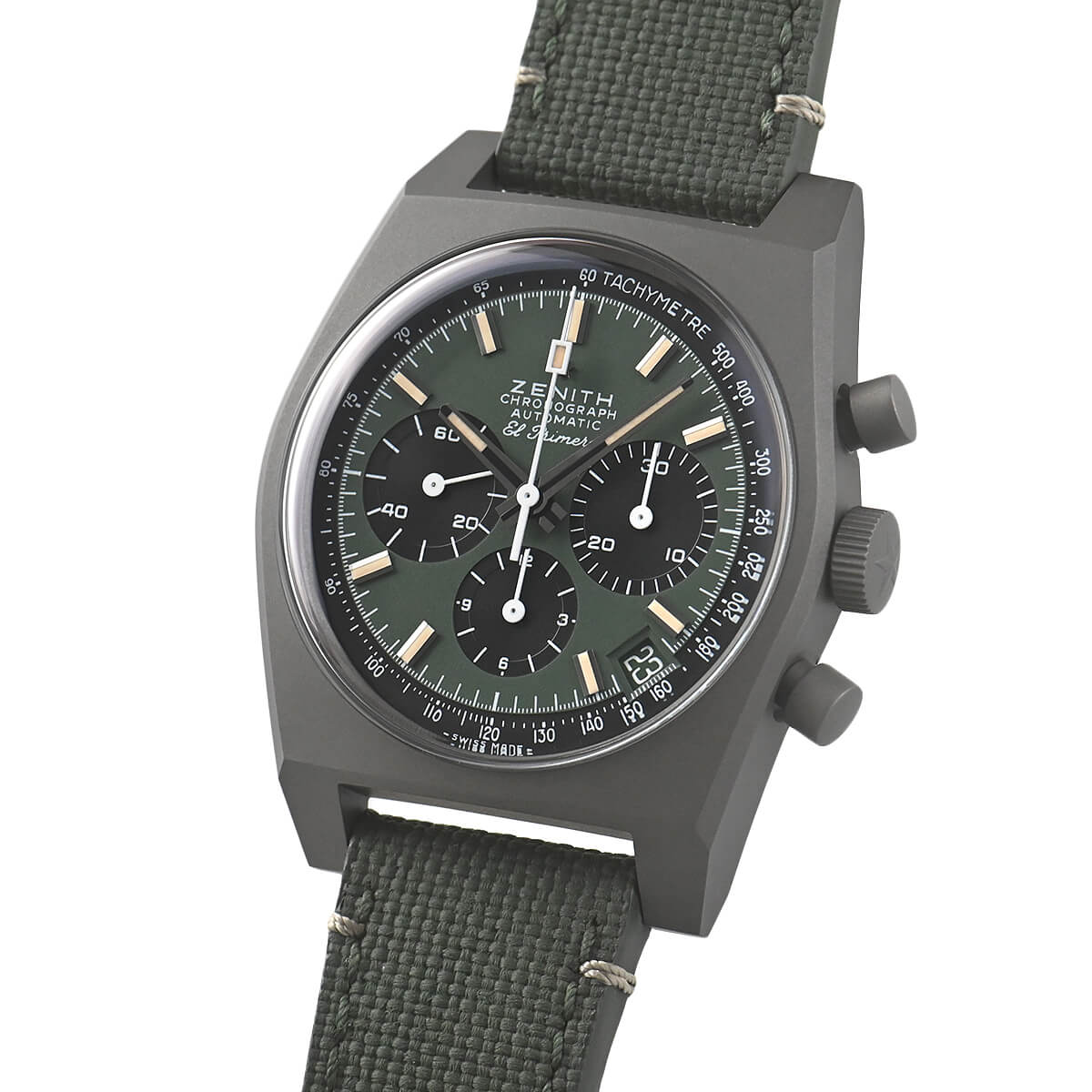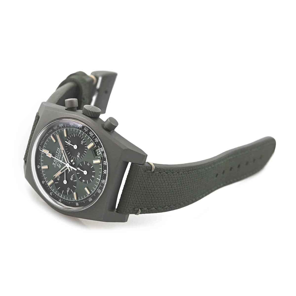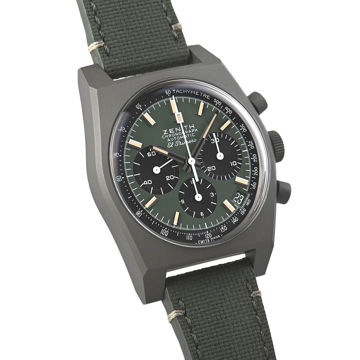 1969年に発表された時計業界初のグラデーションダイアルを採用した「Ref.A385」の復刻モデル【クロノマスター リバイバル エルプリメロ A385】。こちらはケースはマットマイクロブラスト加工チタン製のケースにディープグリーンの文字盤を組み合わせたブティック限定モデルです。
