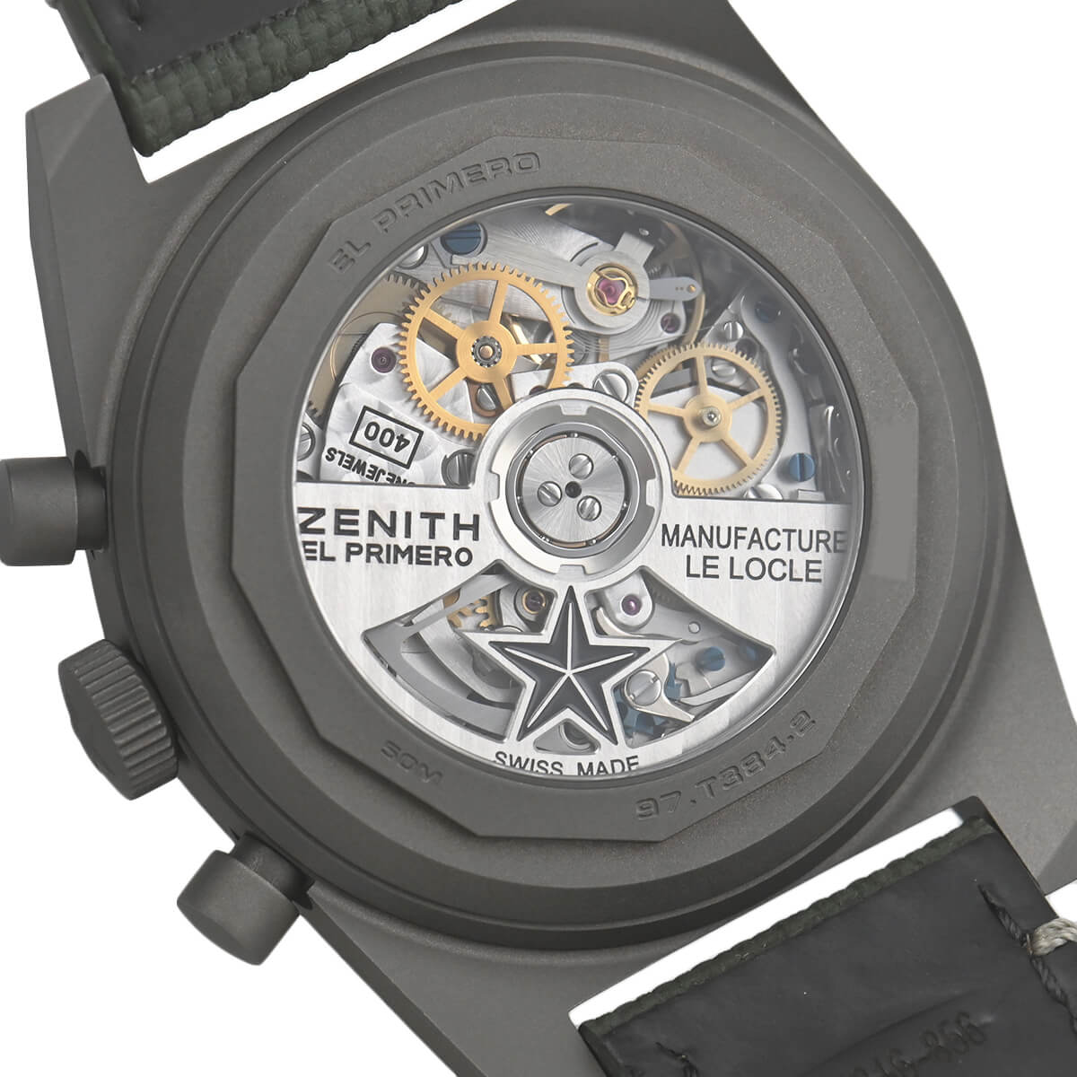 ムーブメントは50時間パワーリザーブのコラムホイール式のエル・プリメロ400を搭載します。
