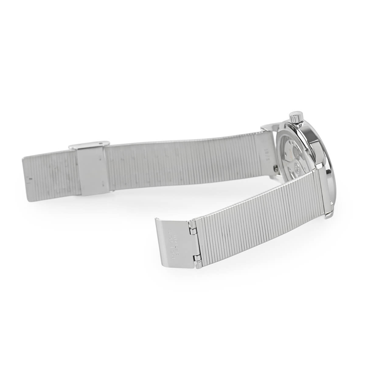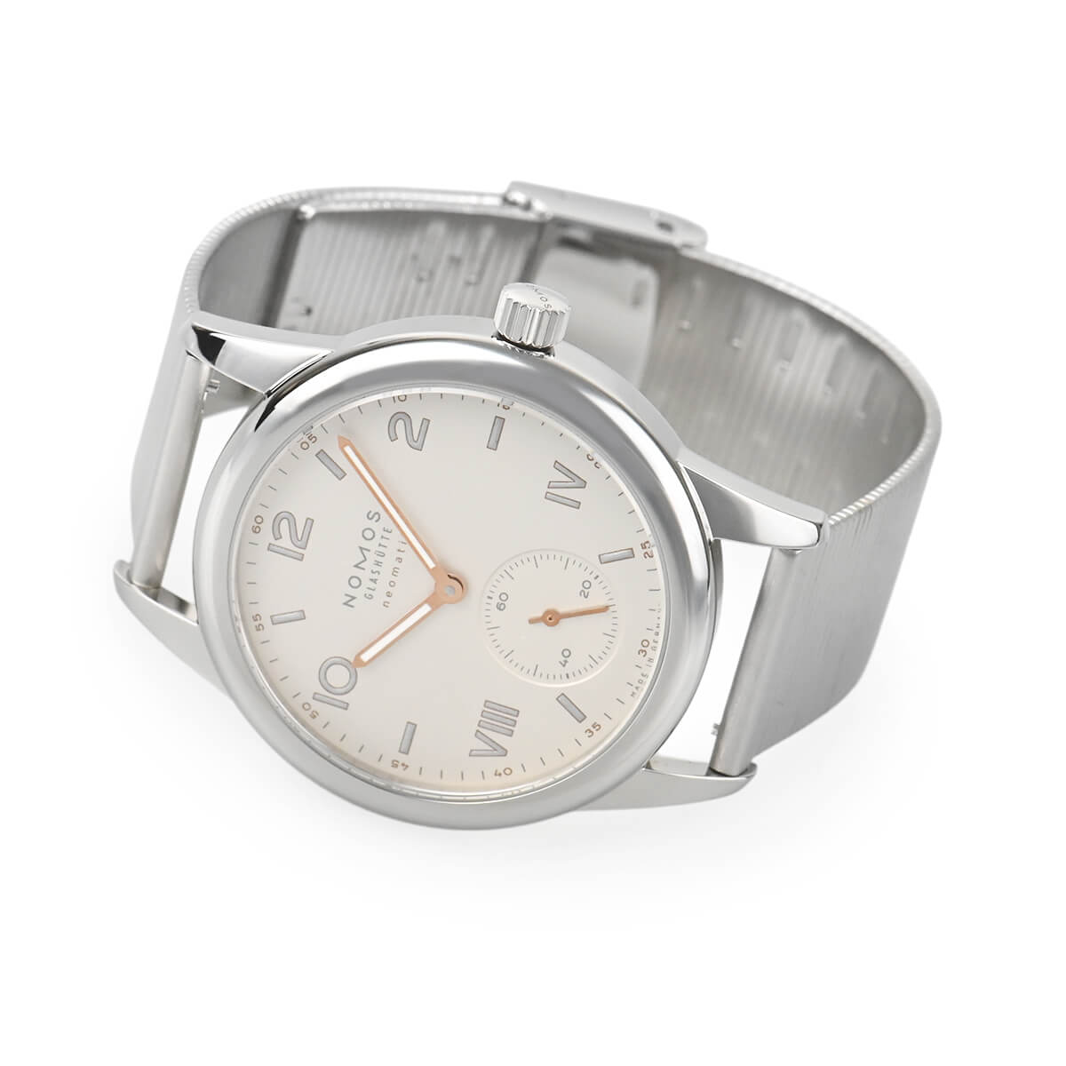 ローズゴールドの針がシルバーのダイヤルのアクセントになった一本です。