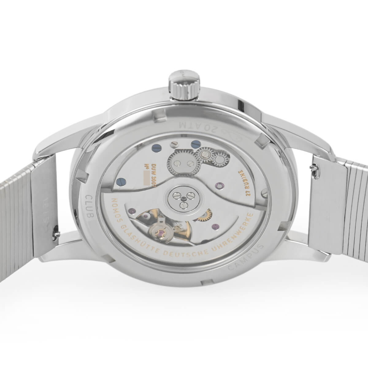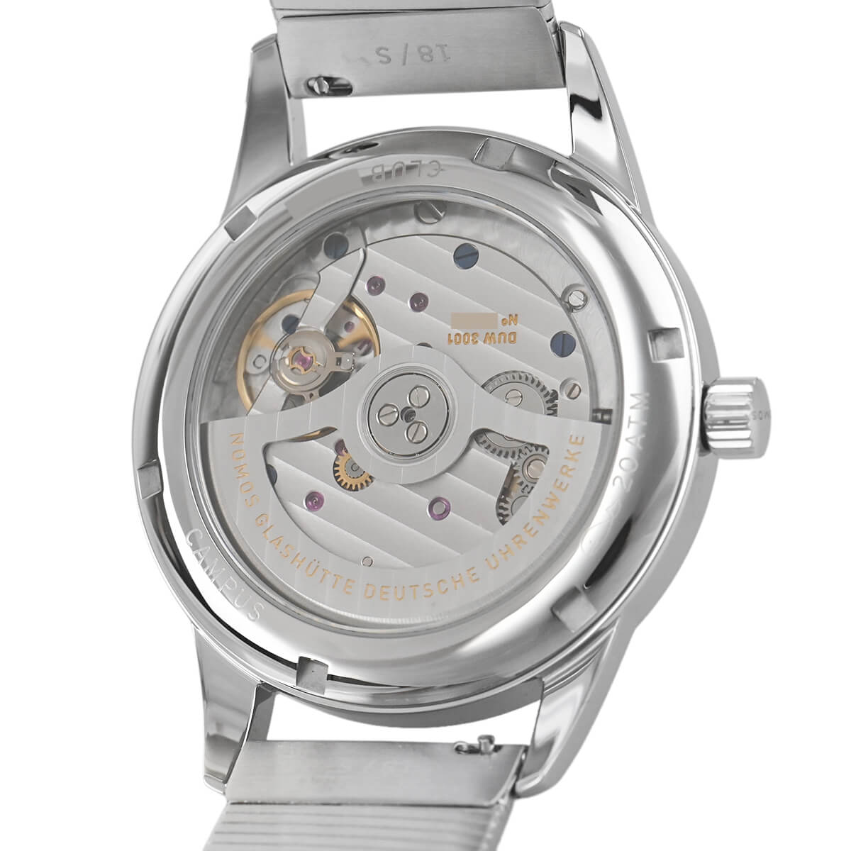 ムーブメントはノモススウィングシステムを搭載した自動巻キャリバーDUW3001。