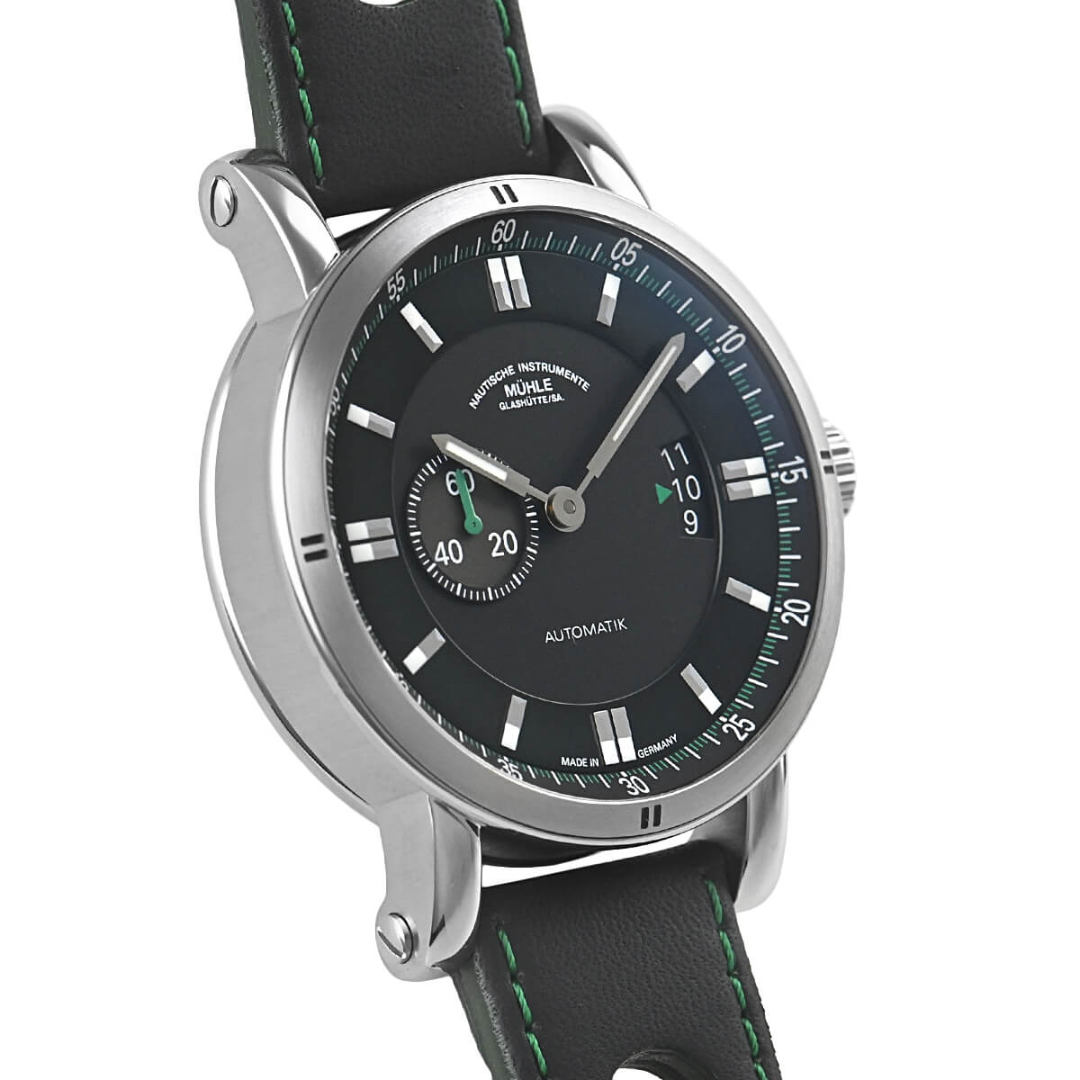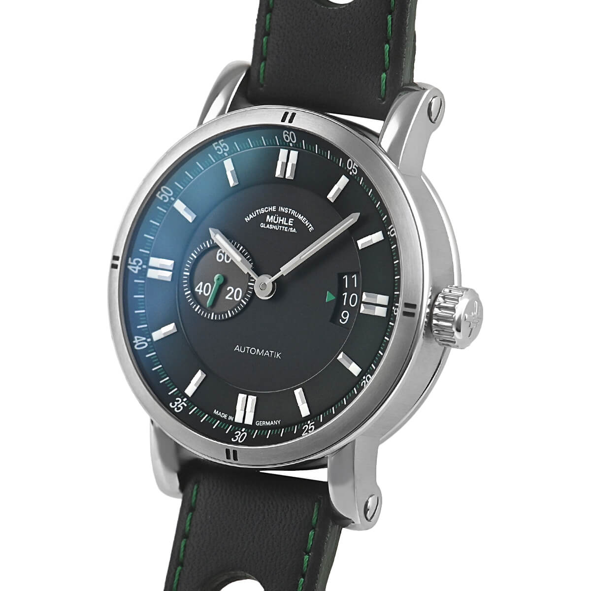 ドイツの時計産業のメッカであるグラスヒュッテに測定機械と精密機械のメーカーとして創業した「ミューレ・グラスヒュッテ」。こちらは、スポーティなデザインが特徴の【Teutonia Sport II】のグリーンモデル。