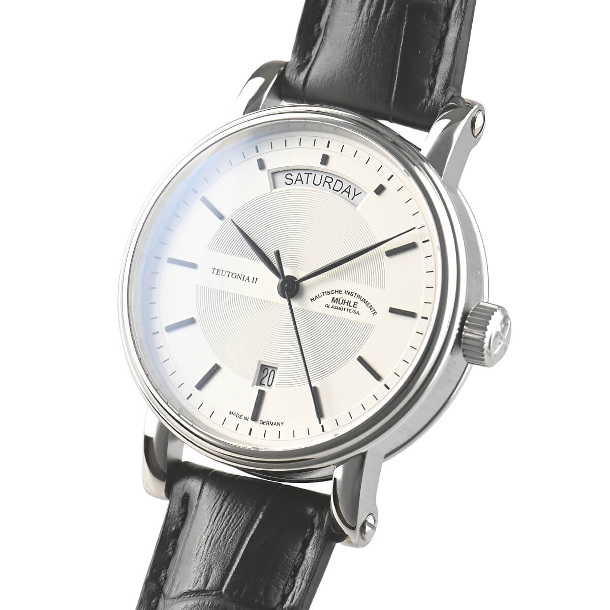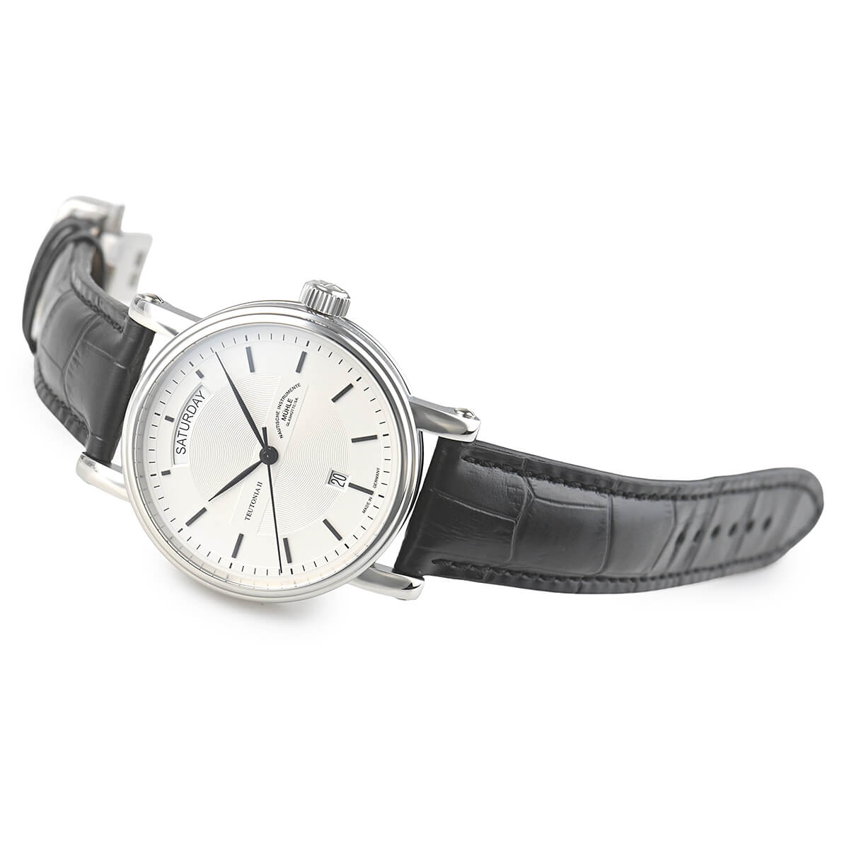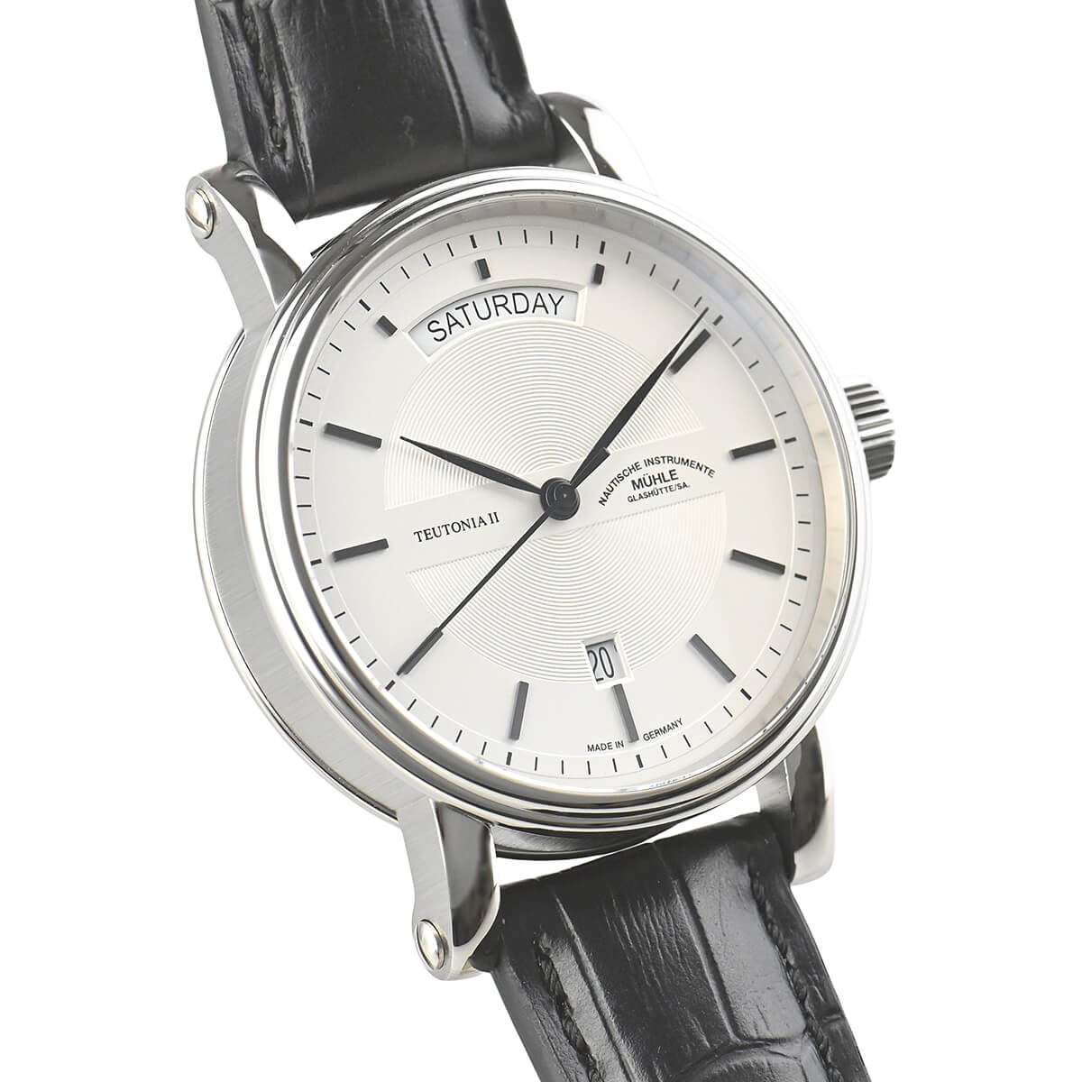 ドイツの時計産業のメッカであるグラスヒュッテに測定機械と精密機械のメーカーとして創業した「ミューレ・グラスヒュッテ」。こちらは落ち着きを感じさせるデザインが特徴の「Teutonia II Day/Date」。あらゆるシーンで使いやすく、ビジネスウォッチとしてピッタリな一本です。