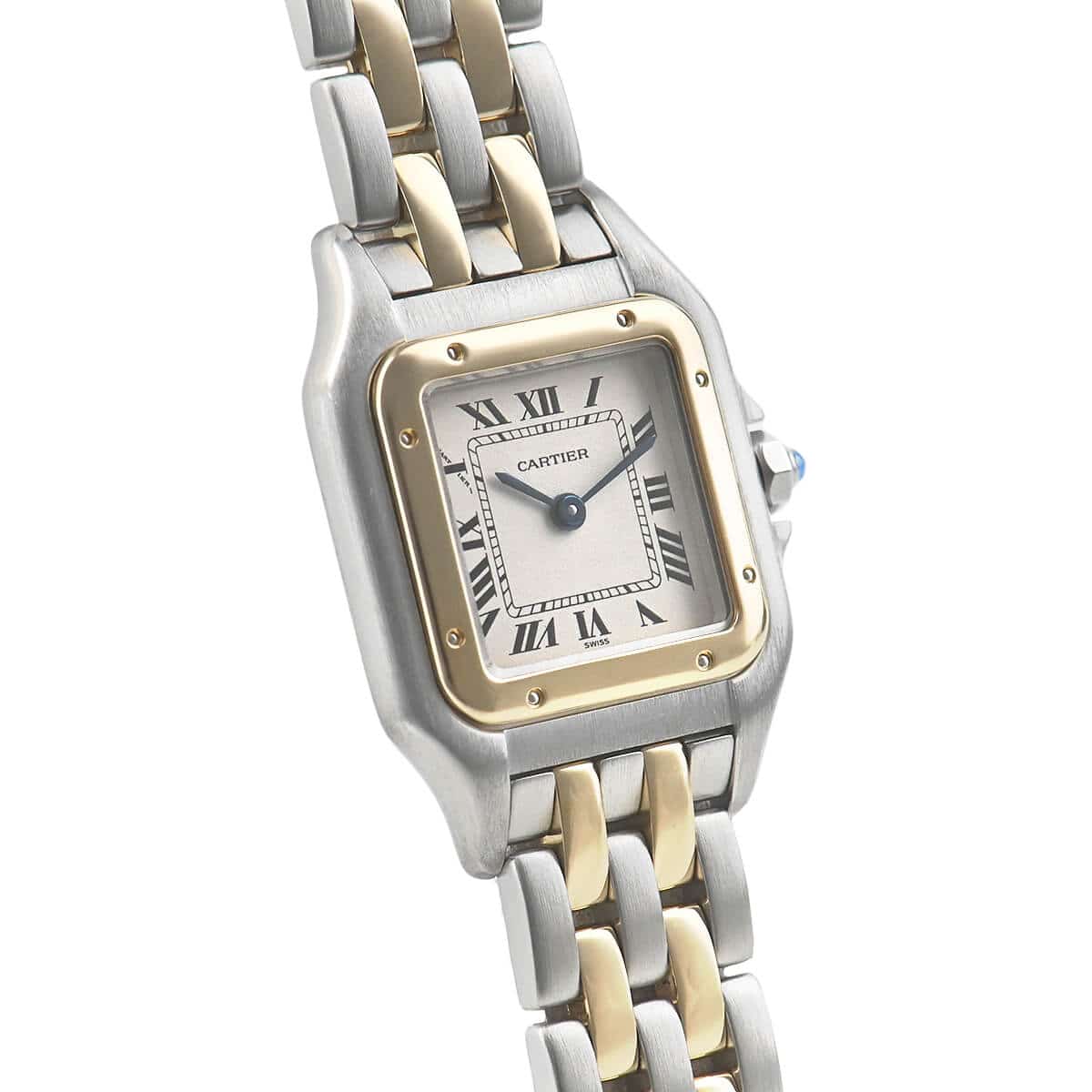 カルティエによる動物モチーフの名作「パンテール」。こちらは通称、ツーローのコンビモデルで、当時一番人気だったモデルです。