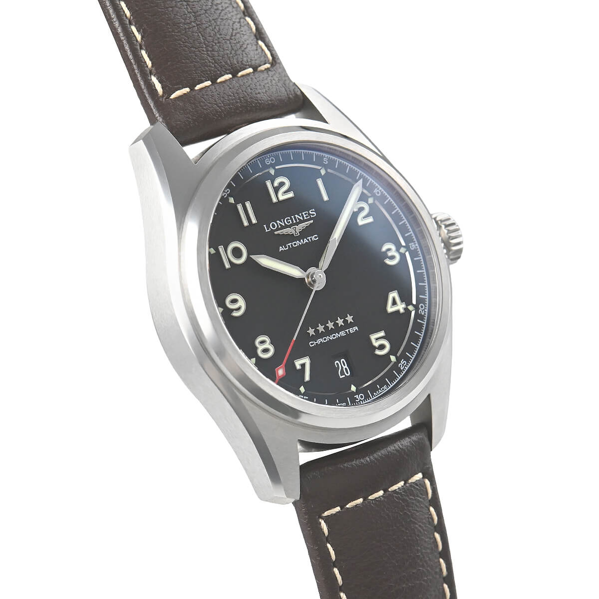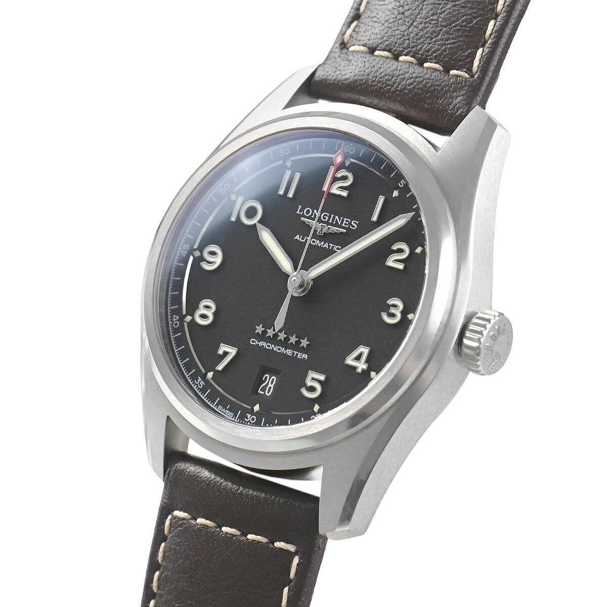 クラシックなパイロットウォッチのデザインを踏襲しながらも、アワーインデックスと針にはスーパールミノバを塗布し、更に秒針の先端には赤いペイントを施してコックピット内や暗所での視認性の向上を図っています。