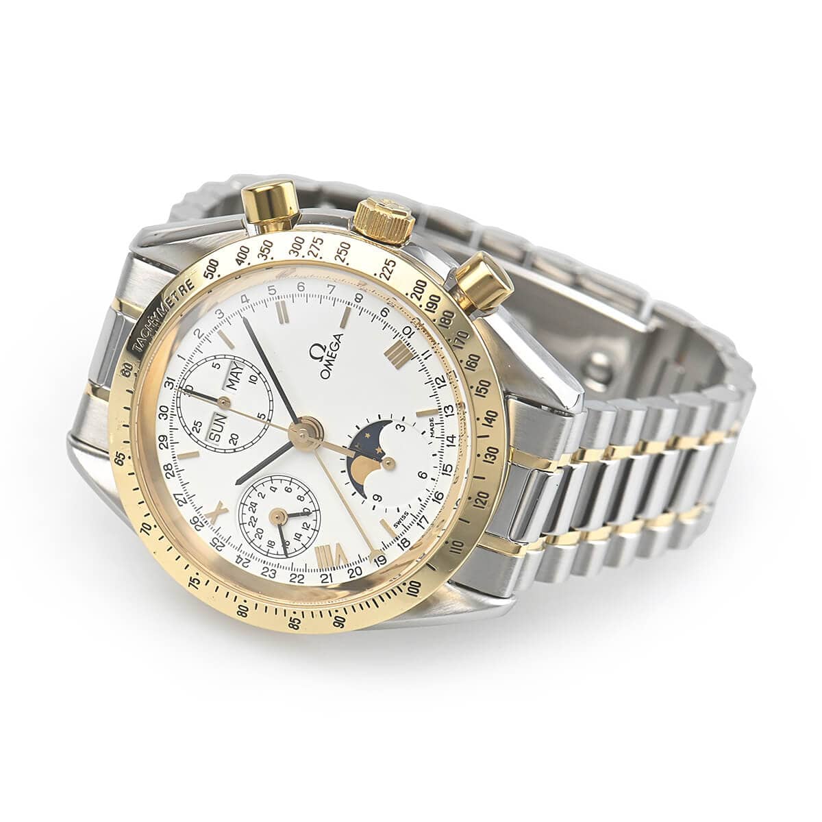 なかなかのレアモデル「スピードマスター 175.0034」。今でこそ珍しくはないスピードマスターのムーンフェイズですが、1990年当時、スピードマスターでムーンフェイズを持つレギュラーモデルはこちらだけでした。(金無垢・ピンクゴールドもございました。)