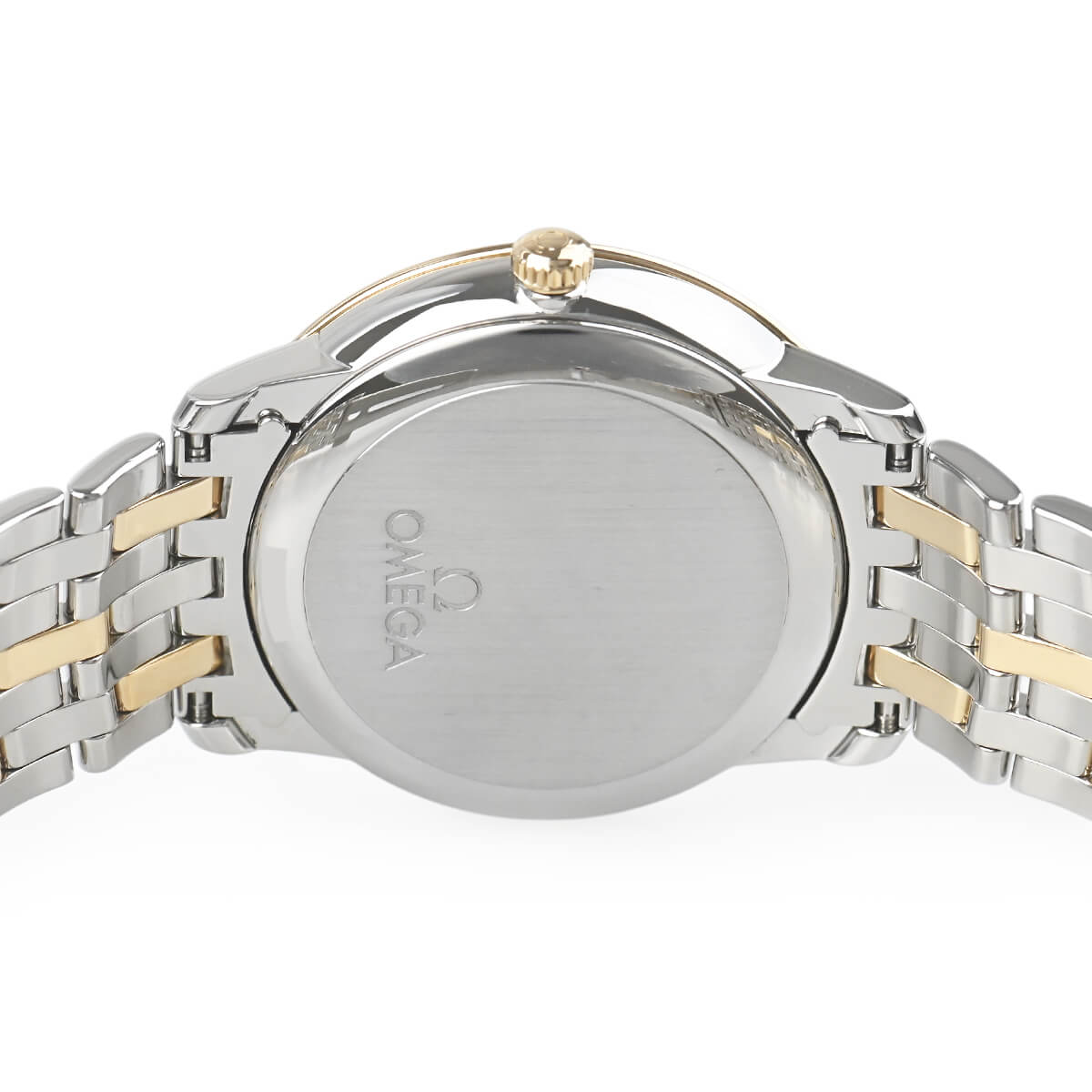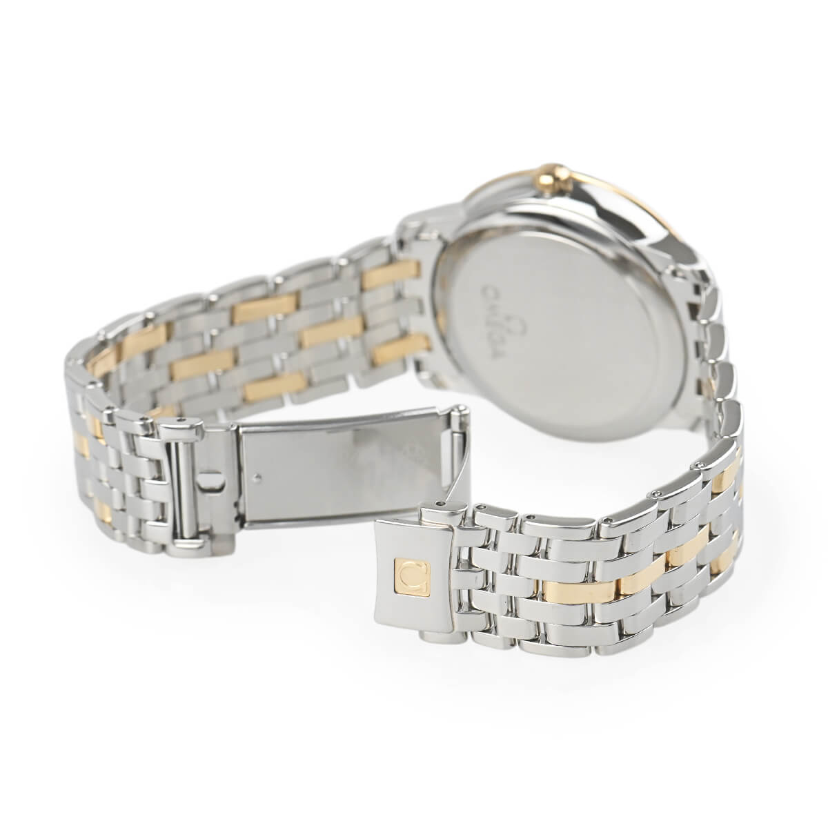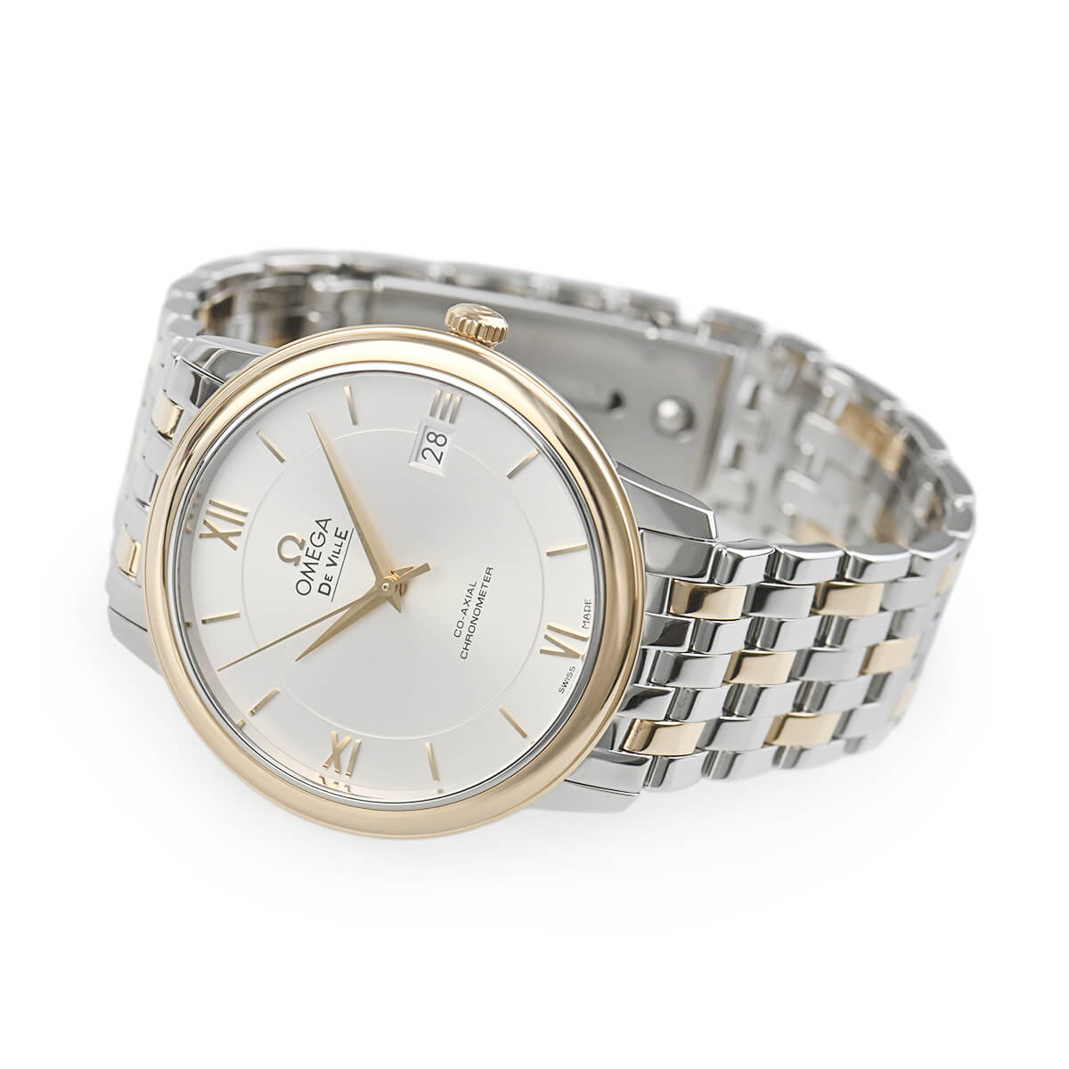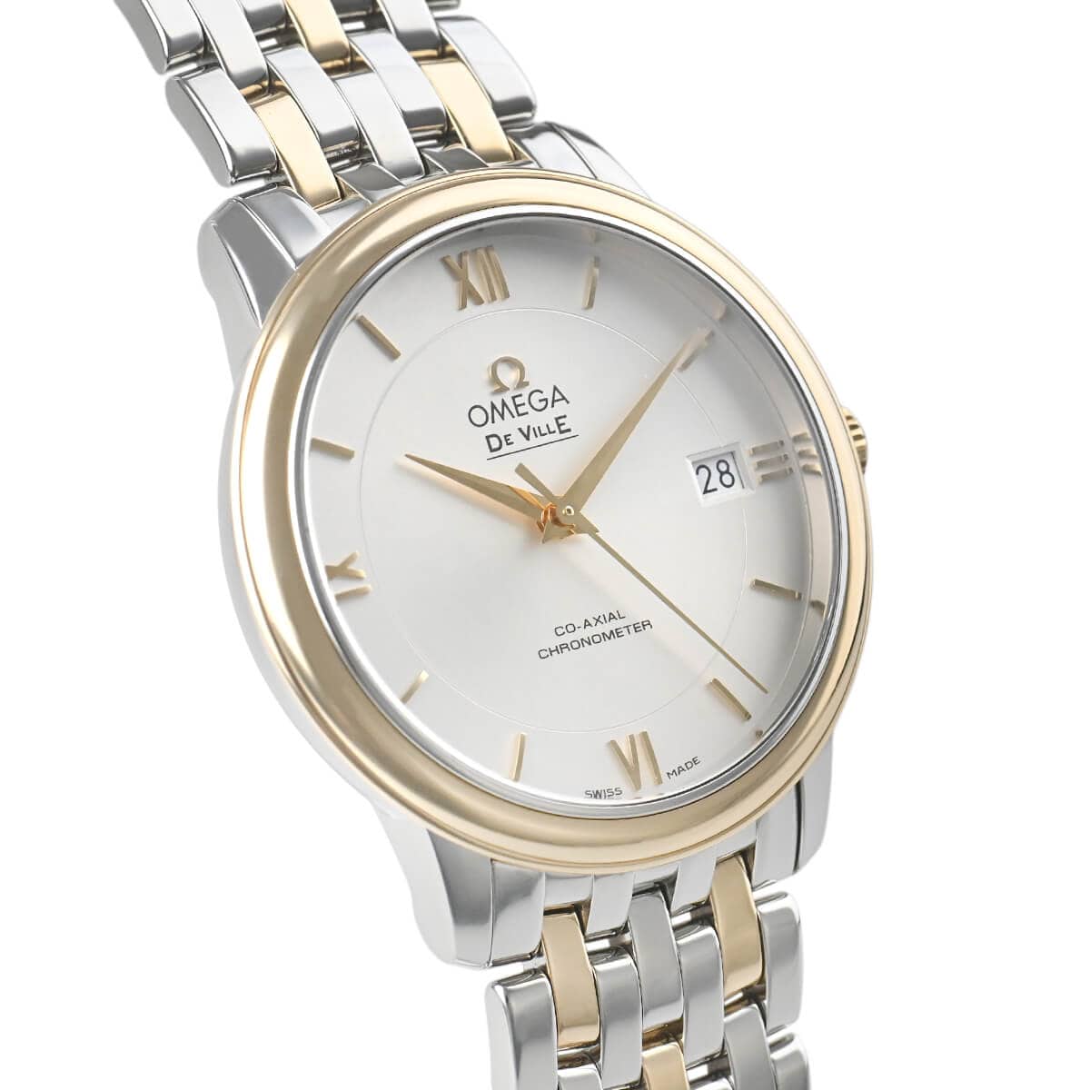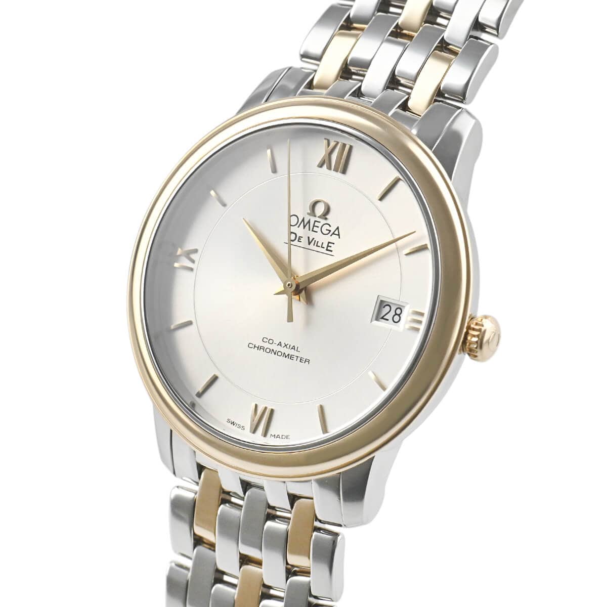 プレーンでオーソドックスなデザインの「デ・ヴィル プレステージ」。こちらはオメガが誇るコーアクシャルエスケープメントを搭載した自動巻きモデルです。