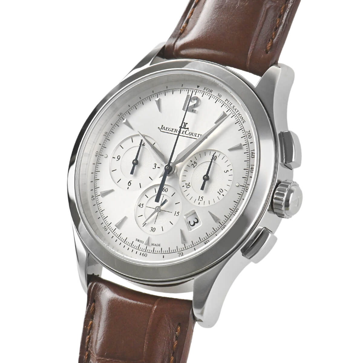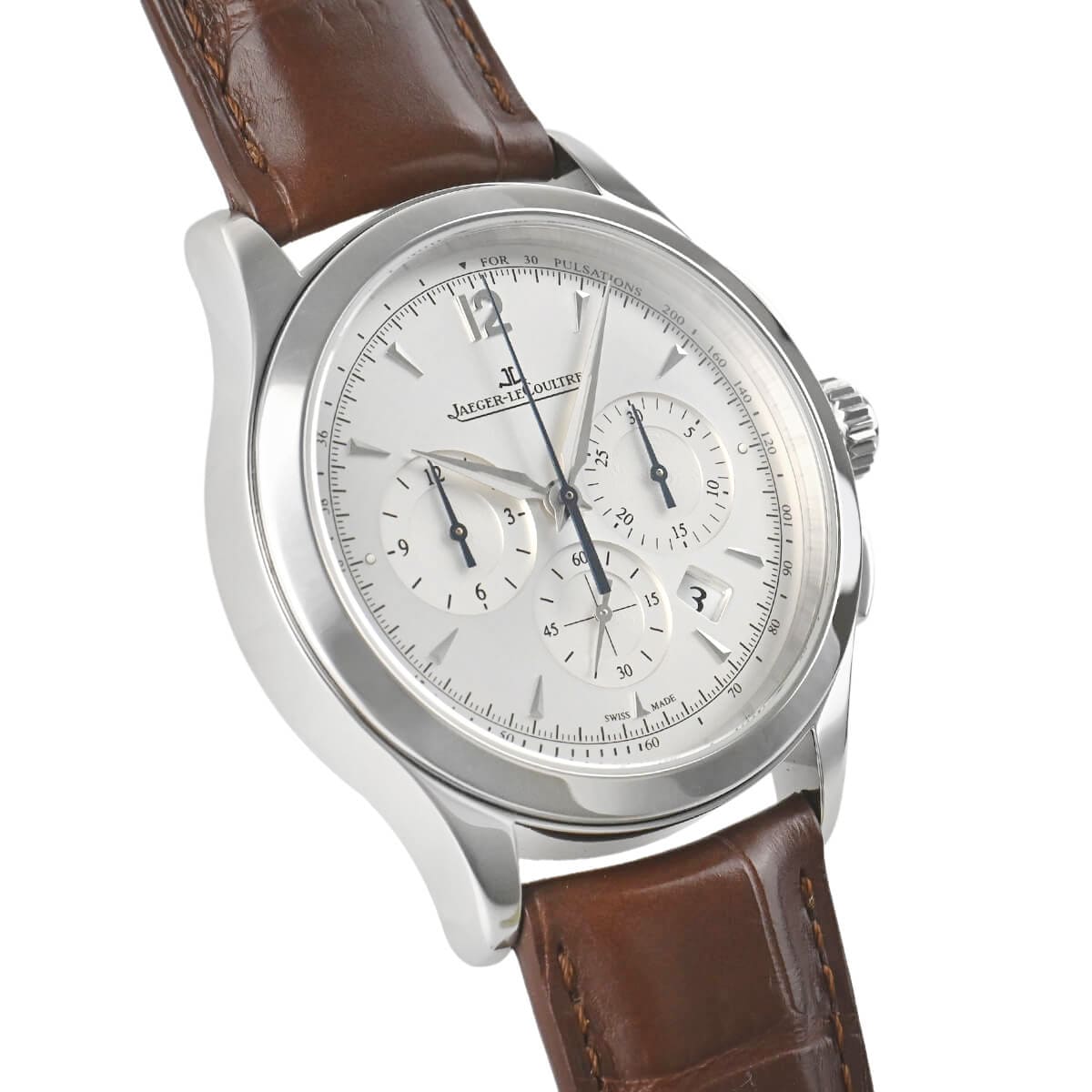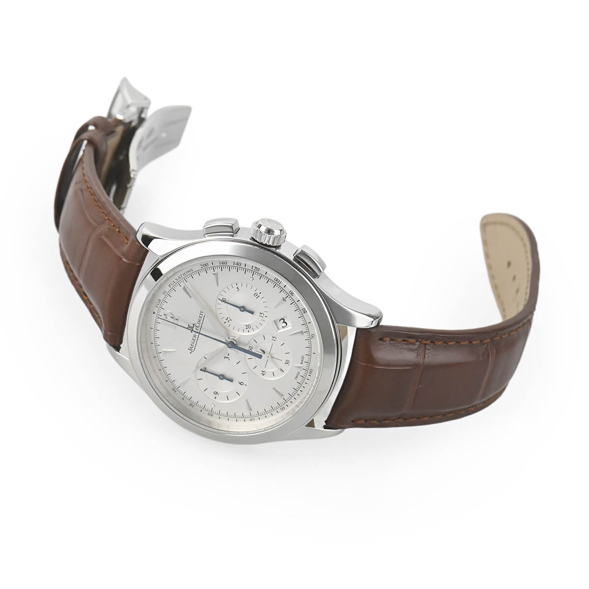 高い技術力を誇るマニュファクチュールのジャガー・ルクルトですが、不思議にもシンプルなクロノグラフは多くありません。その数少ないシンプルなクロノグラフがこの「マスタークロノグラフ」です。