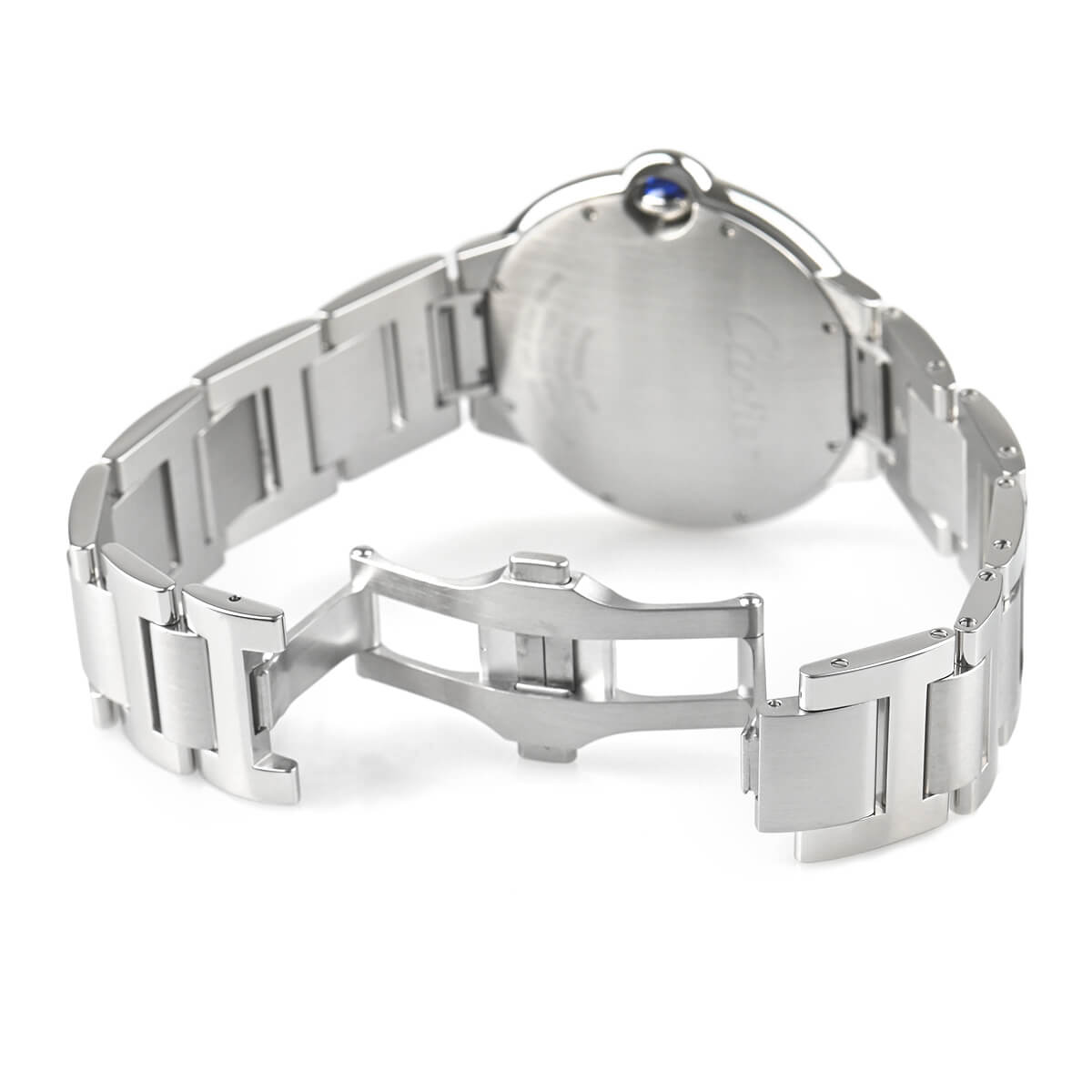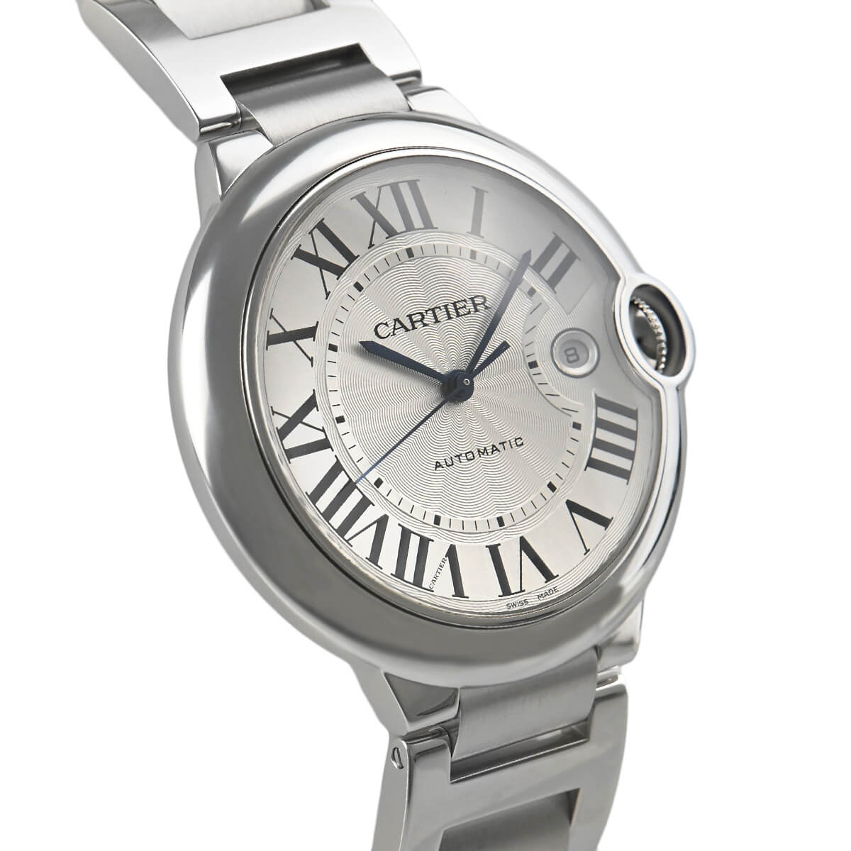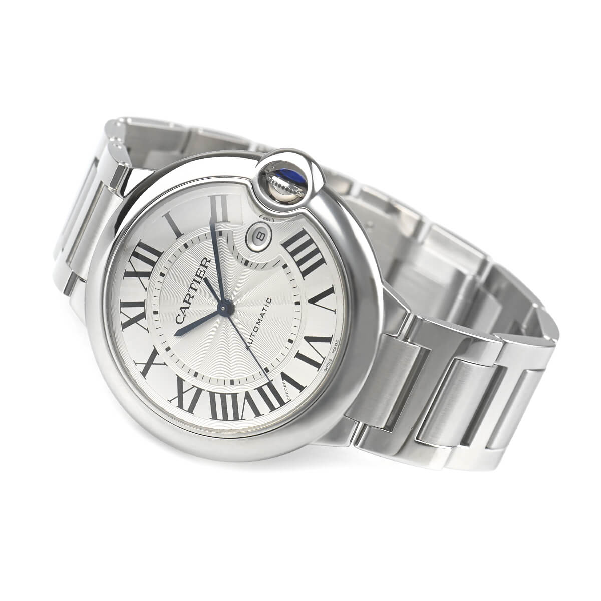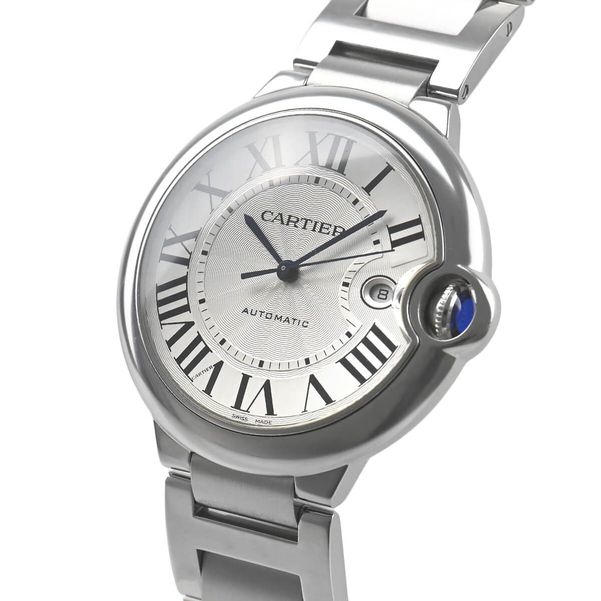 ギヨシェ彫りを施したダイアルにローマインデックスとブルースチールの剣型針など、カルティエならではのエッセンスが詰まっています。