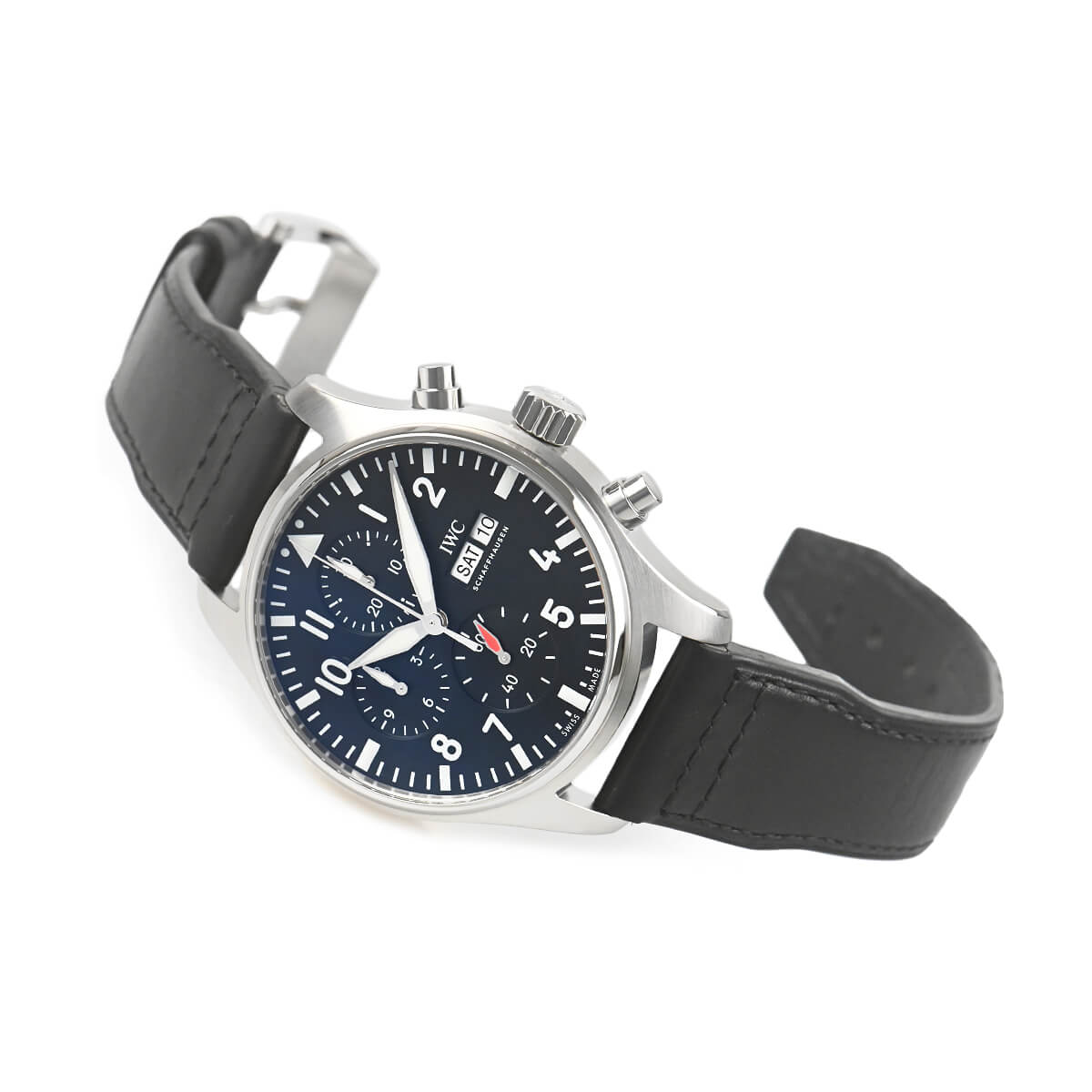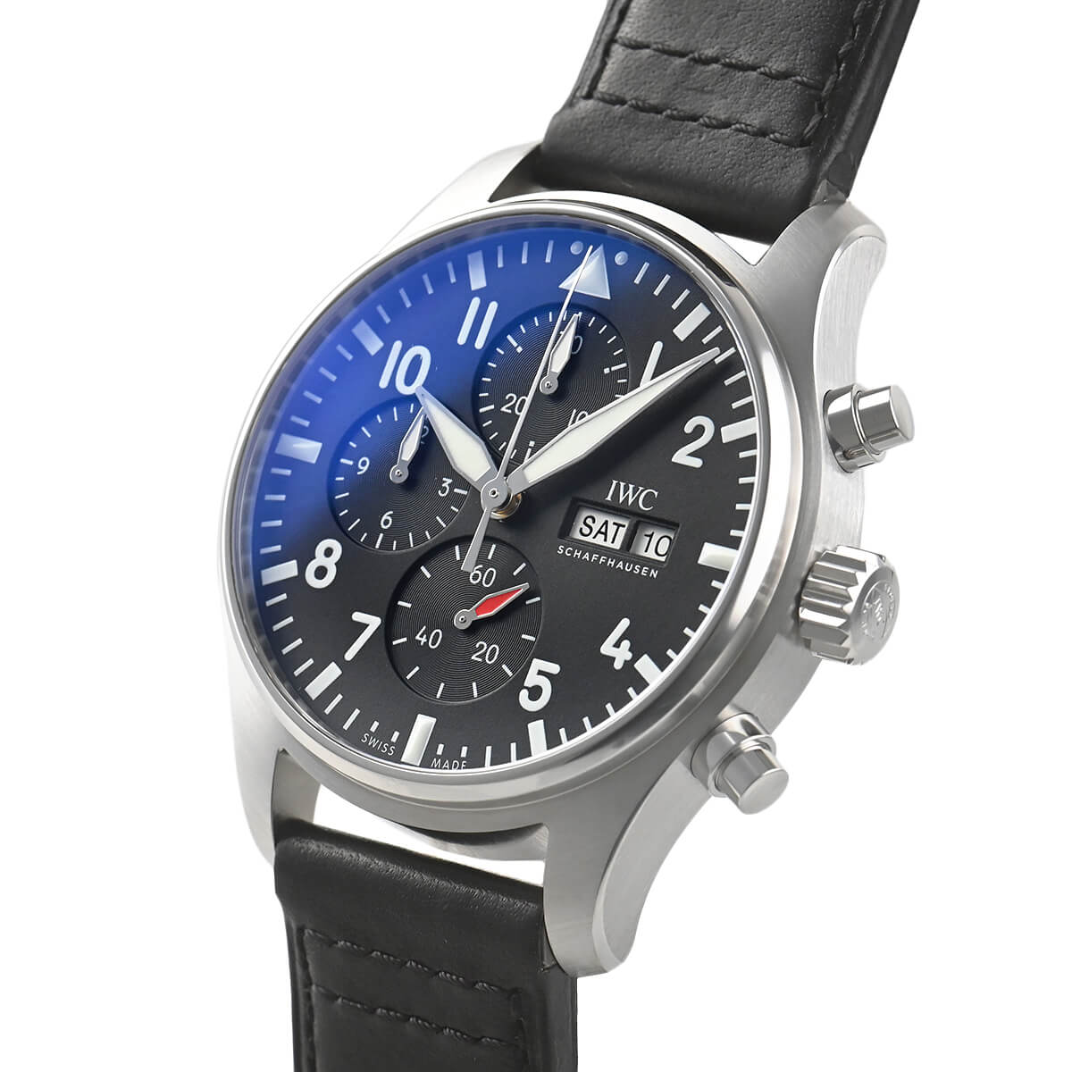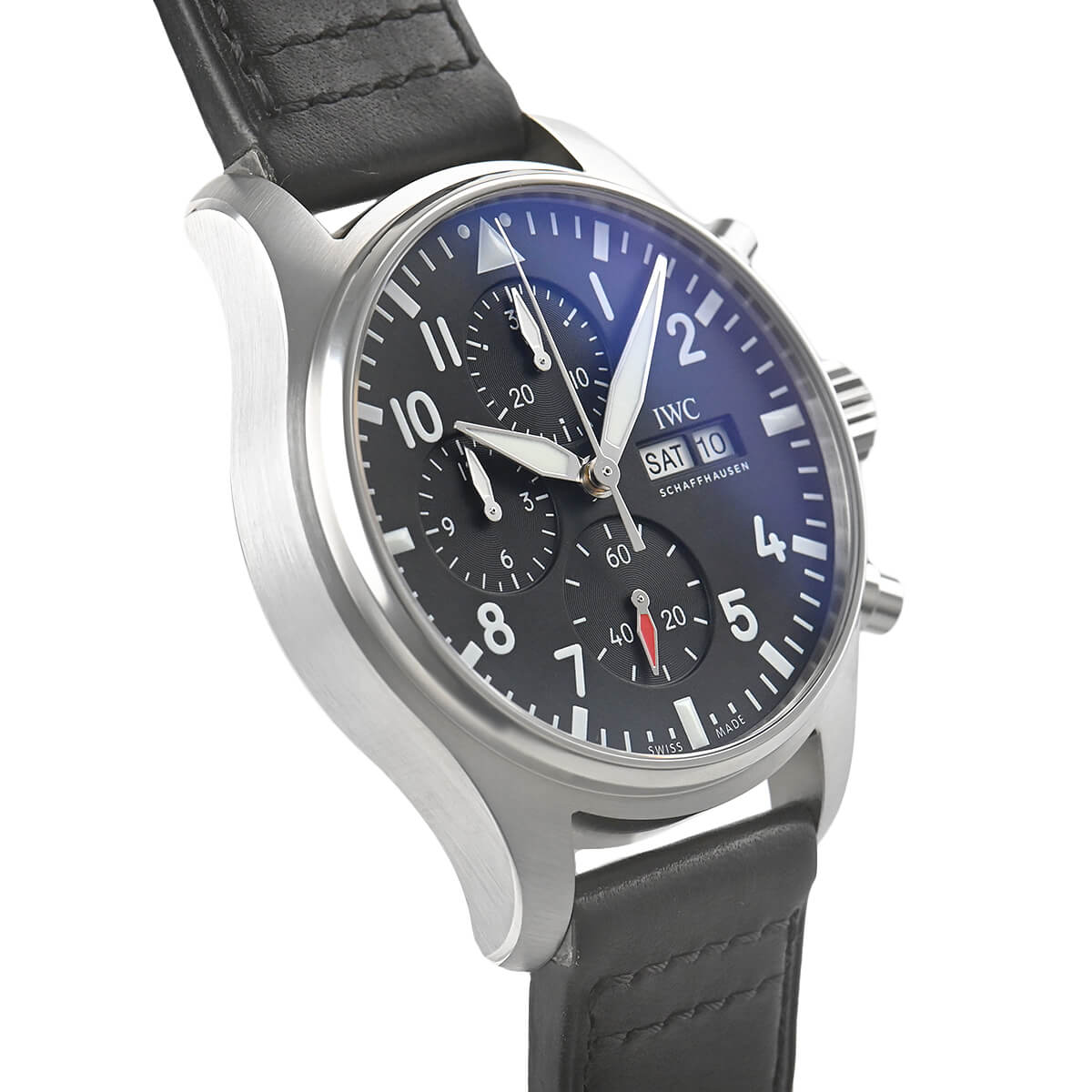 2022年に新たに生まれ変わったパイロットウォッチクロノグラフ【IW378001】。新たに自社製キャリバー 69385を搭載し、ストップウォッチ機能と最長12時間までの計測が可能で、9時位置のカウンターに時単位、12時位置のカウンターに分単位の計測時間を表示。