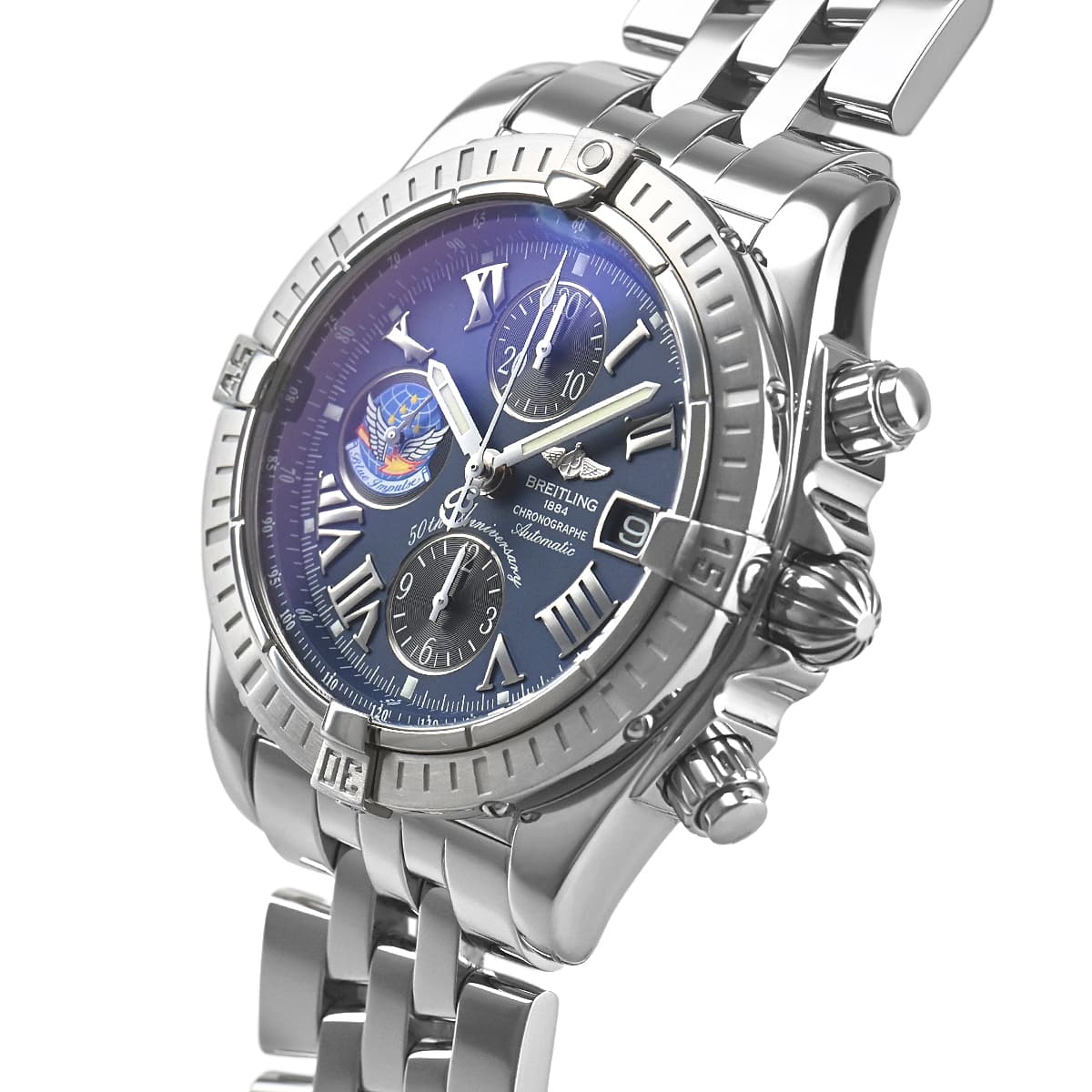 ブライトリングの主力ラインの一つであるクロノマットシリーズ「クロノマット エボリューション」が入荷しました。今回入荷したこちらは、日本の航空自衛隊アクロバットチーム「ブルーインパルス」の50周年記念モデル。