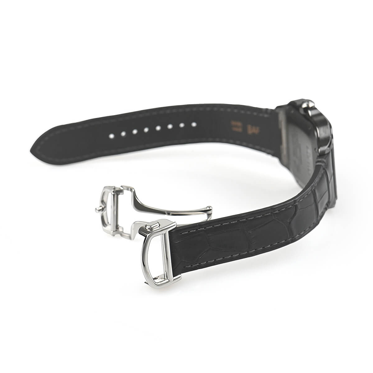 こちらは縦・横39.8mmのADLC加工が施されたステンレスケースに自社製自動巻きキャリバー1847MCを搭載したメンズモデル。