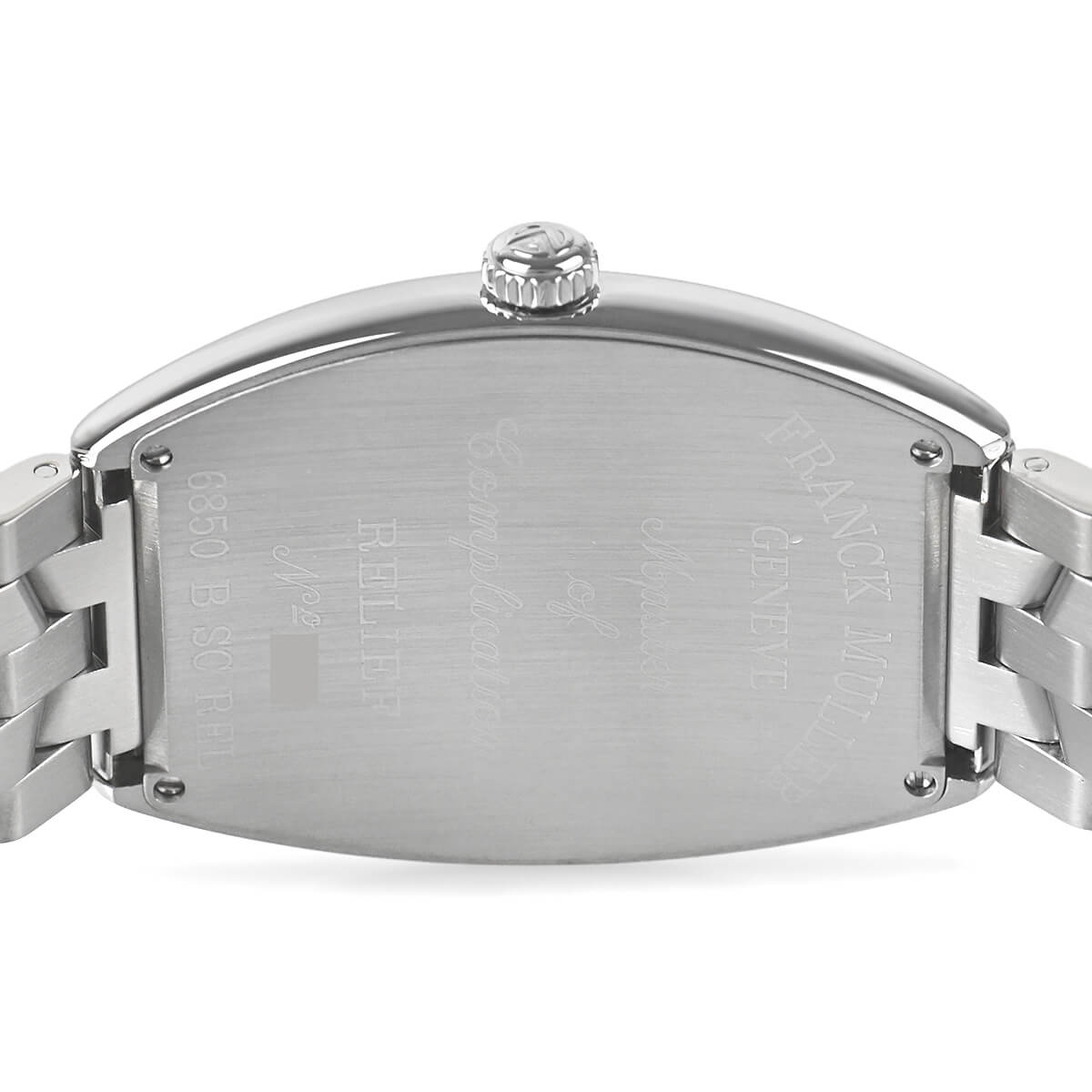 アールデコ時代の優雅なケースデザインと数字が現代人の琴線に触れ、今やポピュラーなデザインと認識されているフランクミュラーのトノーケース。こちらは6850ケースに人気のRELIEF文字盤を採用し、よりいっそう華やかな仕上がりになっています。