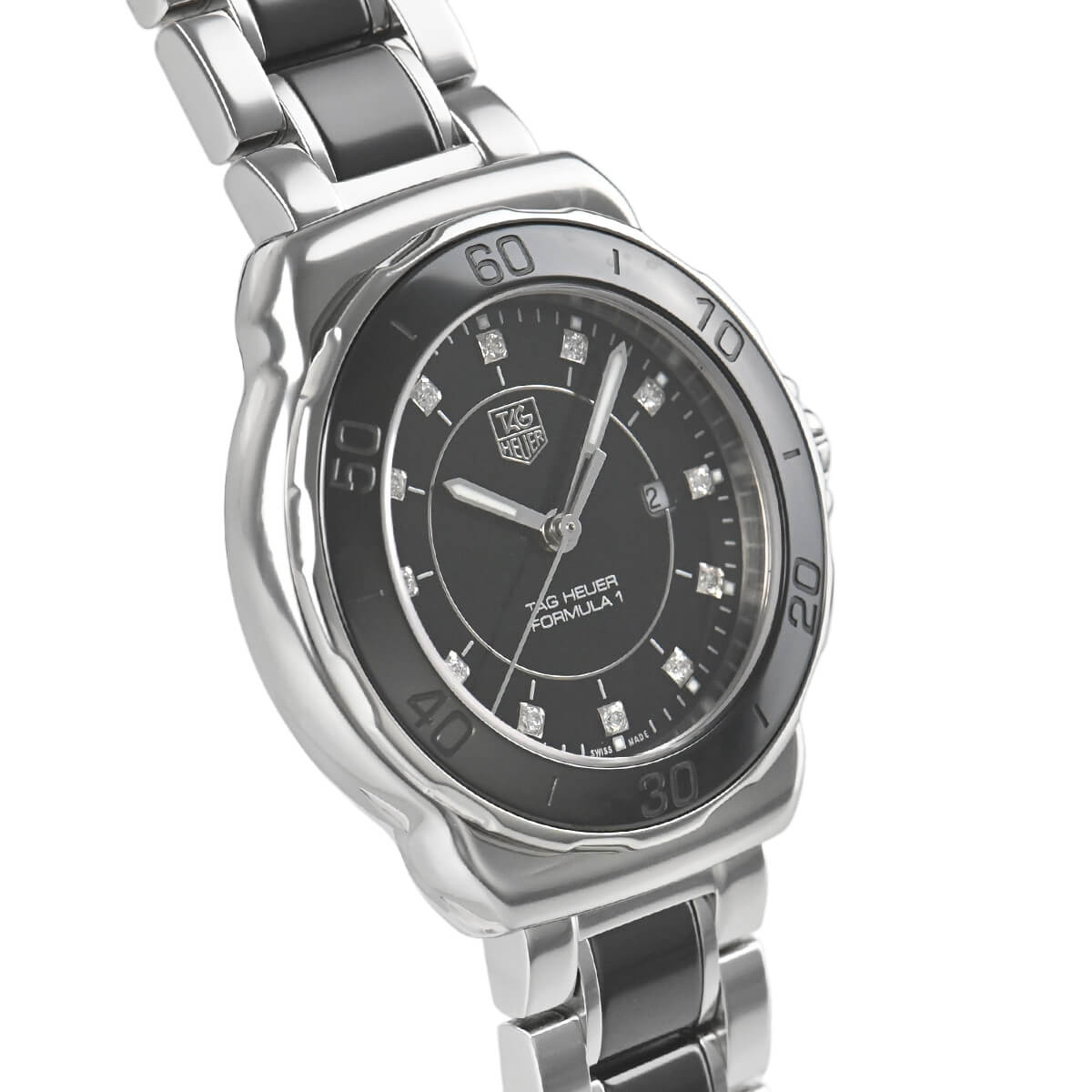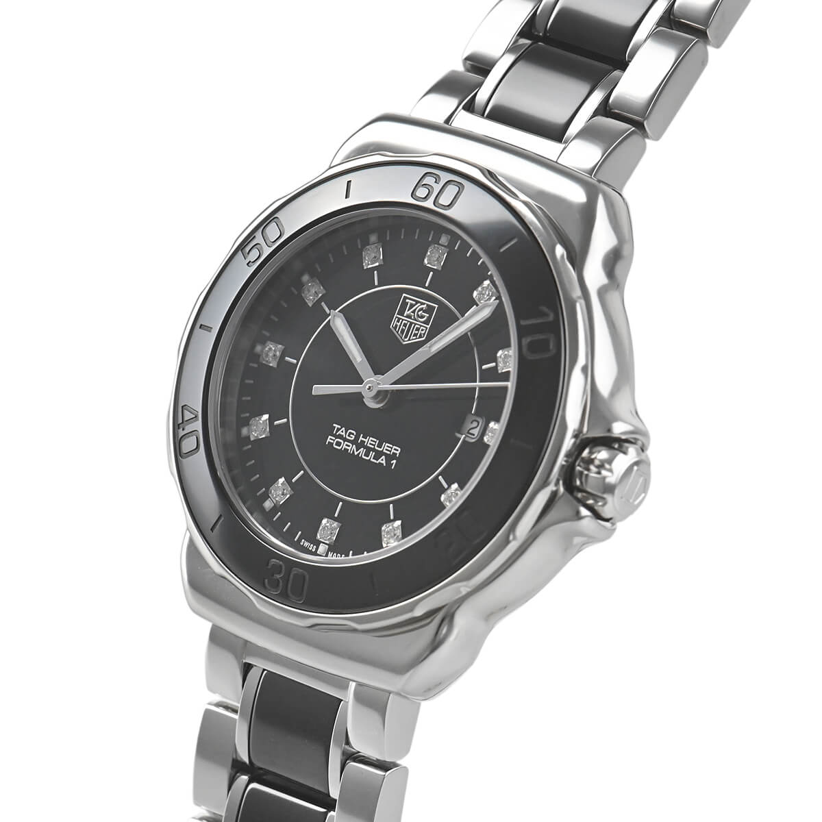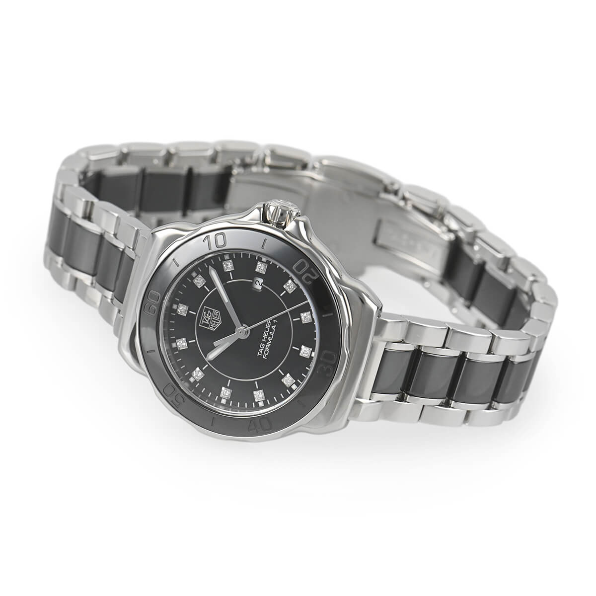 タグ・ホイヤーの人気モデル「フォーミュラー1」が入荷しました。ブラックセラミックの質感とステンレスのコントラストがスポーティーでありながら、文字盤にセットされた12ポイントダイヤがエレガントな印象を与えてくれる一本。