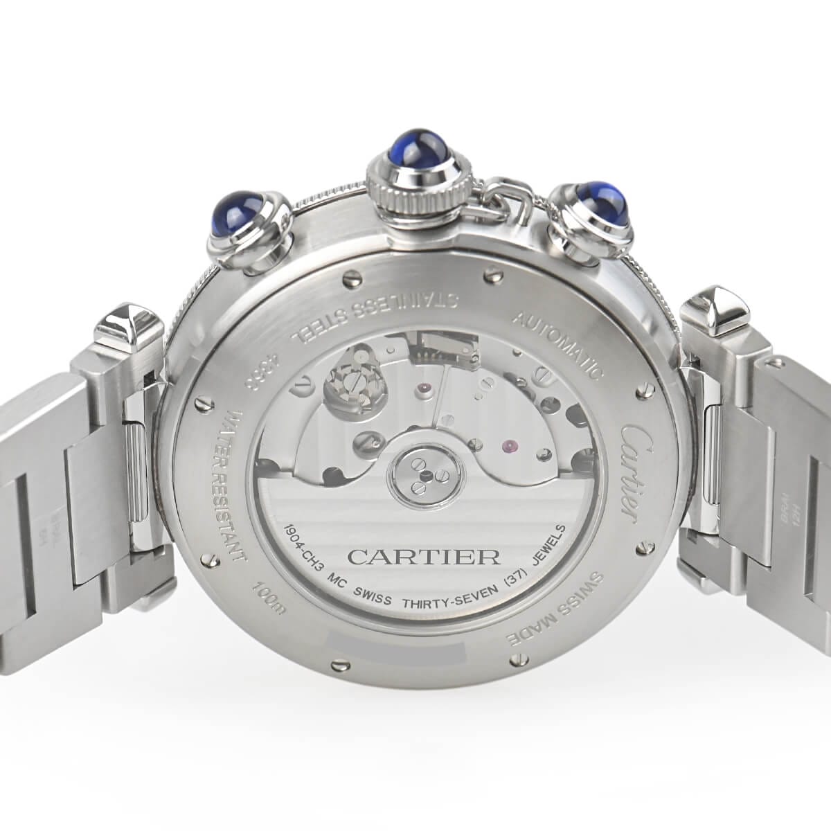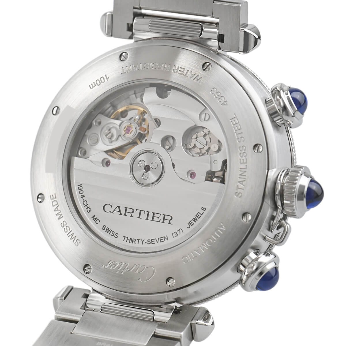 針にはカルティエらしく美しく焼かれたブルースチール針を採用し、ムーブメントには耐磁性能にも優れた自社製自動巻きキャリバー1904CH MCを搭載します。