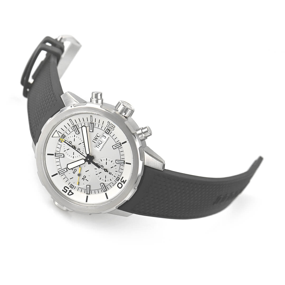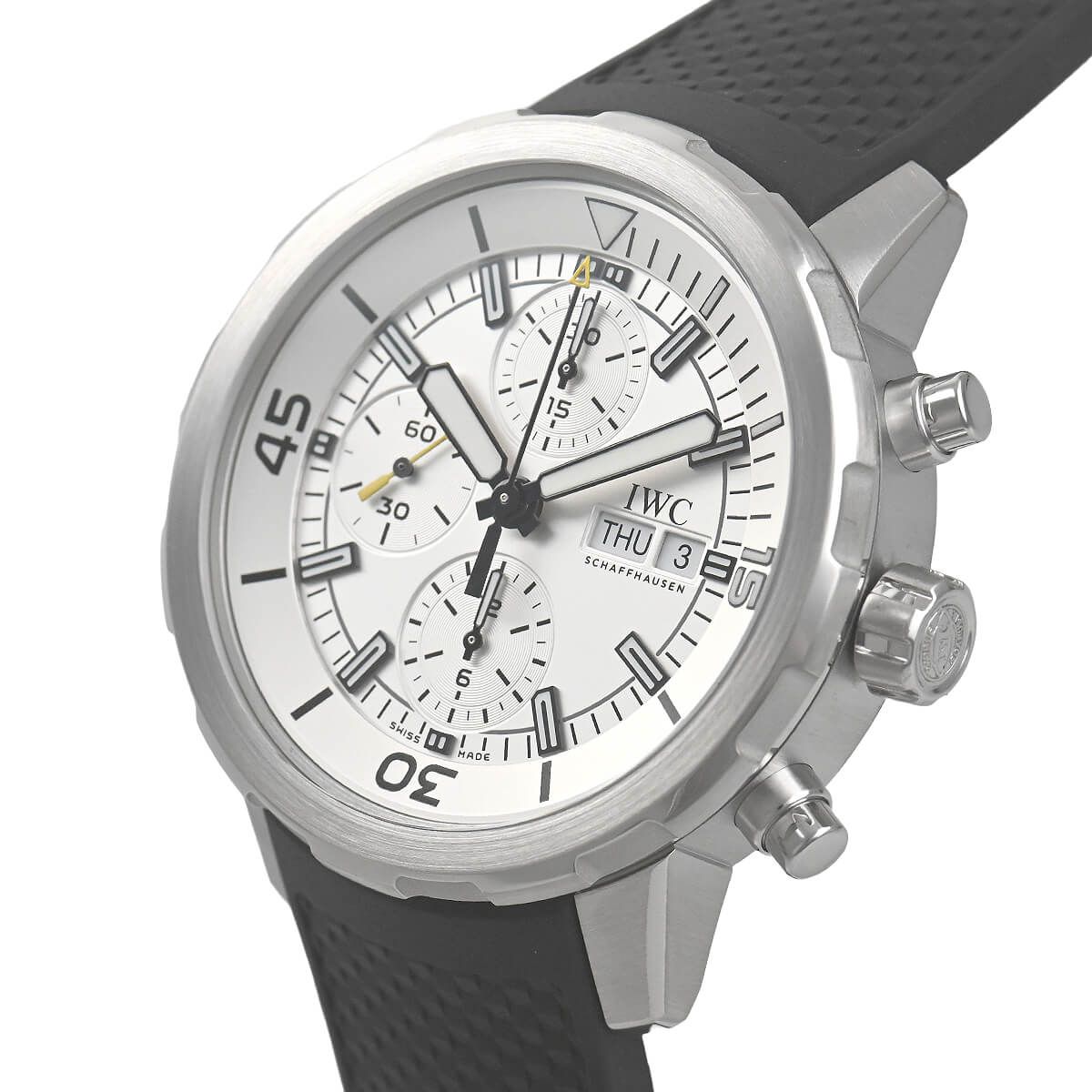 初代「アクアタイマー」と「オーシャン2000」をイメージしてデザインされた新しい「アクアタイマークロノ」。IWCファンならば、ディテールにそれら名モデルの面影を発見できるはずです。