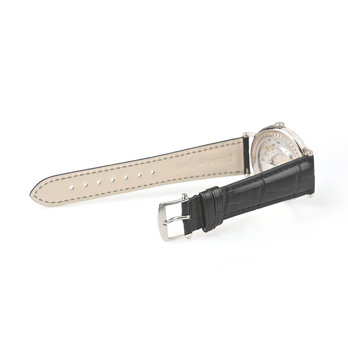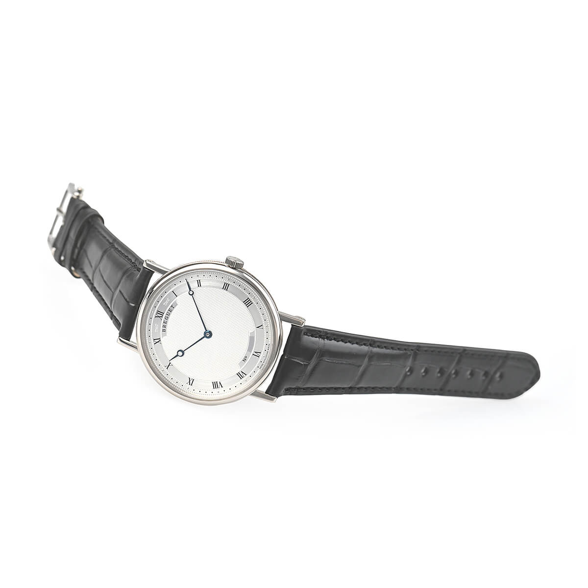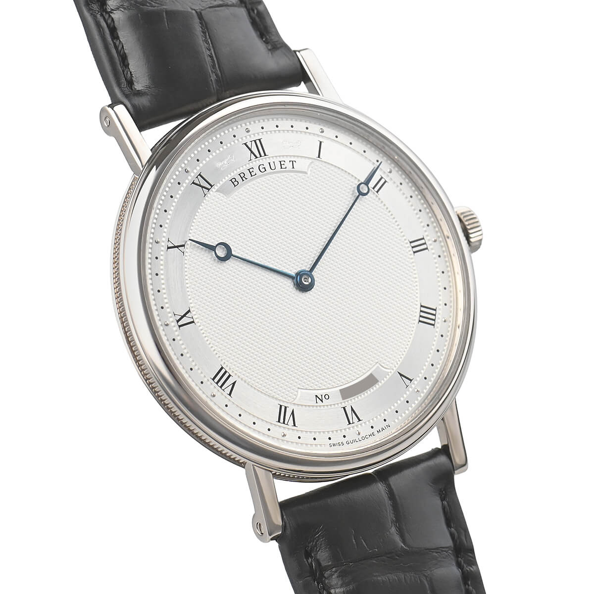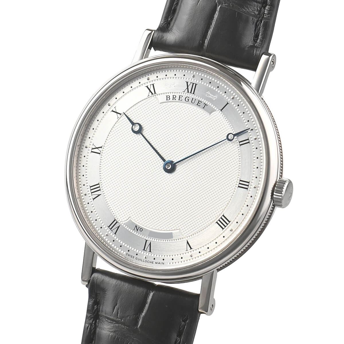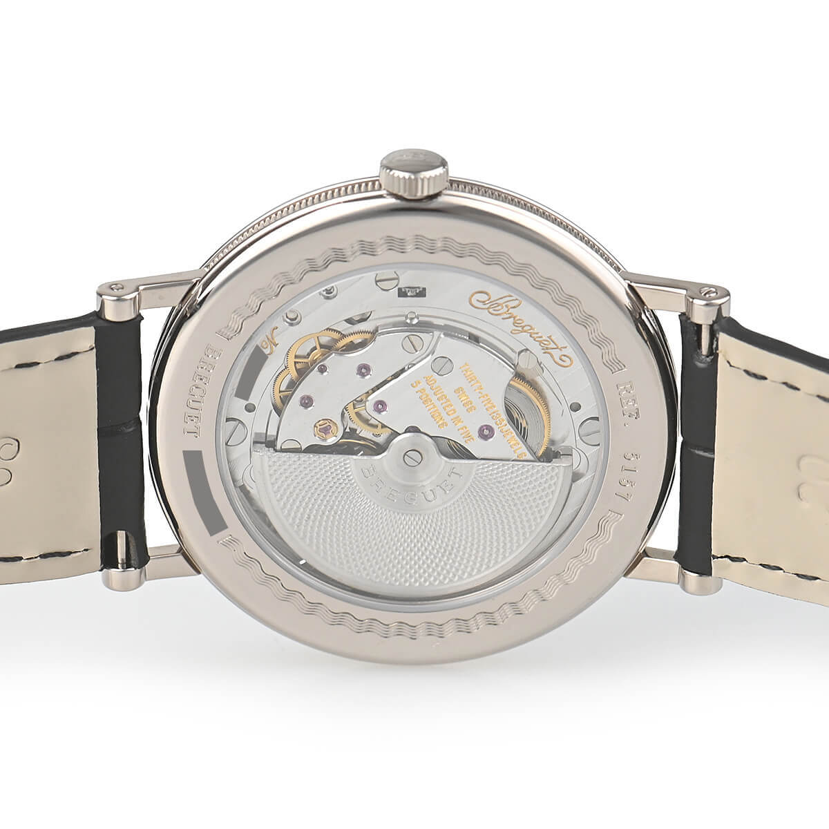 このクラシック 5157も、コインエッジのサイドが特徴的なケース、繊細なギョーシェ装飾を施したシルバー仕上げの文字盤、鮮やかなブルースチールのブレゲ針といった、ブレゲの生み出した意匠の数々が見られます。