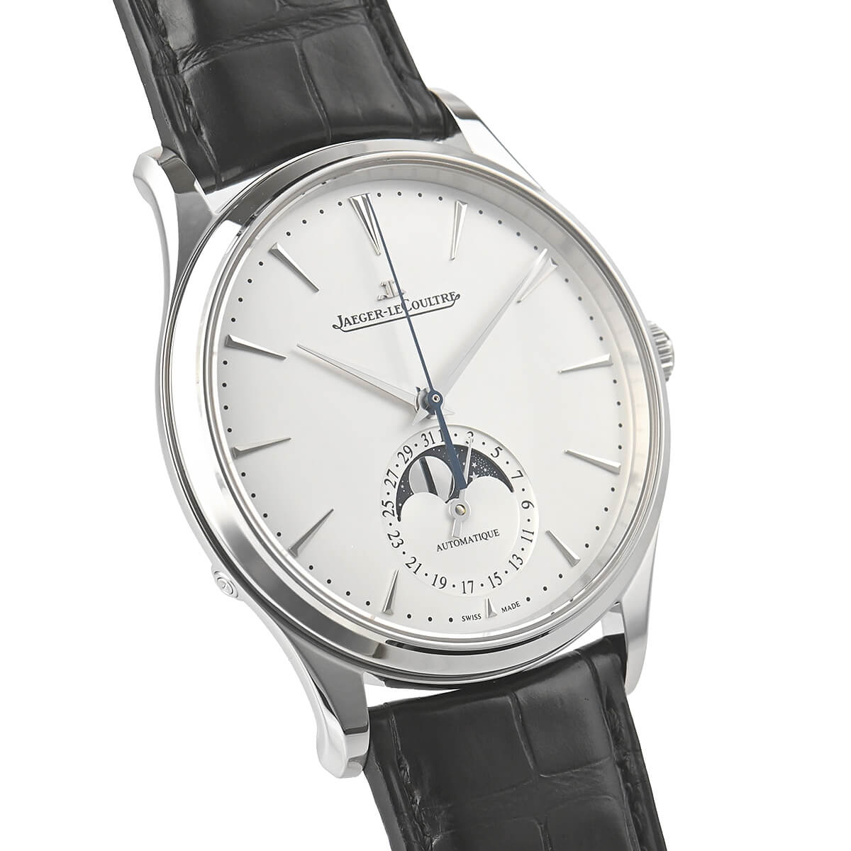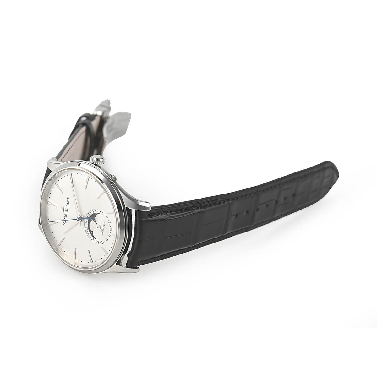 ビジネスシーンでも使いやすいシルバーダイアルの【マスター・ウルトラスリム・ムーン】。ケースサイズを現代風な39mmにする事により、大きすぎず細身の男性でも気兼ねなく着ける事の出来る万能型のモデル。