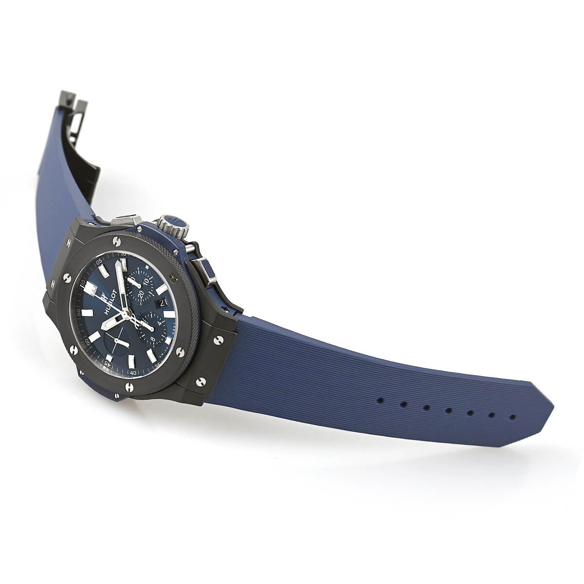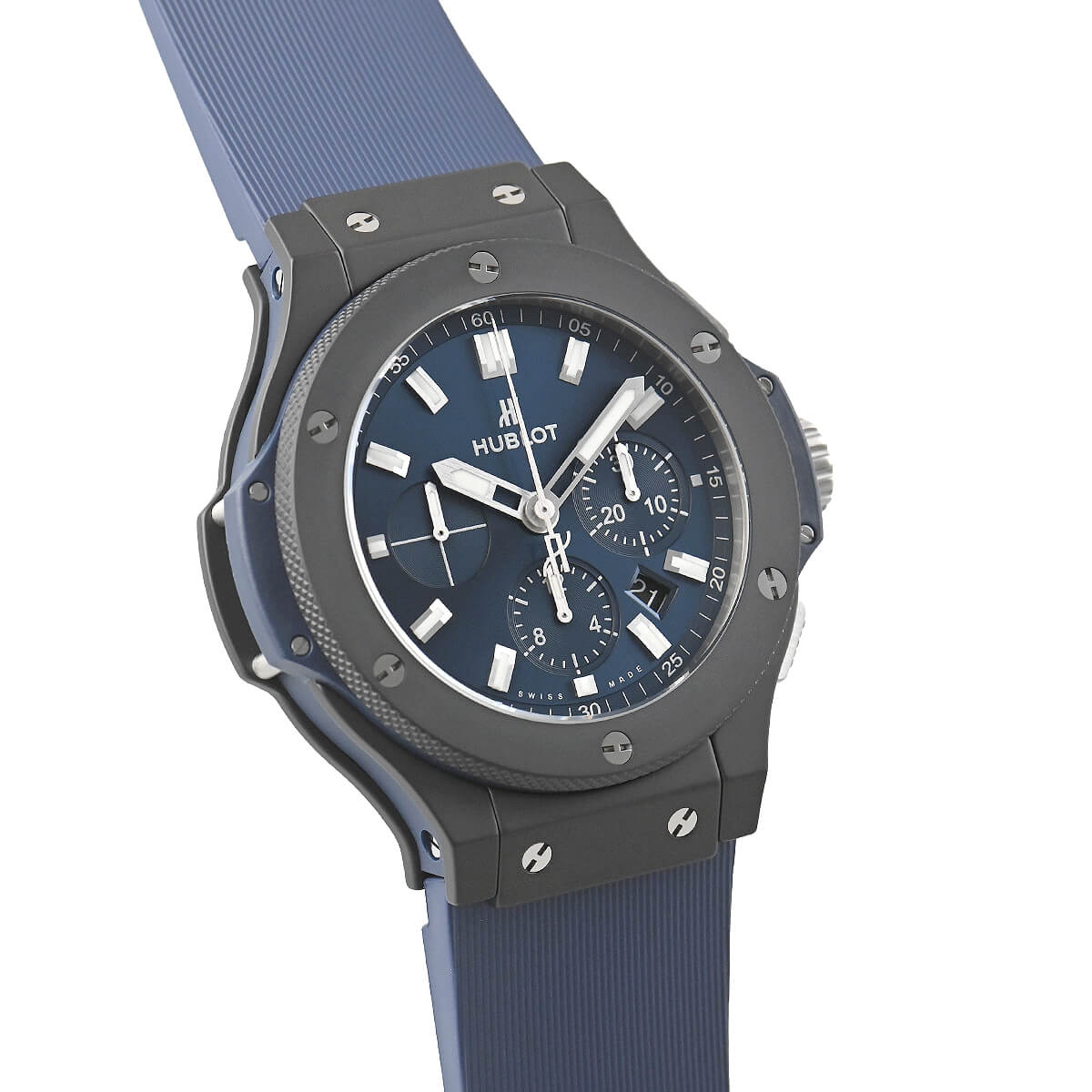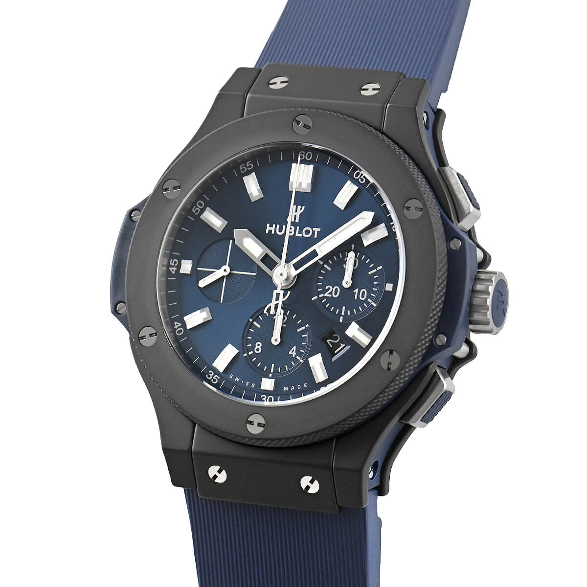 「異なる素材の融合」と「伝統と未来の融合」をコンセプトに製作されるビッグバン。こちらはマイクロブラスト加工を施したブラックセラミック製ケースを採用した「ビッグバン セラミック ブルー」。