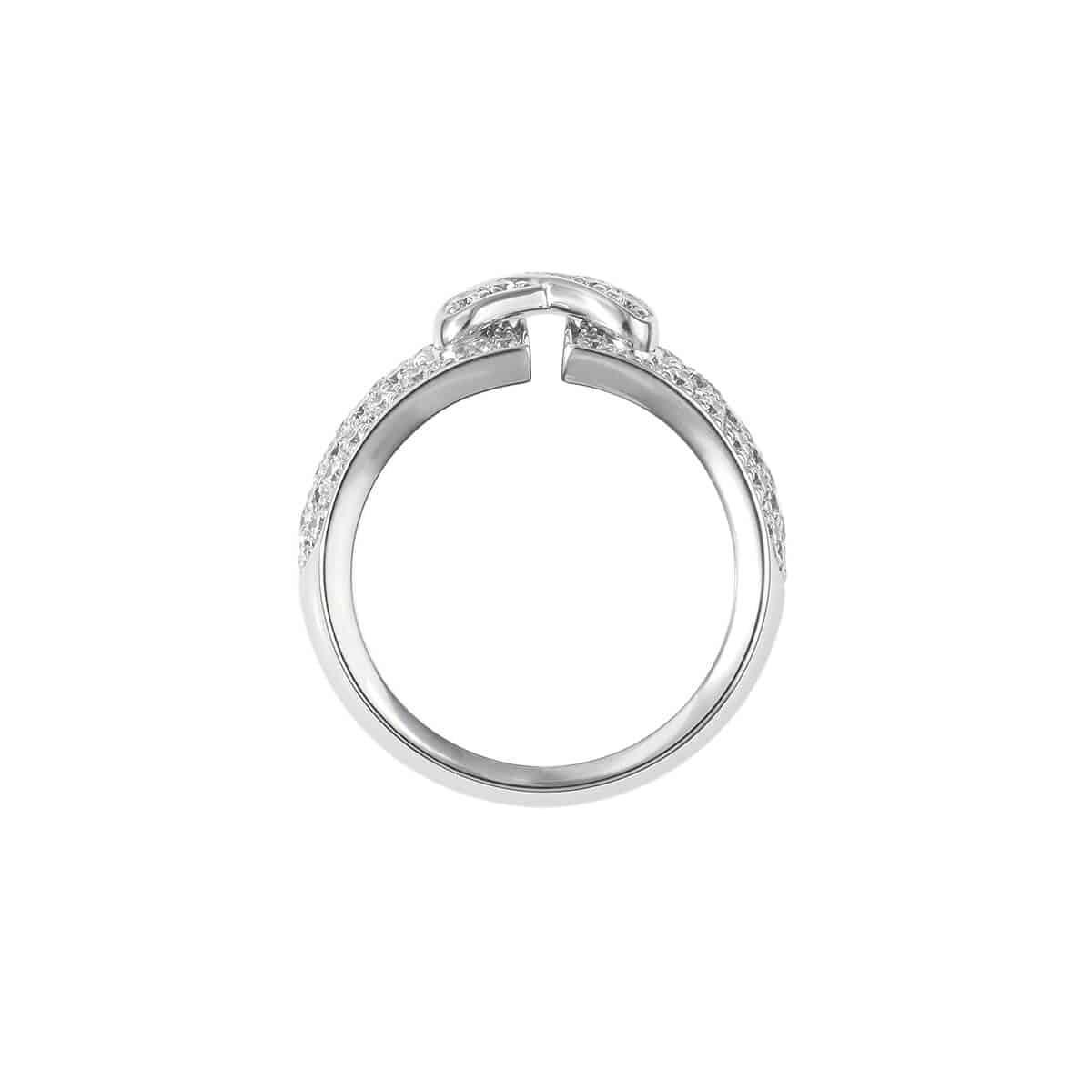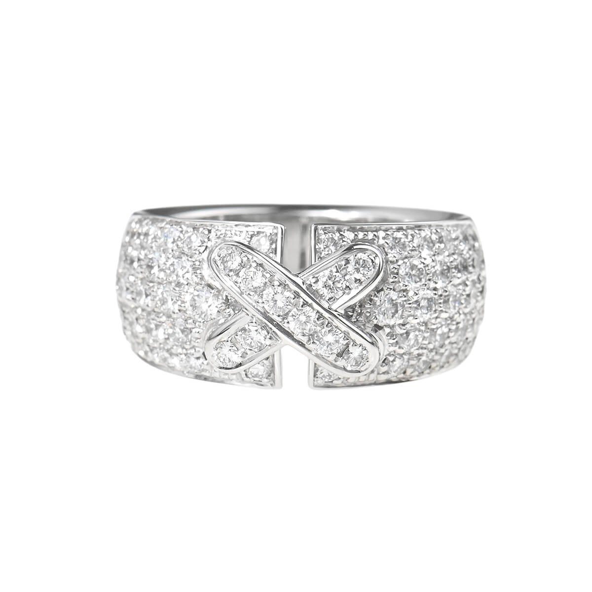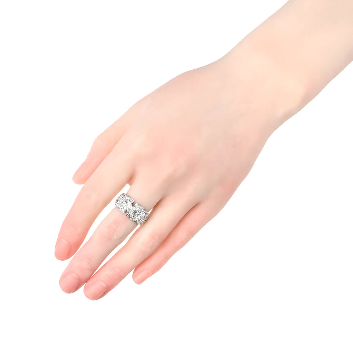 1780年の創業に遡る『CHAUMET(ショーメ)』の歴史と深く結びついた、フランス語で“絆”を意味する「リアン・ドゥ・ショーメ」コレクション。リアンの特徴でもあるクロスモチーフは、17世紀に流行した“ラック・ダムール(愛の結び目)”に由来しており、このロマンチックなモチーフがいろいろな“絆”を表現しています。ボリュームたっぷりのオープンリングをメゾンの永遠のシンボルであるクロスモチーフが繋ぐ、ホワイトゴールド製リング。優美なフォルムにあしらわれたダイヤモンドの美しくプレシャスな輝きが、指先をエレガントな印象へと導きます。艶やかなホワイトゴールドと光り輝くダイヤモンドが美しい永遠の調和を描き、何気ない日常を飾りながら大胆な美しさを添えてくれる、ハイブランドのコレクションジュエリーです。
