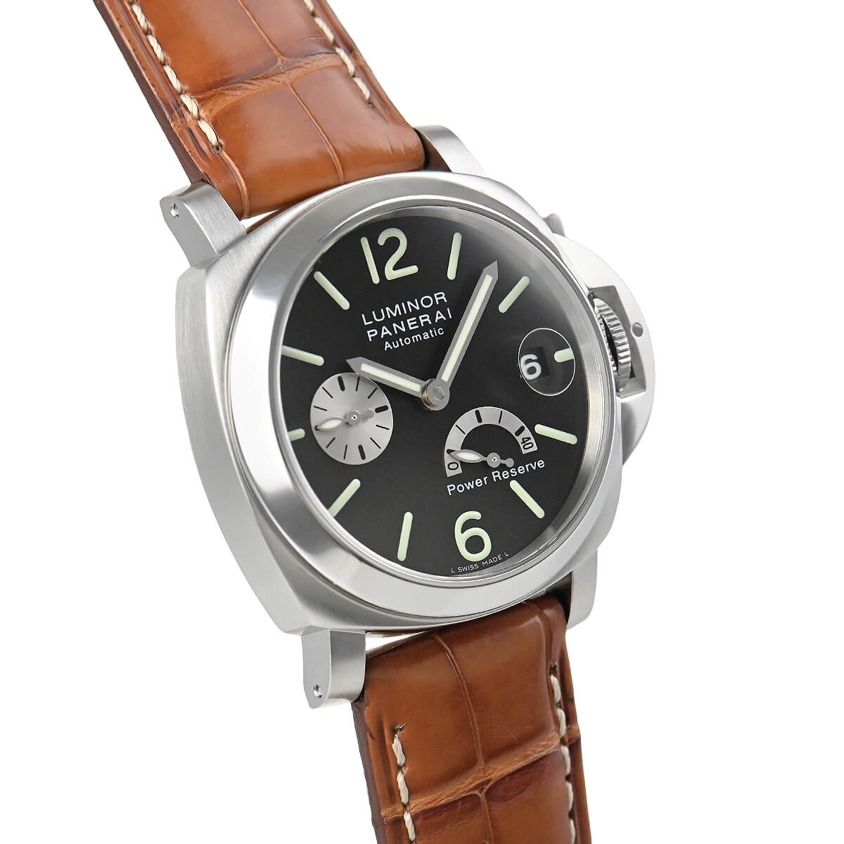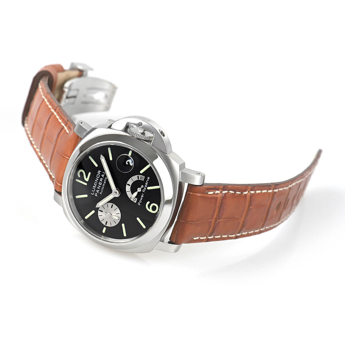 F番“2003年製”【PAM00125】ルミノールパワーリザーブが入荷しました。パネライの中では小振りな40mmケースですが、それでも他のブランドと比較すればケースの厚みもあり、装着時の存在感は抜群です。