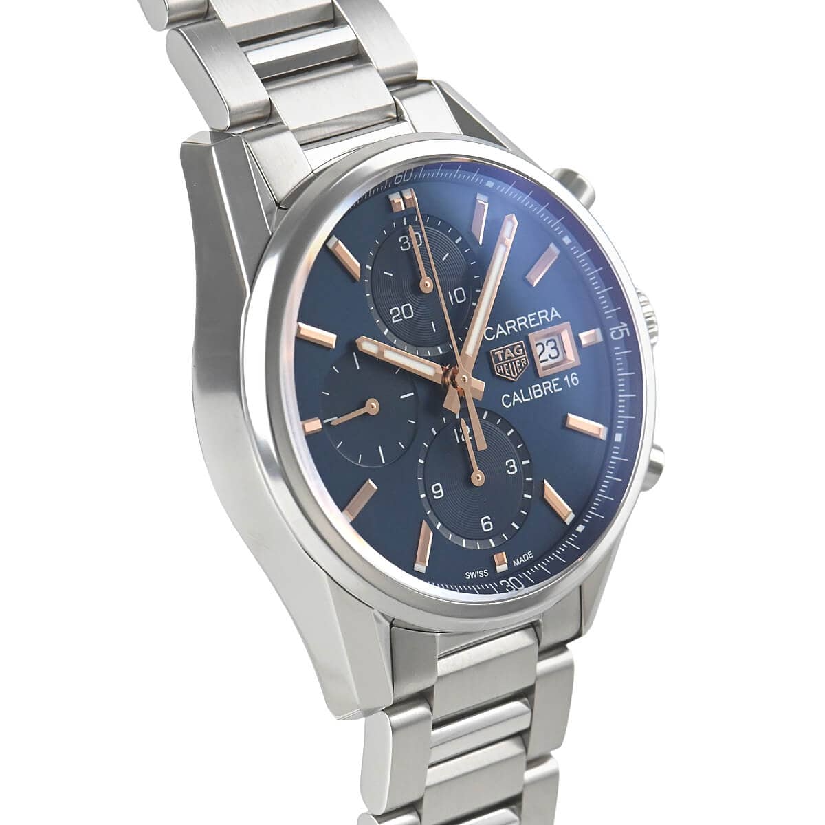 このモデルはあえてタキメーターベゼルを無くしてポリッシュベゼルとすることで、スポーティでカジュアルになりがちだったカレラをスーツスタイルにも合わせやすいようにスタイリッシュなデザインへと変更が加えられております。