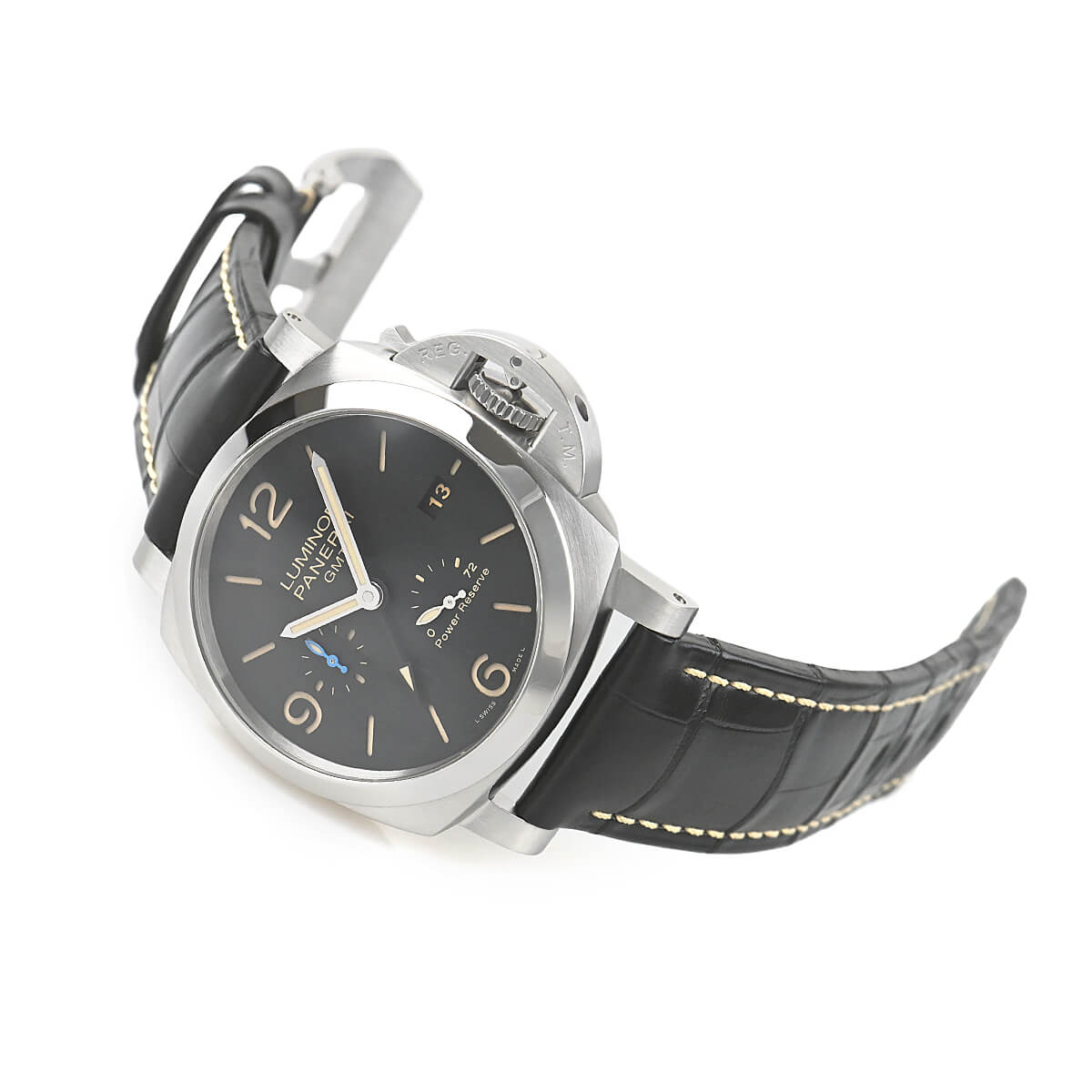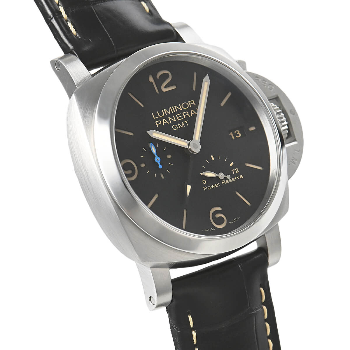 V番“2019年製”【PAM01321】ルミノール1950 3デイズ GMTパワーリザーブが入荷しました。PAM00321の後継モデルでデイト表示やGMT機能に加え、ゼロリセットセコンド機能を備えた自社製キャリバー「P.9012」を搭載。