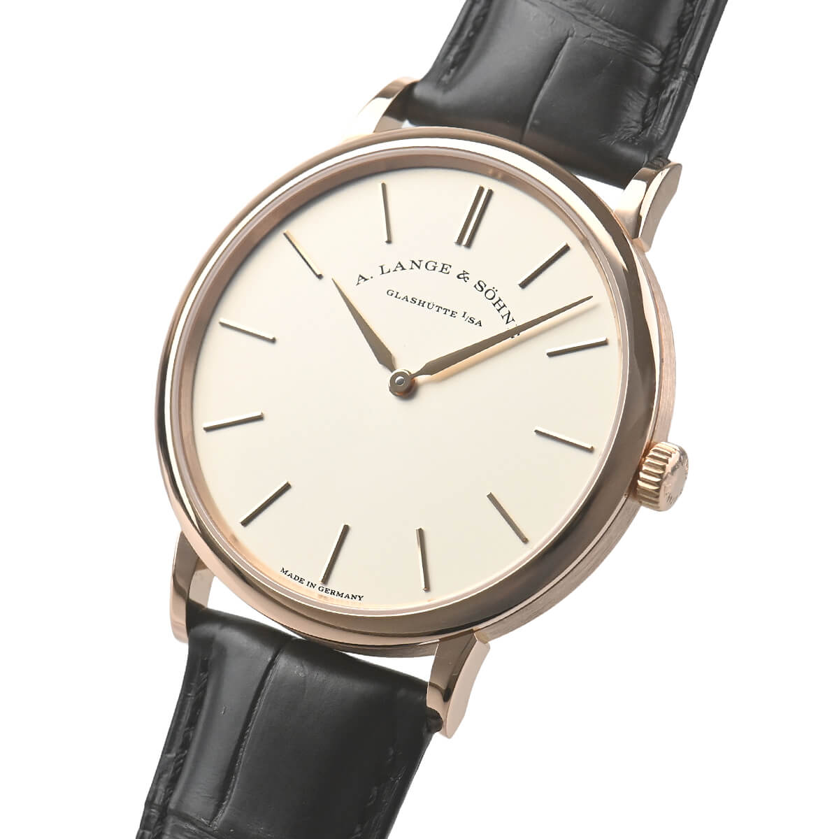 ランゲ&ゾーネのクラシックライン「サクソニア」に加わった極薄モデル「サクソニア・フラッハ」。ケースサイズは直径37.0mmと程よいサイズ感で再設計されたモデルとなります。また、ケースの厚さは僅か5.9mmに抑えられており、ランゲ&ゾーネ史上最も薄いモデルとなっています。