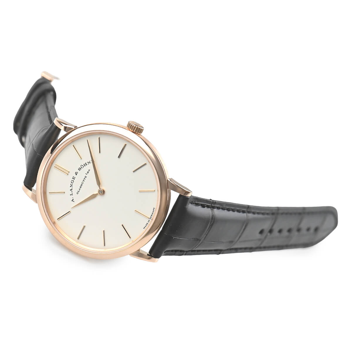 ともすれば武骨な感じを受けがちなランゲ&ゾーネの中で、ちょっとしたスマートさを演出できる一本。シンプルなドレスウォッチをお探しの方にお勧めです。
