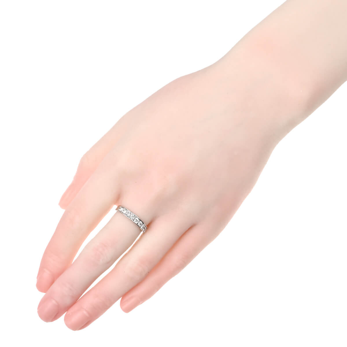 0.54ctのダイヤモンドが輝きのラインを描く、プラチナ製ハーフエタニティリング。繊細なプラチナのプロングでセッティングされたダイヤモンドの上下をレールのように挟んだデザインは引っ掛かりがほとんどなく、デイリー使いにぴったり。オーセンティックなデザインのダイヤモンドリングは、どんなスタイリングにもしっくりなじみ、指先でエレガントなラインを描きます。素材やデザインの異なるリングを数本レイヤードしたり、自分らしいルックを楽しめる、シンプルで洗練されたオーセンティックなデザインのダイヤモンドリングです。