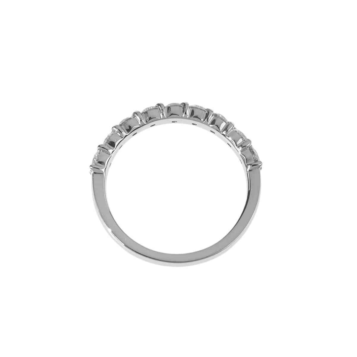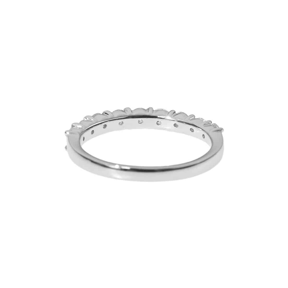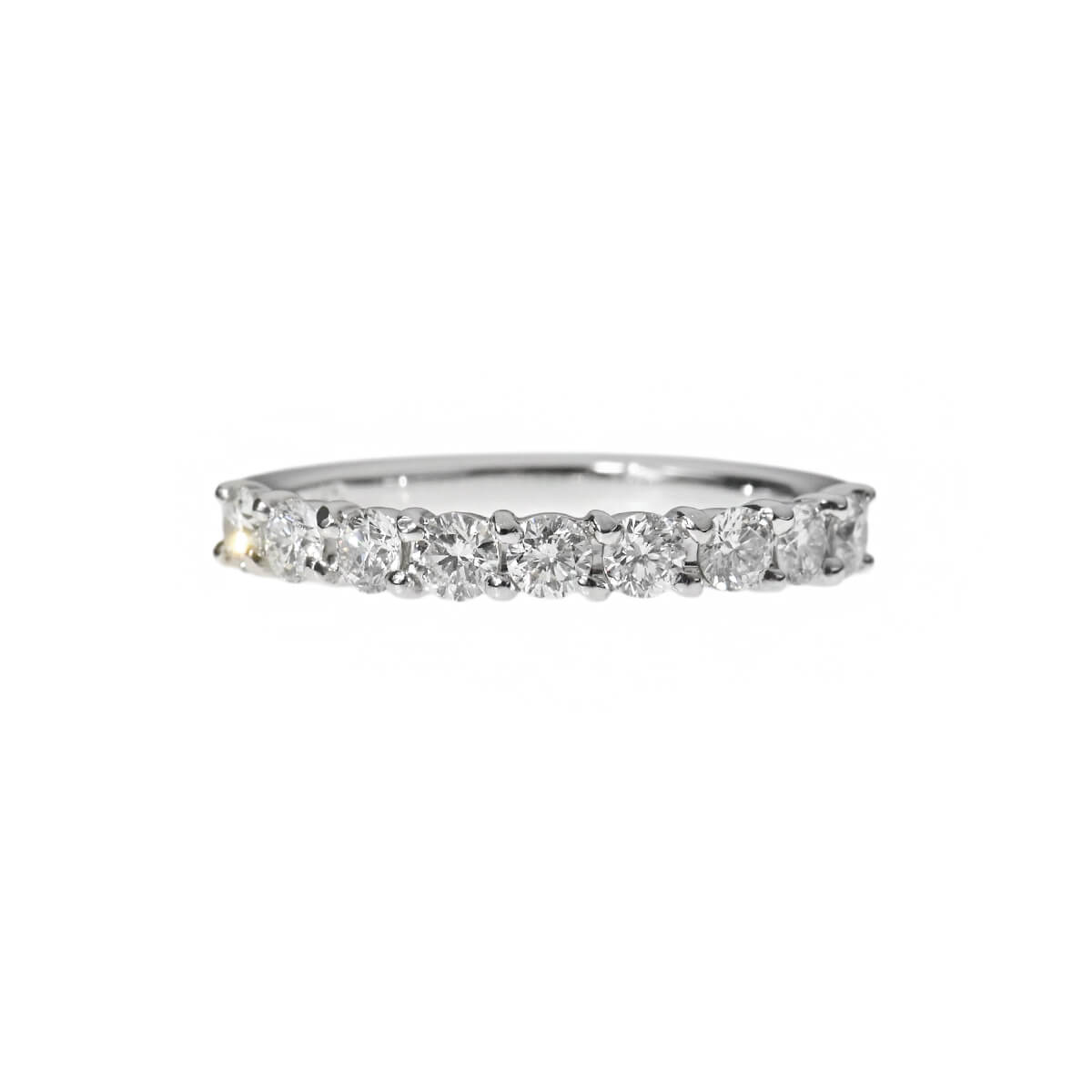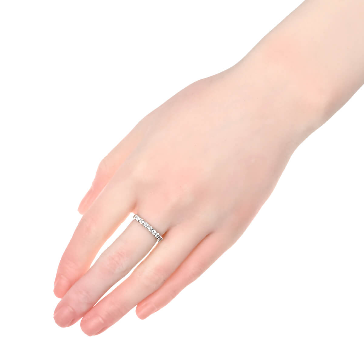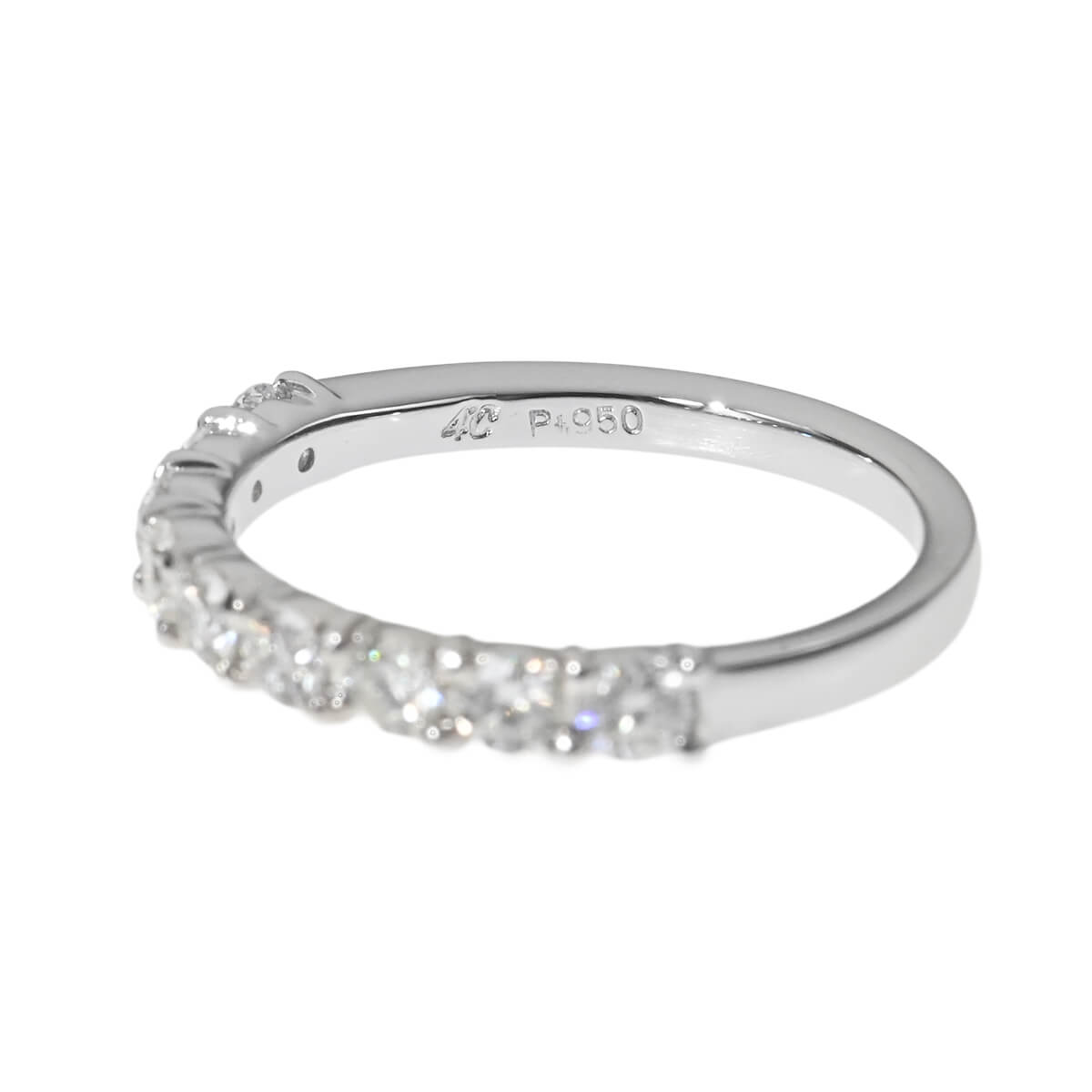 時には繊細な光を放つ雪の結晶のように、また時には大きなうねりとなって大海原へ、そして岩や大地をも削りとる強い結束力さえもある、平凡どころかすこぶる非凡で、自由奔放にその姿を変えていく“水”。そんな“水のようでありたい”という願いを原点に、氷が張った水面の底の温度、唯一魚が生息できるいわば“安息の場”である、きびしい環境にあっての潤いそのものを意味する「4℃」をブランド名に冠し、1972年の創業以来、既存の価値に捉われることなく常に新しさと潤いをもたらす美しいジュエリーをつくり続けているドメスティックジュエリーブランド『4℃(ヨンドシー)』。華奢なプロングでセッティングされたトータル0.585ctのダイヤモンドが七色の輝きで指先を彩り、ダイヤモンドの美しさを際立たせているプラチナ製ハーフエタニティリング。程よい存在感のダイヤモンドラインが美しいハーフエタニティリングは、これひとつでも、レイヤードしても。どんなシーンやスタイリングにもマッチして、指先でさりげなくも美しい存在感を放つ、コストパフォーマンスの高さも魅力の上質なダイヤモンドジュエリーです。