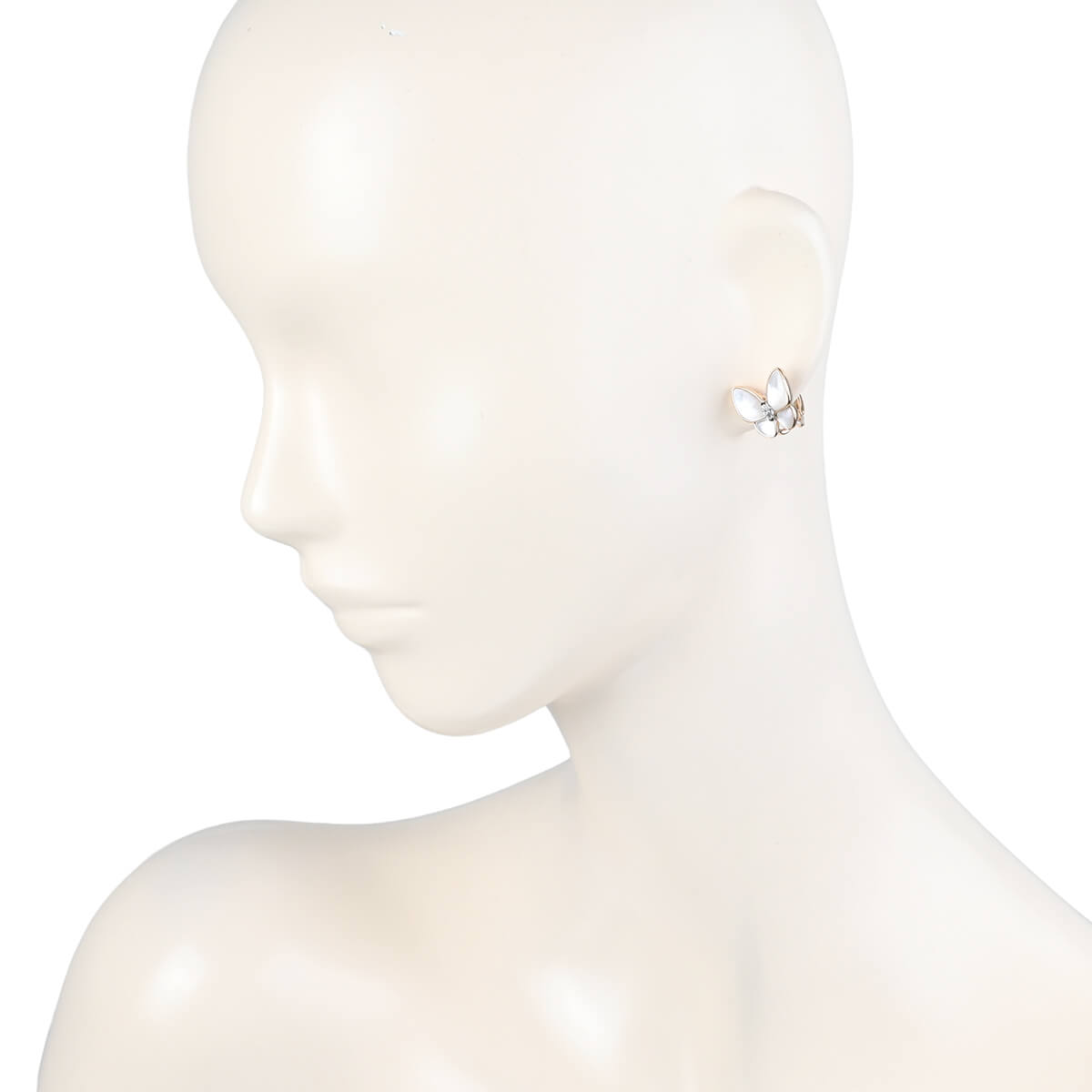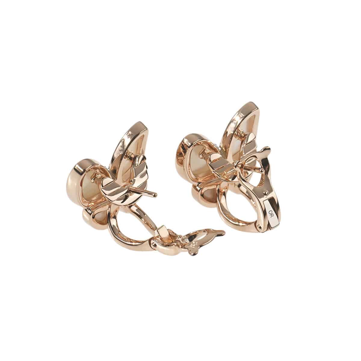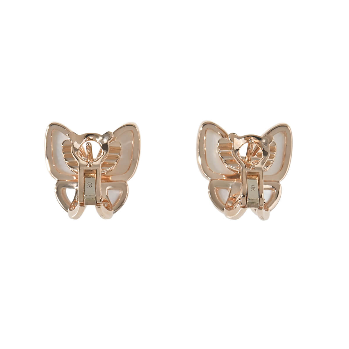 1906年、ヴァンドーム広場にて創業し、モナコ公室御用達ブランドでありグランサンクのひとつでもある、言わずと知れたパリの老舗ハイジュエリーメゾン『VanCleef&Arpels(ヴァンクリーフ&アーペル)』。比類なき宝石をつかい、躍動する自然を表現し、美しさと調和が織りなすタイムレスな世界へと誘うメゾンを象徴する数々の作品は、メゾンの独自性と歴史に着想を得ています。メゾンが最も愛するモチーフのひとつ、“蝶”をテーマに、空を舞う蝶の優雅な美しさを表現した「ドゥ パピヨン」コレクションのローズゴールド製イヤリングピアス。マザーオブパールの羽を広げたパピヨンが、まるで耳元にとまっているかのよう。フェミニンで可憐な色彩が目を惹く、洗練された存在感が身に着けるひとを一層惹きたてる人気のコレクションジュエリーです。