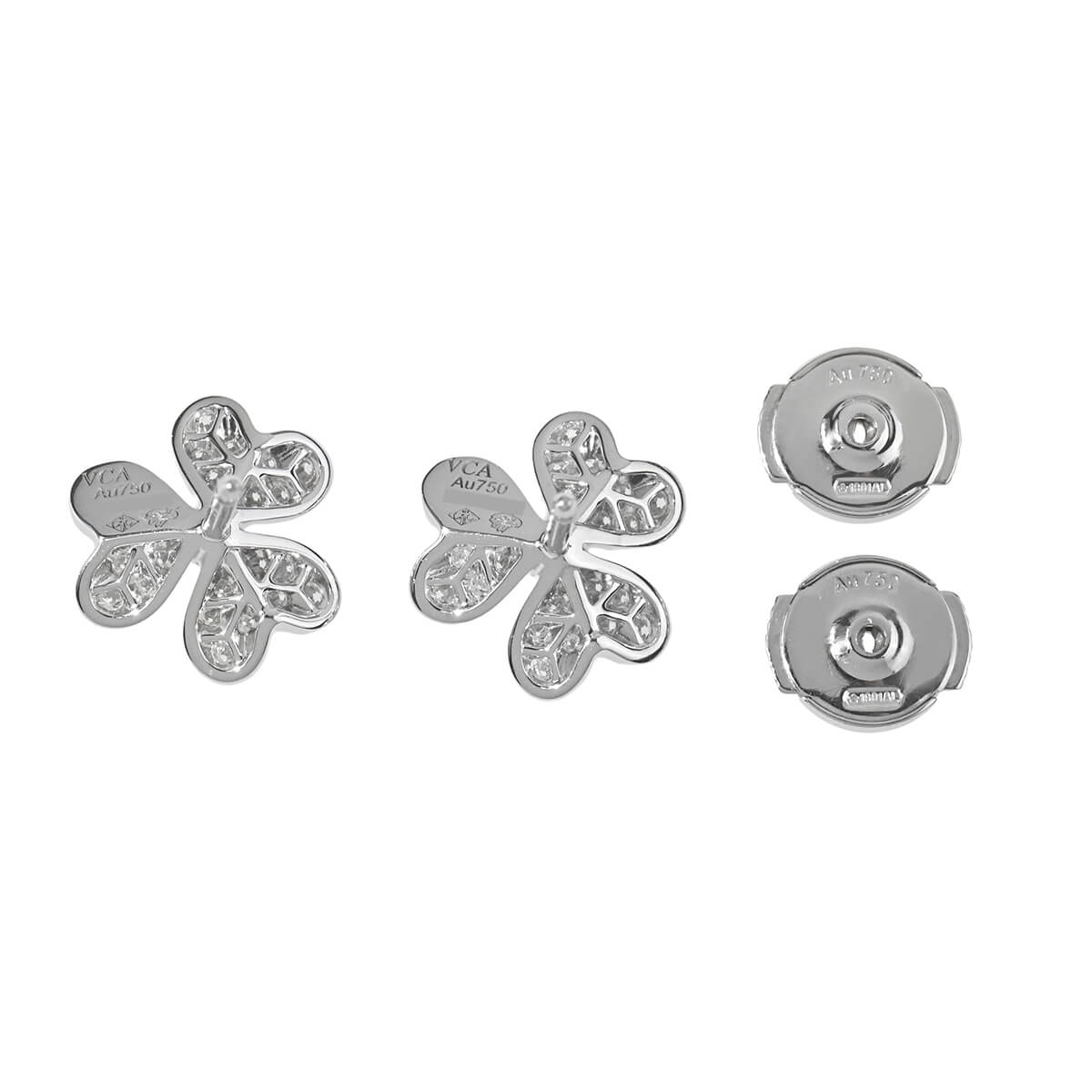 そよ風の中で花々が踊るように、グラフィカルに、軽やかに輝く『VanCleef&Arpels(ヴァンクリーフ&アーペル)』の「フリヴォル」コレクション。時には写実的に、時には抽象的に、貴石の組み合わせと立体感のあるデザインが、メゾンの独創的なサヴォアフェールを映し出し、絶え間なく再生を繰り返す花々がいつも新たな魅力を生み出す「フローラ」コレクションのひとつであり、メゾンのファインジュエリーを象徴するモチーフのひとつです。心安らぐ愛らしい自然の形を詩的に表現したグラフィカルなハート型の花びらが愛らしい、ミニサイズの「フリヴォル」フラワーをひとつずつあしらった、ホワイトゴールド製ピアス。花びらすべてにセッティングされたパヴェダイヤモンドと、お花の真ん中にあしらわれたダイヤモンドの煌めきが、まばゆく輝くお花を咲かせています。フェミニンでエレガントに咲き誇る、可憐なお花の存在感は格別です。