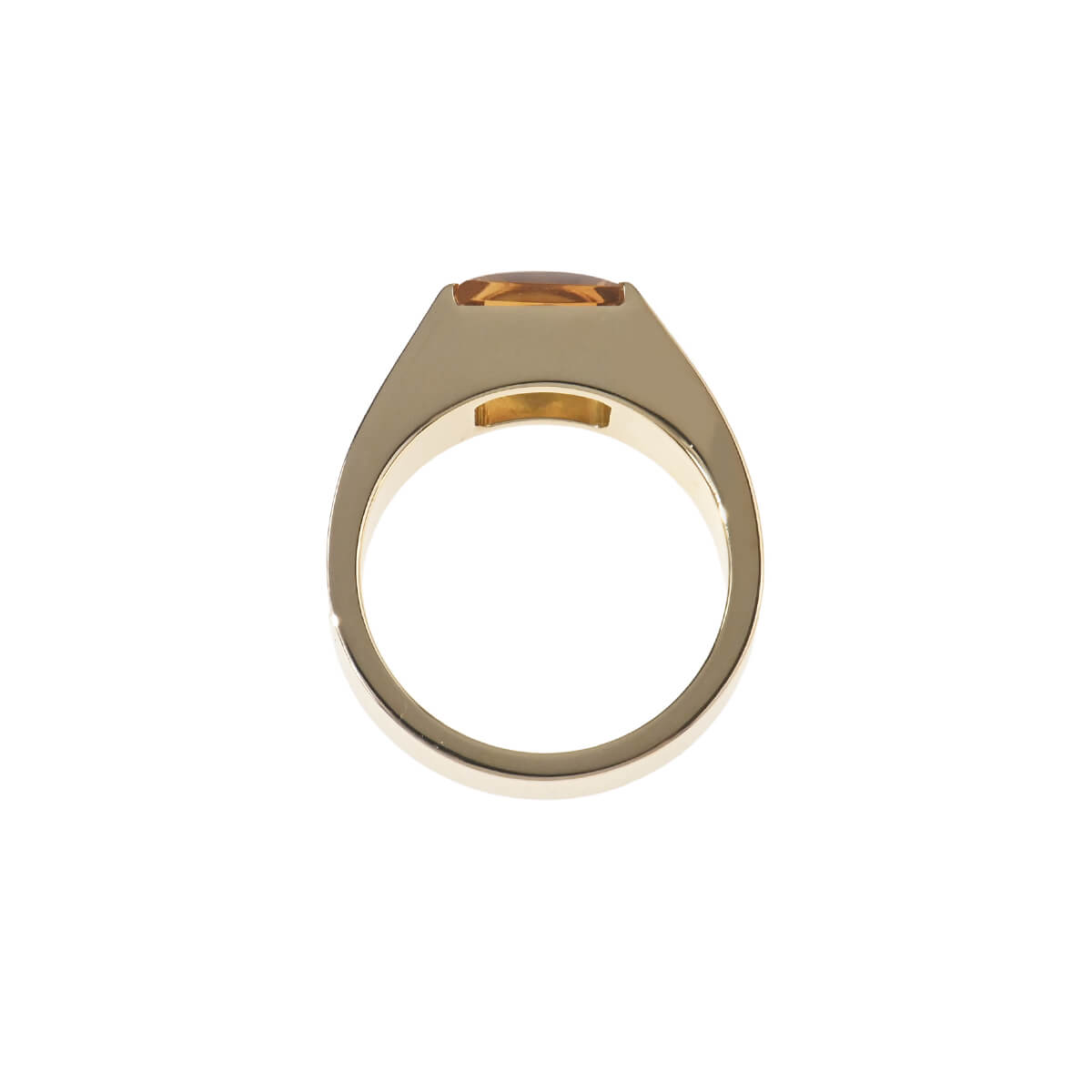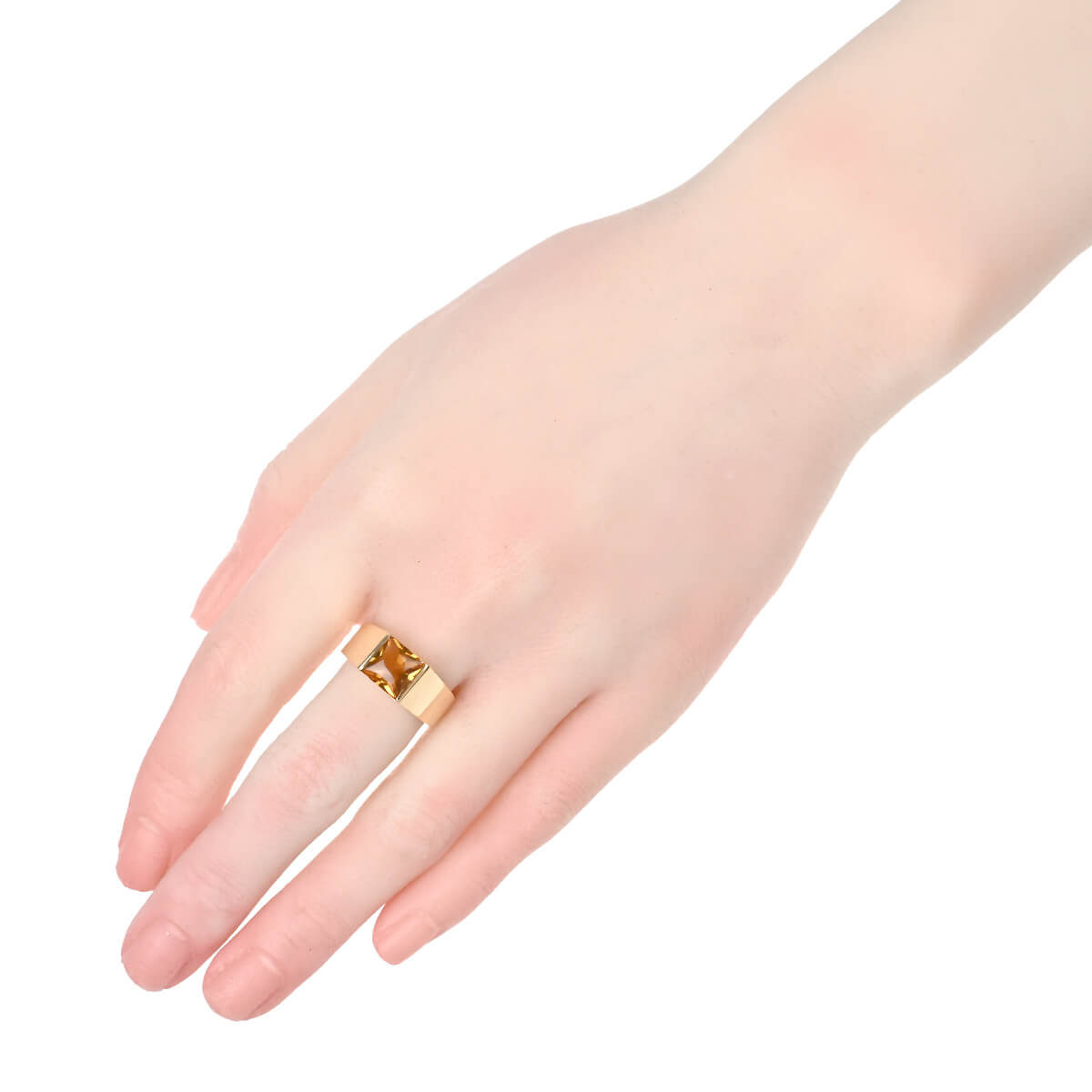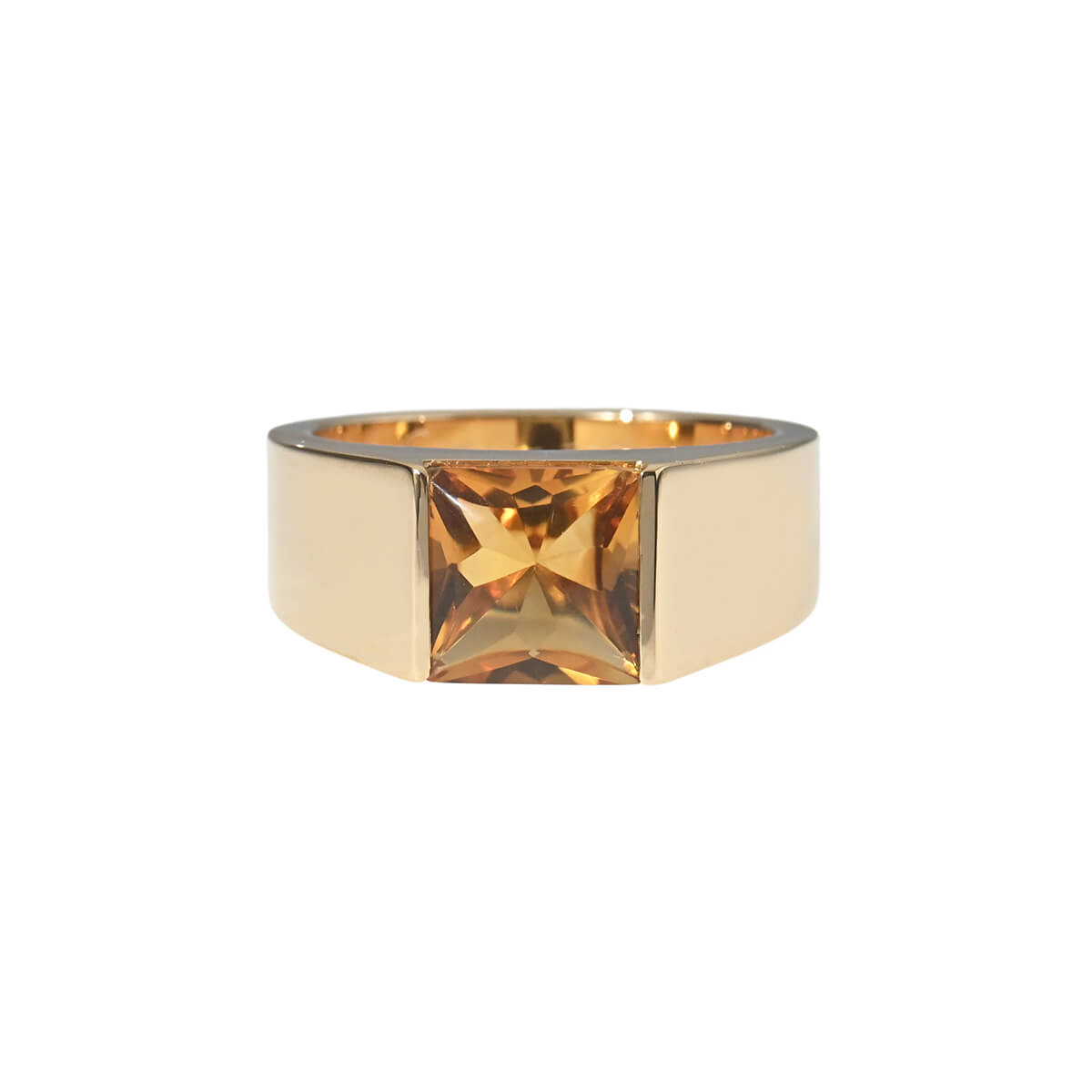 1917年、戦車をモチーフにして生まれた『Cartier(カルティエ)』「タンク」コレクション。アール・デコの先駆けとして一世を風靡し、現在に至るまで数々のファッションアイコンたちに愛好されているコレクションです。タンクコレクションならではの洗練されたスクエアフォルムが美しい、バフトップシェイプのシトリンがあしらわれた、「タンク」コレクションのイエローゴールド製リングは、指先でカルティエらしいエレガントな品格を放ちます。エレガントなフォルムと艶やかに磨かれたマテリアル、そしてシトリンの美しく透明感のあるクリアな輝きがあいまって、手もとを華やかに彩るリング。爪が出ないように留められているストーンはひっかかりもなく、デイリーユースにもぴったりですね。
