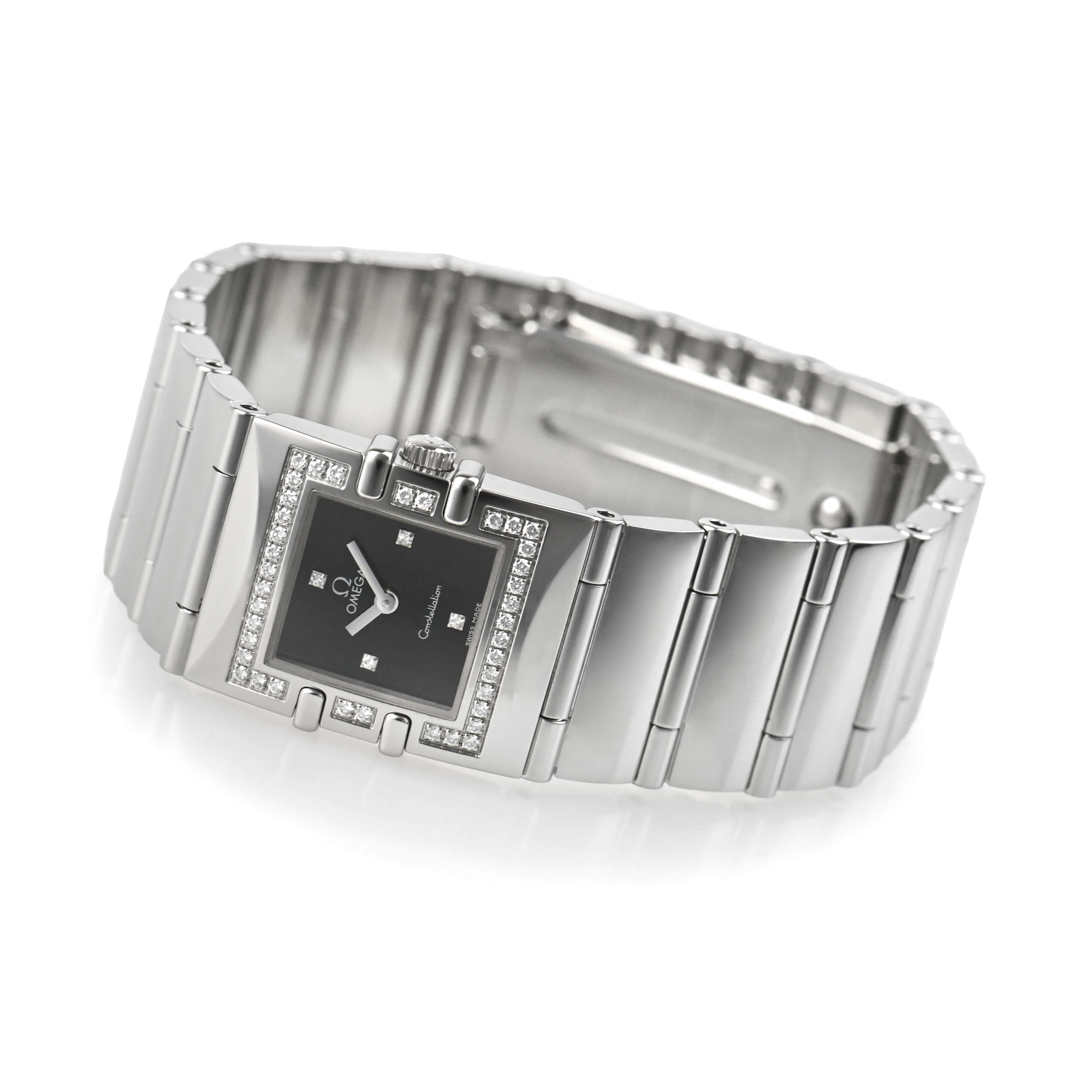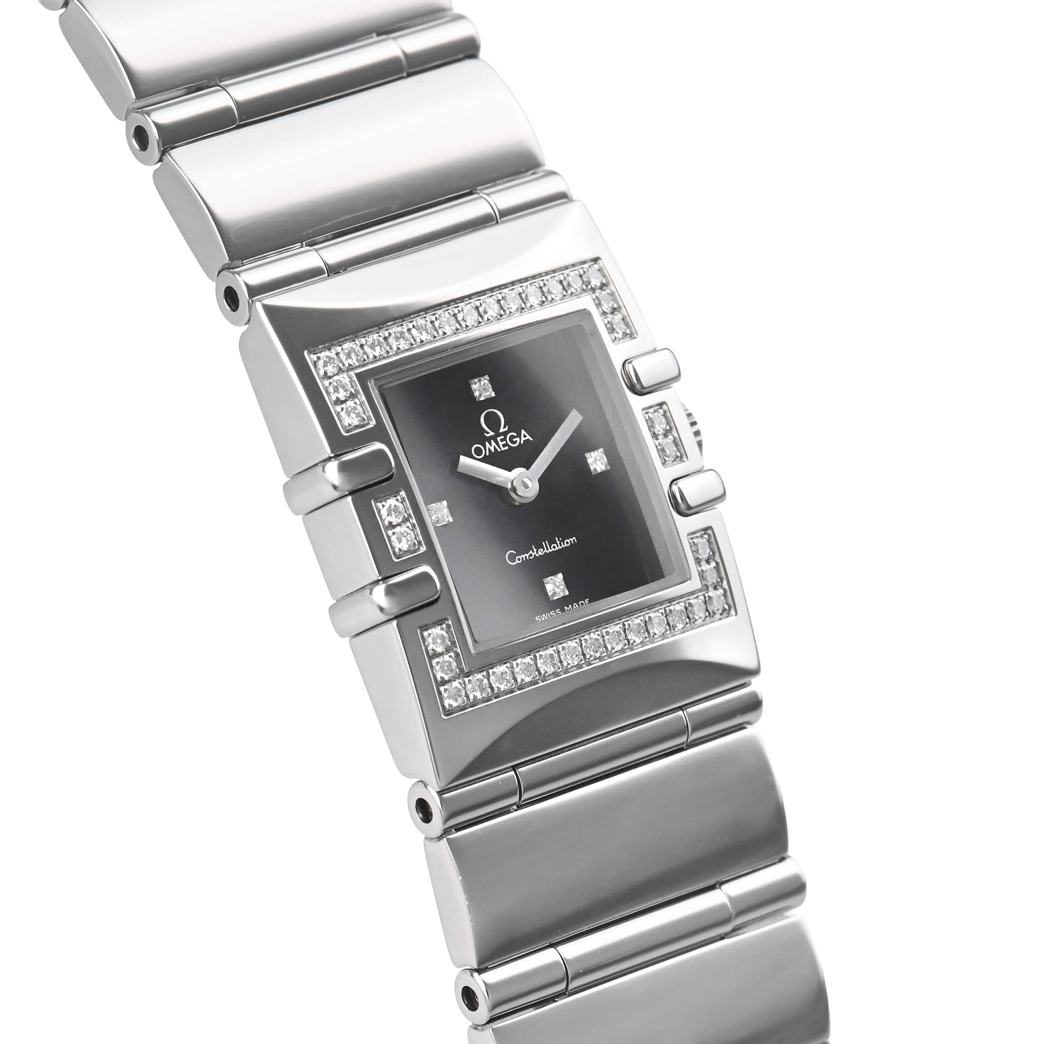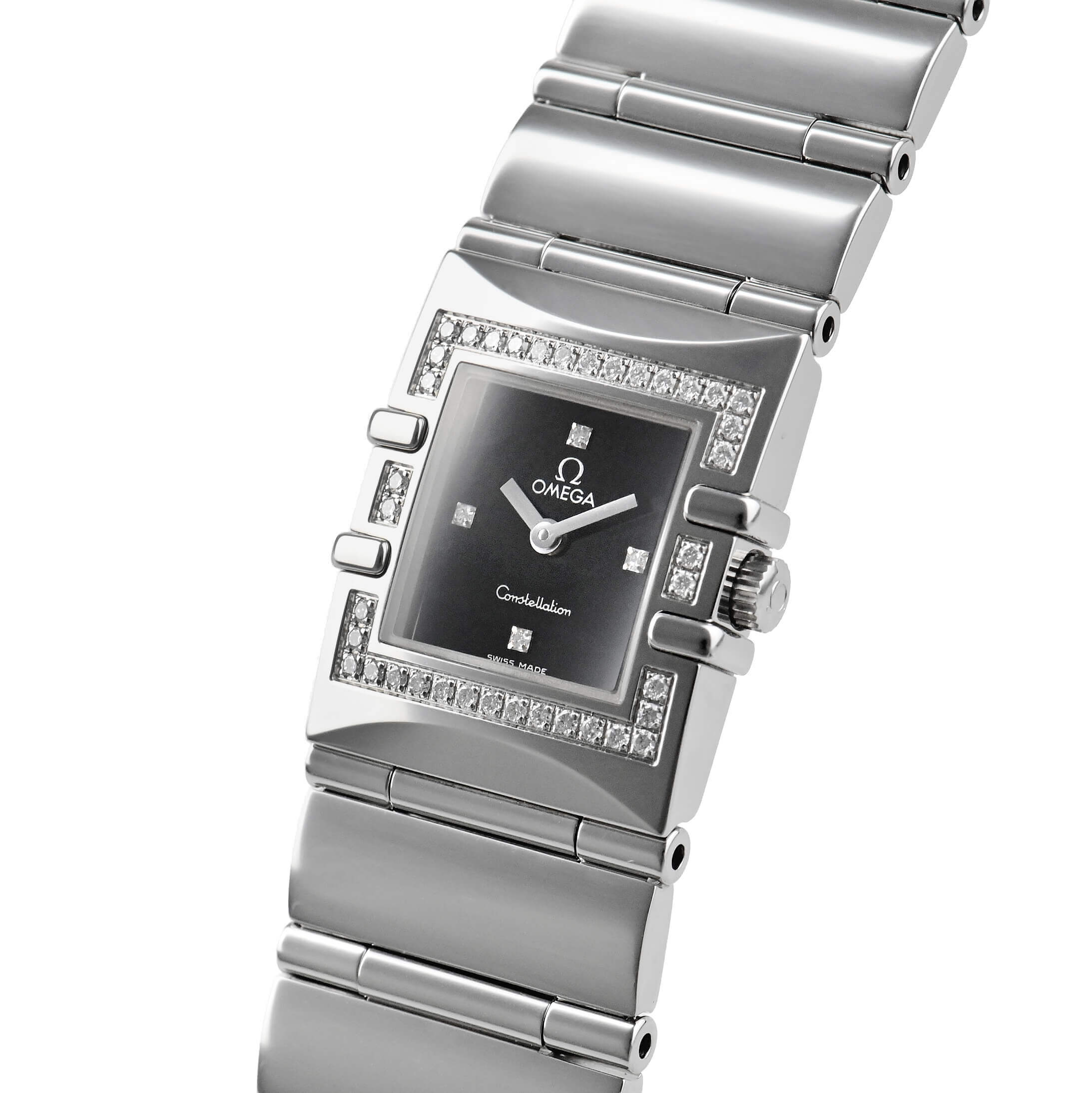 オメガのクラシックラインであるコンステレーションのスクエアケース「クアドラ」。ケースはブレスと一体になるようにデザインされており、ダイヤをあしらったベゼルが上品さを演出しアクセサリーのようにお使いいただけるのではないでしょうか。