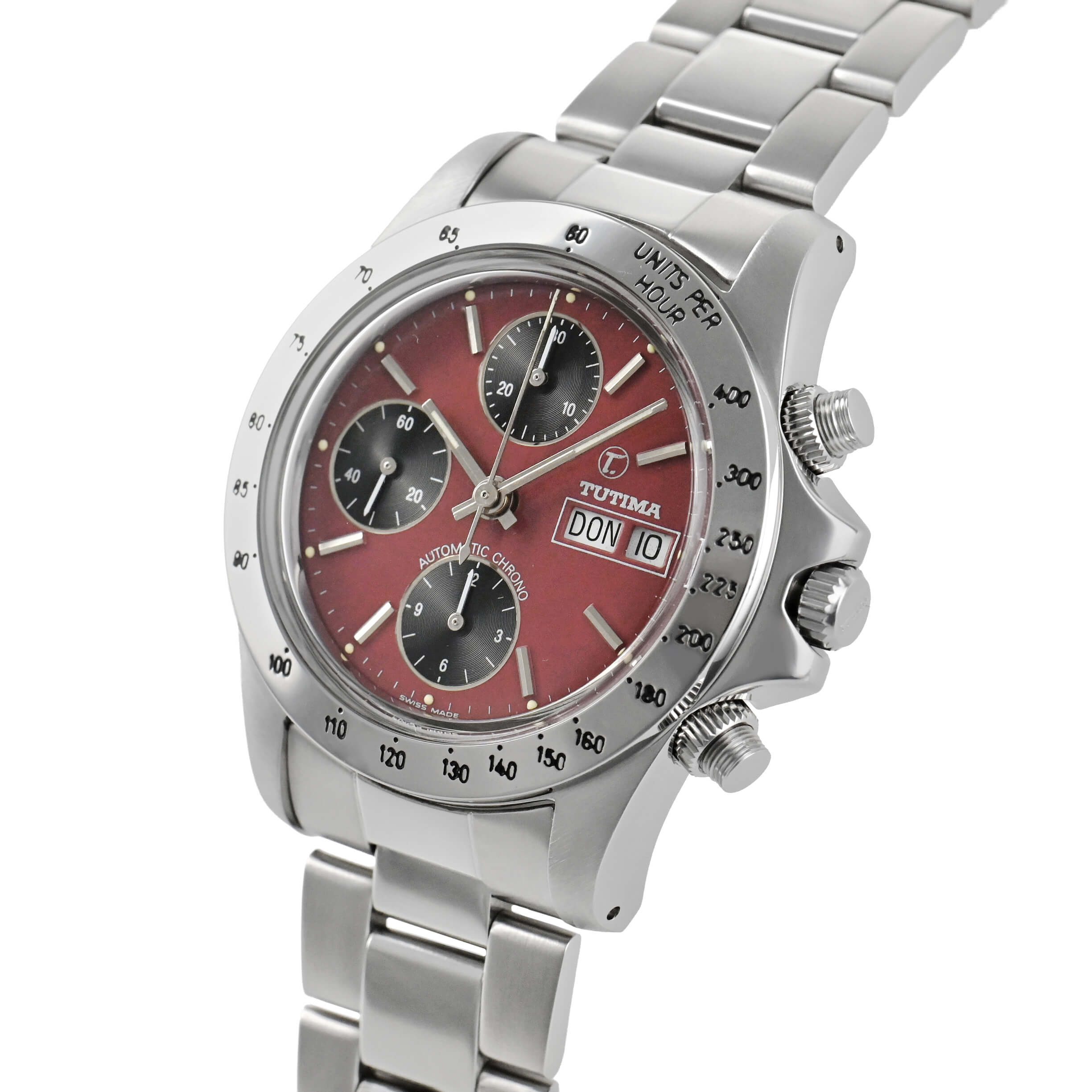 かつてのチュチマの人気モデル「793」。バルジュー7750を搭載、ねじ込みリューズにプラ風防と絶妙のバランスです。