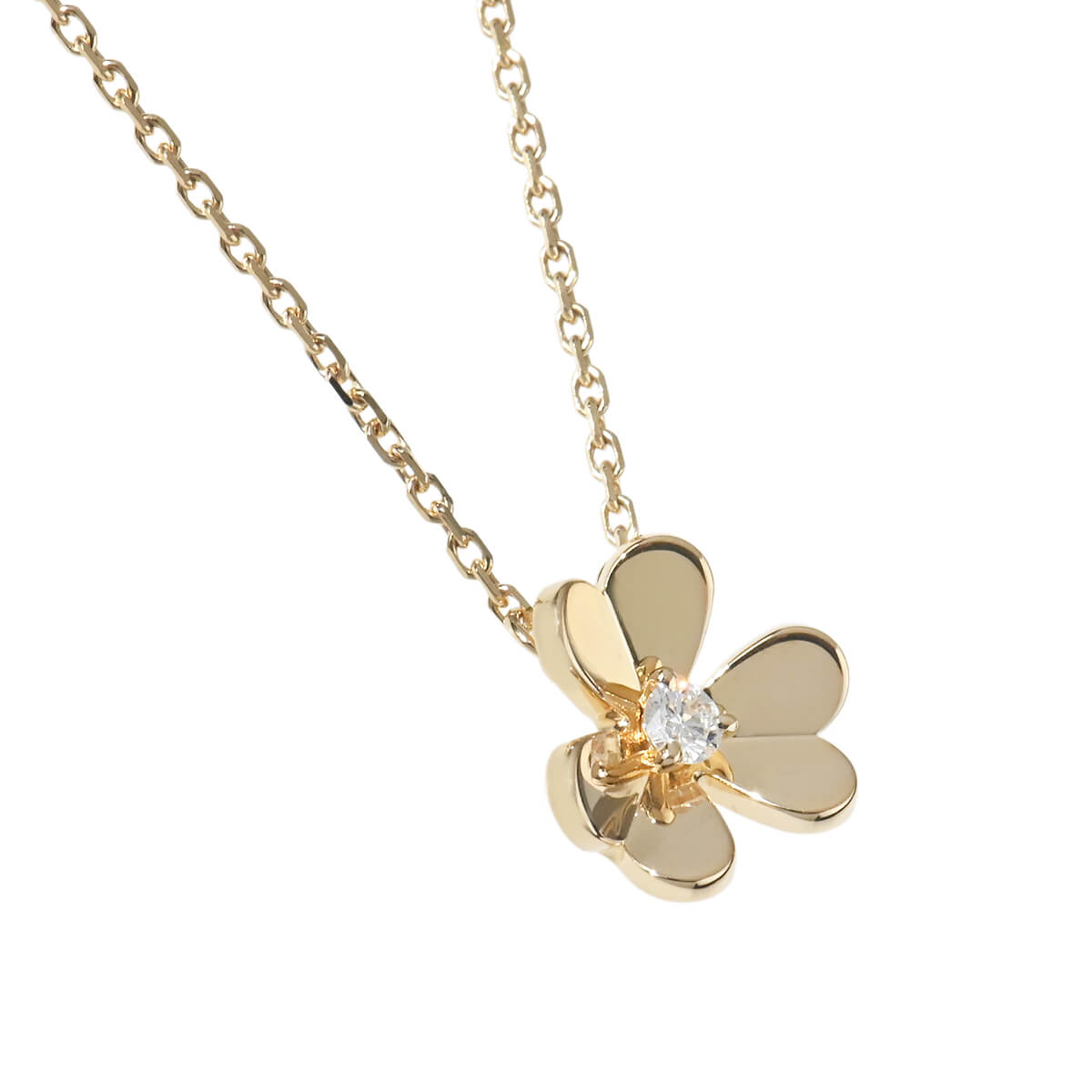 そよ風の中で花々が踊るように、グラフィカルに、軽やかに輝く『VanCleef&Arpels(ヴァンクリーフ&アーペル)』の「フリヴォル」コレクション。心安らぐ愛らしい自然の形を詩的に表現したグラフィカルなハート型の花びらが愛らしい、ミニサイズの「フリヴォル」フラワーがひとつあしらわれた、イエローゴールド製ペンダントネックレスです。フリヴォルフラワーの花びら一枚一枚をメゾンの研磨職人が特別な技法で丁寧に磨き上げ、真ん中にあしらわれたダイヤモンドの煌めきとあいまって、まるで鏡のようにまばゆく輝くお花を咲かせています。絶え間なく再生を繰り返す花々が、いつも新たな魅力を生み出す、ヴァンクリーフの“フローラ”コレクション。格別の存在感を放ちながら咲き誇る「フリヴォル」フラワーが、デコルテをフェミニンでエレガントに彩ります。
