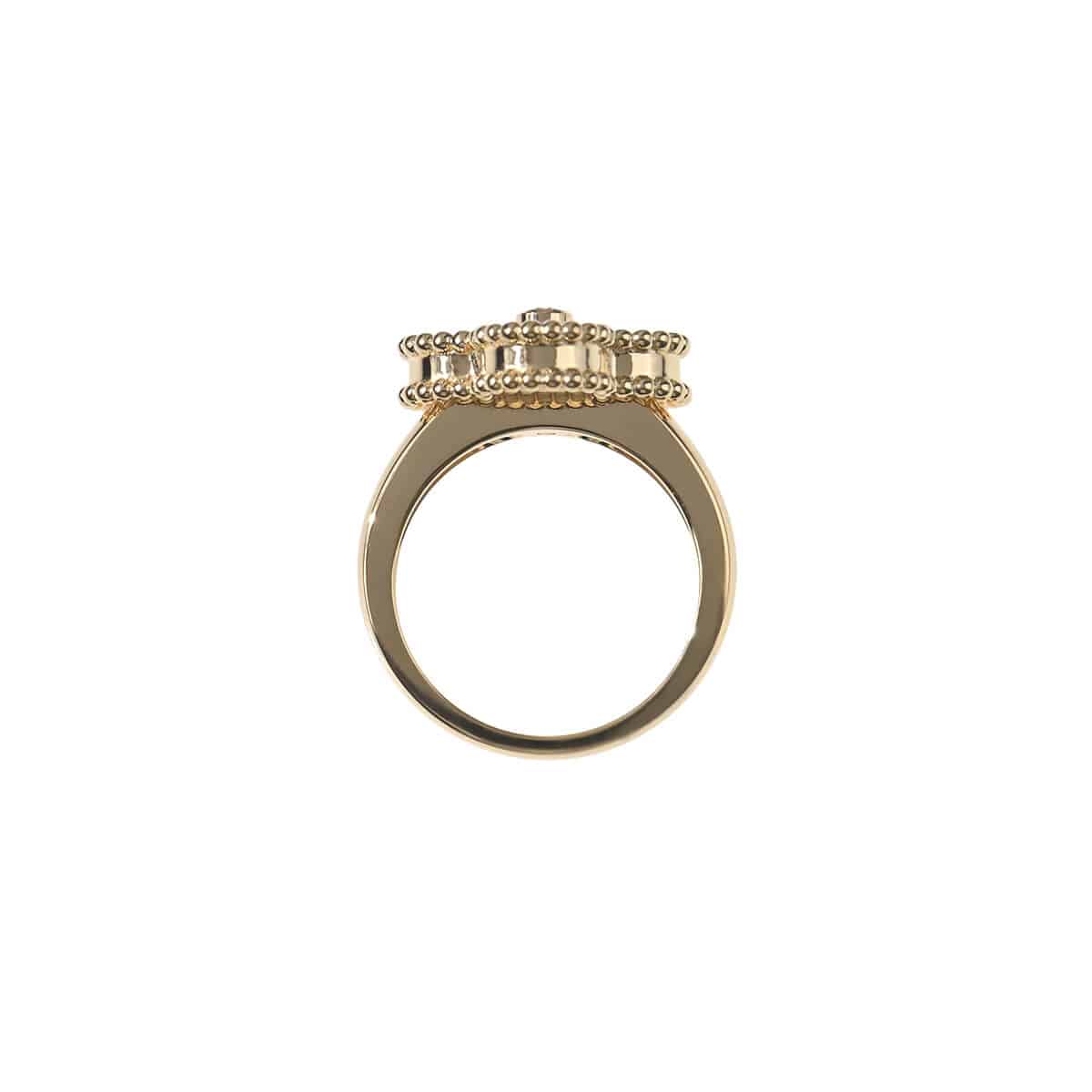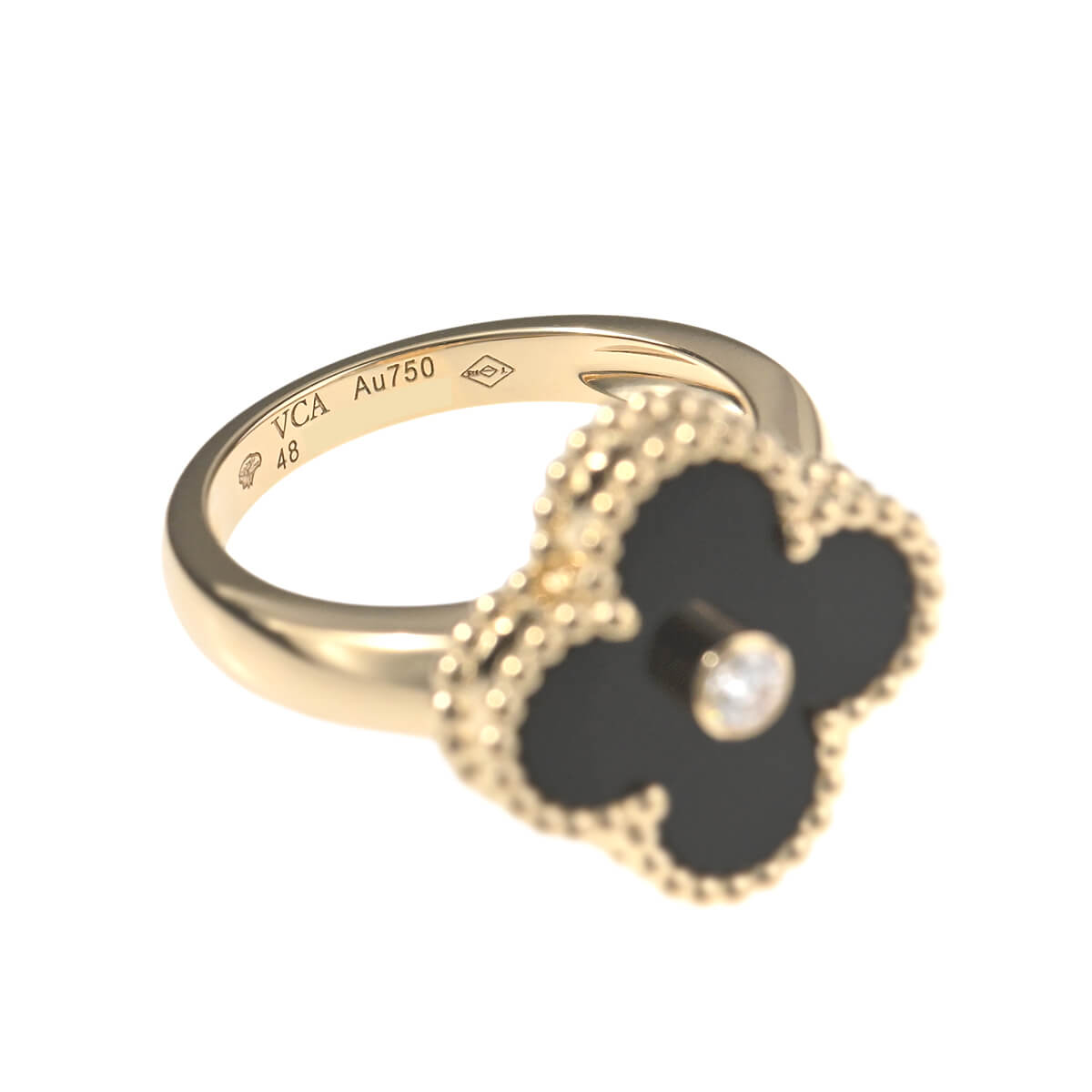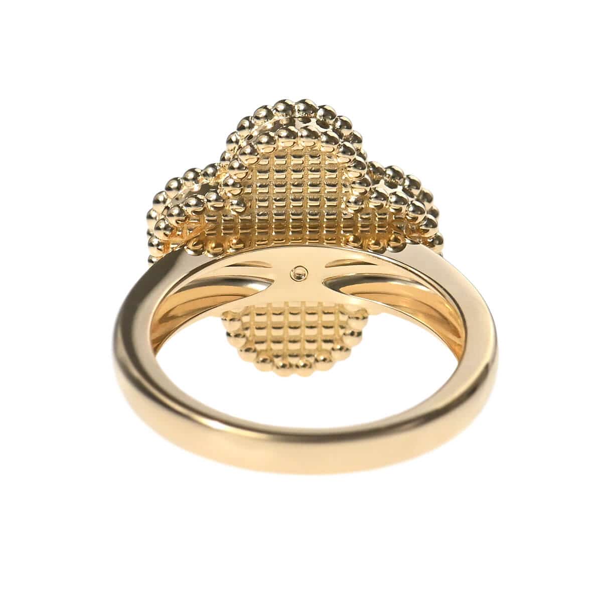 1968年に初めて誕生した幸運のシンボル「アルハンブラ」の特徴を受け継ぎ、『VanCleef&Arpels(ヴァンクリーフ&アーペル)』ならではの独創性と時を超えるエレガンスを湛える「ヴィンテージアルハンブラ」コレクションは、エレガントで清楚、控えめでありながら洗練された、メゾンを代表するアイコン。クールな印象の漆黒のオニキスと愛らしいモチーフ、そして周りを囲む可憐なゴールドビーズの掛け合わせが、“極上の甘さ”を生んでいるイエローゴールド製「ヴィンテージアルハンブラ」リングです。たくさんつけてもしつこくなく、むしろ“素敵”にまとまる、不思議な個性をもつアルハンブラはコレクションで揃えていって、バリエーションを魅せるのも。ひとめでそれとわかるラッキーチャームを、どのタイミングで、どのカラーで迎えるかを考えるのも楽しい、エレガントに映えるハッピーな魅力にあふれたコレクションジュエリーです。