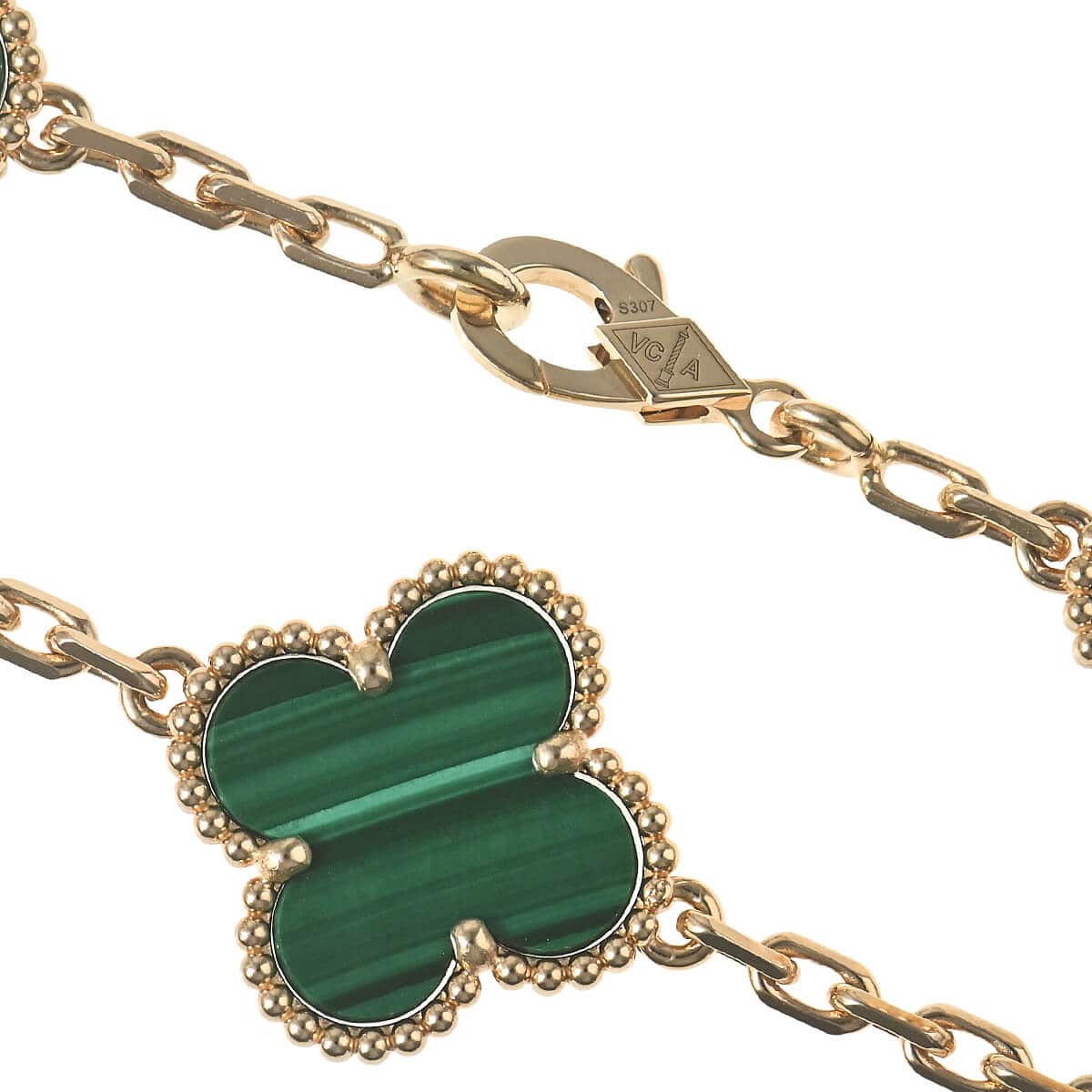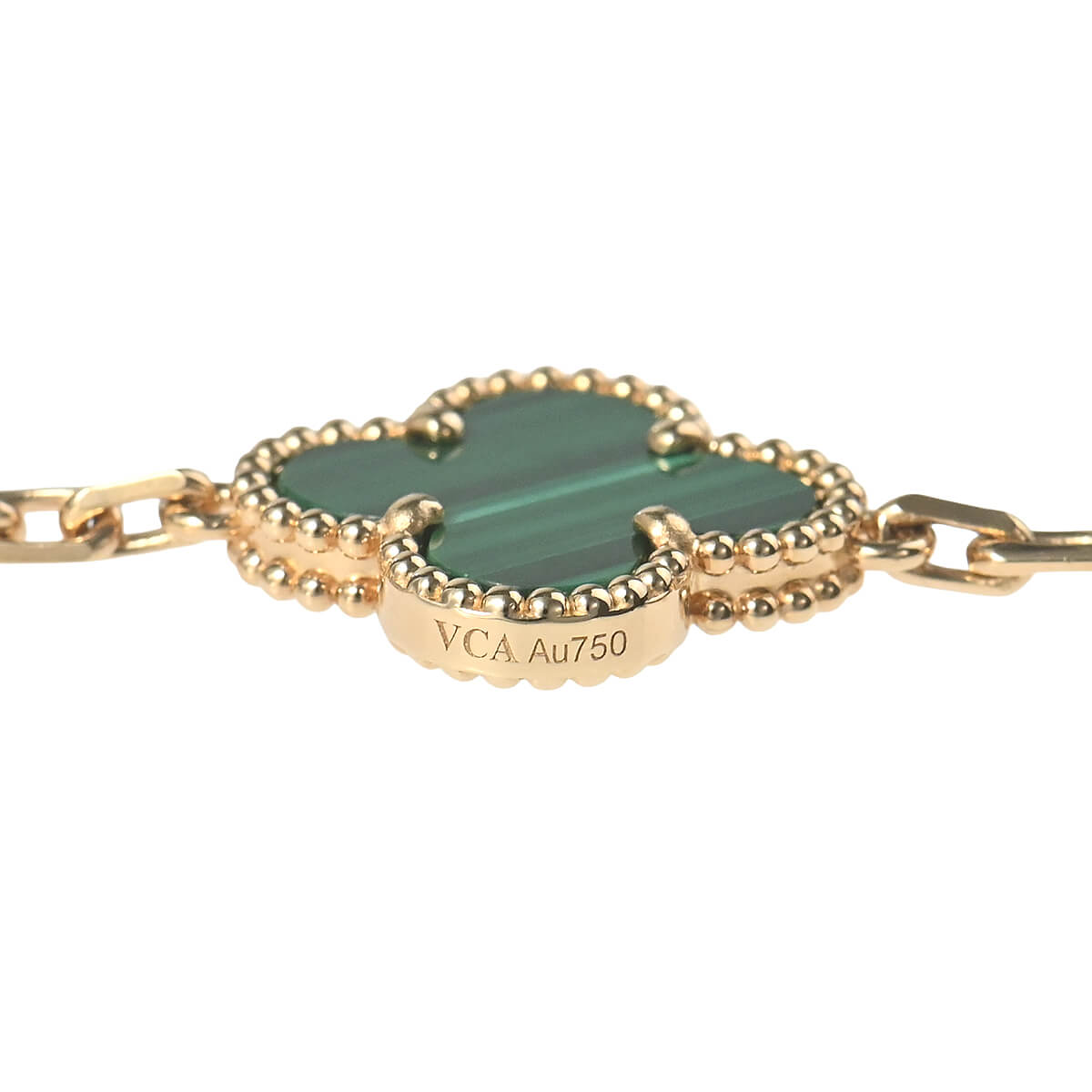 1968年に初めて誕生した幸運のシンボル「アルハンブラ」の特徴を受け継ぎ、『VanCleef&Arpels(ヴァンクリーフ&アーペル)』ならではの独創性と時を超えるエレガンスを湛える「ヴィンテージアルハンブラ」コレクションは、エレガントで清楚、控えめでありながら洗練された、メゾンを代表するアイコン。深いグリーンに美しい縞模様が印象的なマラカイトとイエローゴールドの対比が、エレガントで魅惑的なコントラストを魅せているモチーフが10ピース連なる、イエローゴールド製「ヴィンテージアルハンブラ」ネックレスです。たくさんつけてもしつこくなく、むしろ“素敵”にまとまる、不思議な個性をもつアルハンブラはコレクションで揃えていって、バリエーションを魅せるのも。ひとめでそれとわかるラッキーチャームを、どのタイミングで、どのカラーで迎えるかを考えるのも楽しい、エレガントに映えるハッピーな魅力にあふれたコレクションジュエリーです。