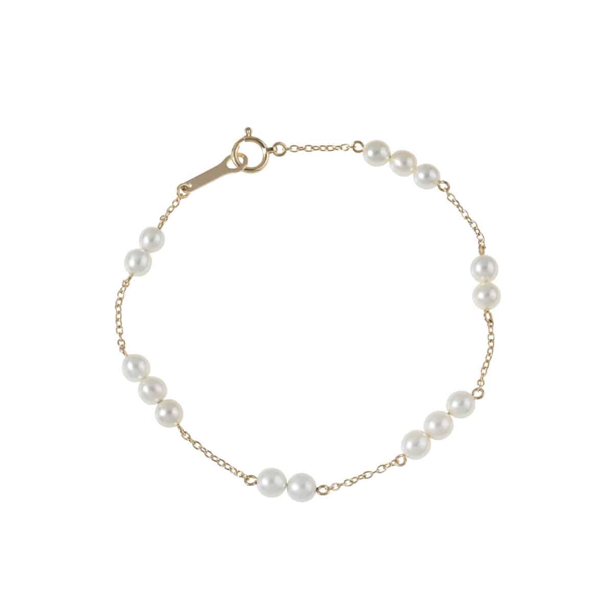 パール&ダイヤモンドジュエリーの未知なる世界を切り拓き、美しくそして大胆に、比類なき美意識をもって、身に纏うアートのようなモダンアートクリエイションを追求する日本発のラグジュアリージュエラー『TASAKI(タサキ)』。世界に誇る基準のハイクオリティ、繊細かつ革新的なクリエイティビティ、そして最高の素材を最高美のジュエリーへと昇華させる、磨き抜かれたクラフツマンシップをもつ、日本を代表するブランドのひとつです。小さいながらも優しく柔らかな光を放つ、愛らしいベビーパールが繊細なチェーンにステーションセッティングされたイエローゴールド製ブレスレットです。動くたびリズミカルにパールが揺れるブレスレットは、手元を可憐に、清楚に印象づけます。
